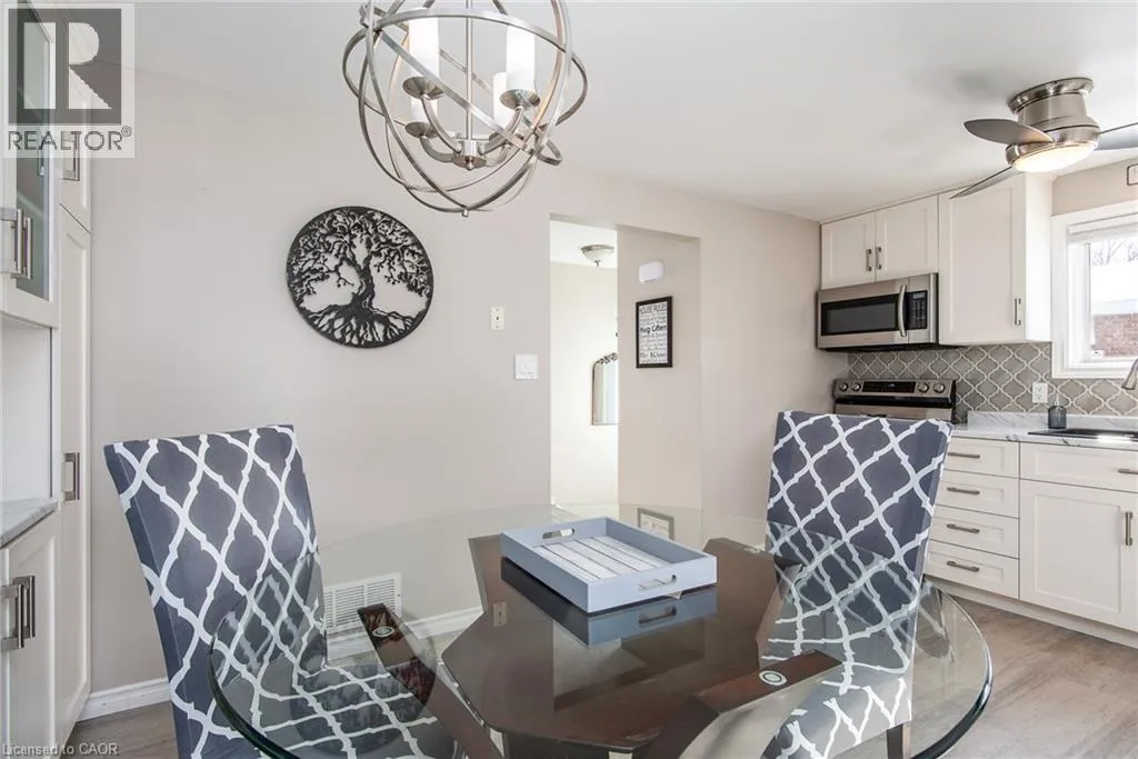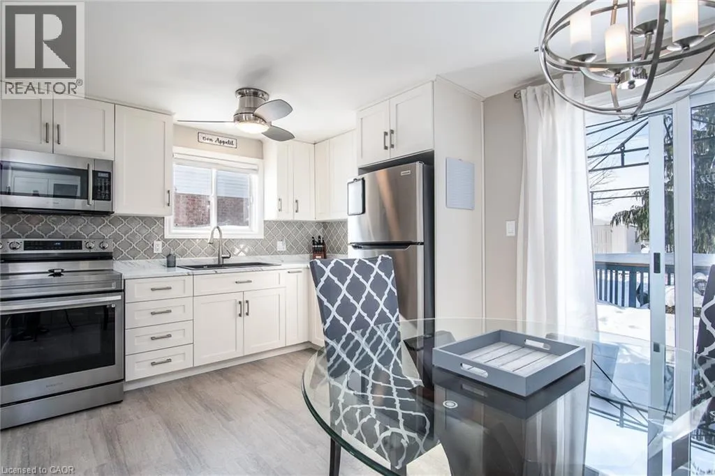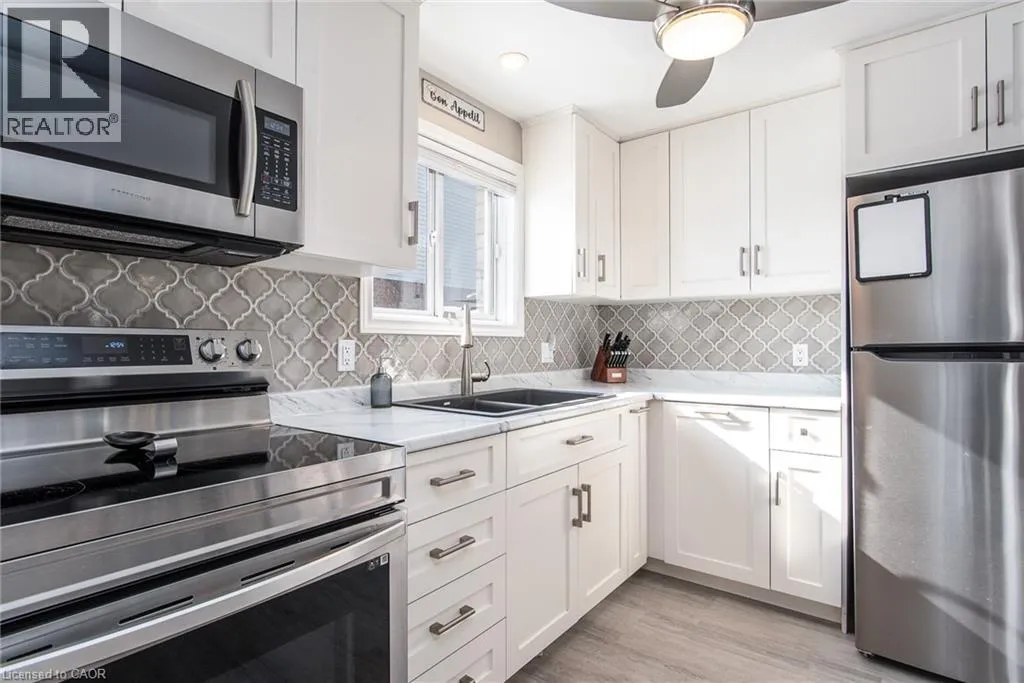 Welcome to 34 Sacha Road. This clean, well-maintained 1,100 sq. ft. semi-detached home is finished from top to bottom and shows exceptionally well. Freshly painted and featuring a bright, functional layout, the main level offers 3 spacious bedrooms, 2 bathrooms, and a combination of ceramic and laminate flooring, along with central air for year-round comfort. The fully finished lower level adds valuable living space with a large recreation room, new carpet, a bathroom, and a convenient laundry/utility area. Major mechanical updates include a furnace and air conditioner replaced in 2021, providing peace of mind. Step out from the kitchen to a spacious deck overlooking a fully fenced backyard backing onto greenspace, complete with a shed and no rear neighbours, ideal for relaxing or entertaining. Parking is easy with a long paved driveway that comfortably accommodates up to three vehicles. Located in a desirable Hespeler neighbourhood, this move-in-ready home is close to schools, shopping, parks, public transit, scenic nature trails, and offers easy access to Highway 401. A fantastic opportunity for first-time buyers or families, book your showing today. (id:27476)