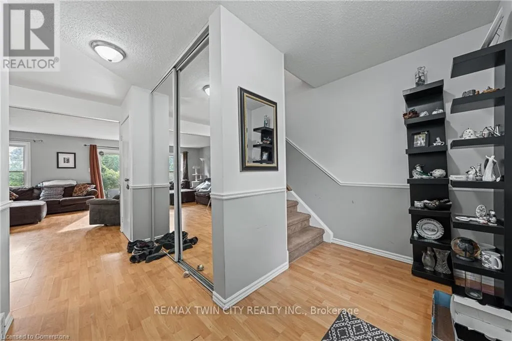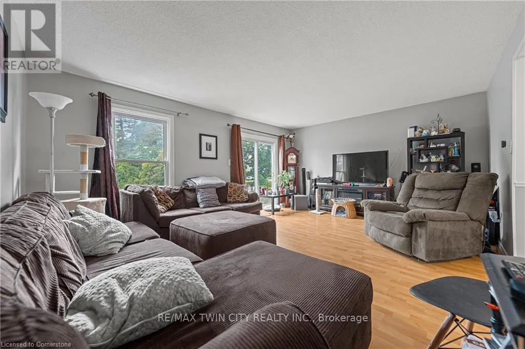 Cross Streets: Speedsville. ** Directions: Speedsville Rd. SOUGHT AFTER COURT LOCATION!! IMMEDIATE POSSESSION!! This spacious home has been freshly painted throughout and awaits its new owner. The main floor features a large foyer and and a spacious and bright living room with sliding glass doors that lead to a fully fenced yard. Eat in kitchen. The second floor does not disappoint featuring 3 spacious bedrooms with the primary bedroom featuring two large windows to let in all the natural light. Updated main bathroom with a newer porcelain tile surround. The basement adds another living room and a full 3 piece bathroom and additional storage. Parking for 3 cars in the private driveway and a custom shed for additional storage. Here is your opportunity to get on this great court location within minutes to 401, schools and all amenities. (id:27476)