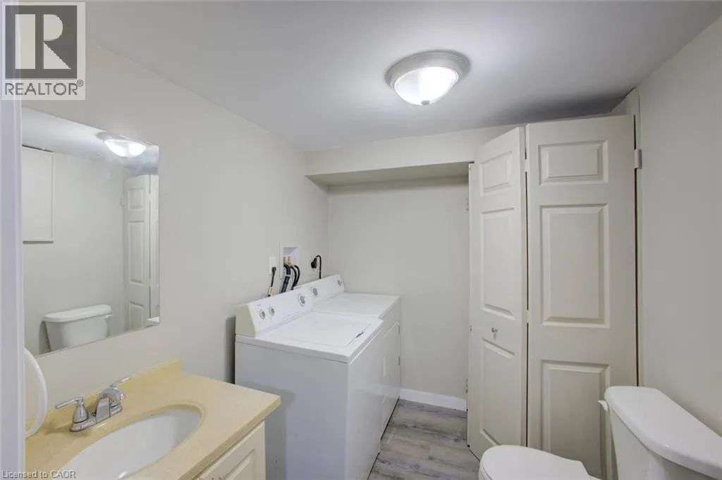 Franklin or Elgin to 65 Glamis Rd APPOINTMENT ONLY. Large, bright, and welcoming, this 3 bedroom one level home backs onto a peaceful greenbelt and offers an ideal layout for family living. The main level features an open concept living and dining area beside a well appointed kitchen with stainless steel appliances and a convenient breakfast bar, while the spacious living room overlooks the park below. Down the hall are three comfortable bedrooms, including an oversized primary, along with a full 4 piece bathroom. Step outside to a huge upper deck, perfect for barbecuing, hosting, or giving kids extra room to play. The finished open concept basement adds even more versatilityâideal as a family room, workout zone, office, or a combination of all threeâand includes a 2 piece bathroom, utility area, and laundry. Updates incl: water heater (2022), upstairs bathroom (2020), lower bathroom (2022), new fire alarm and carbon monoxide detector (2025), and luxury laminate flooring throughout most of the home. Conveniently located near the 401, and close to schools, parks, shopping, and transit. (id:27476)