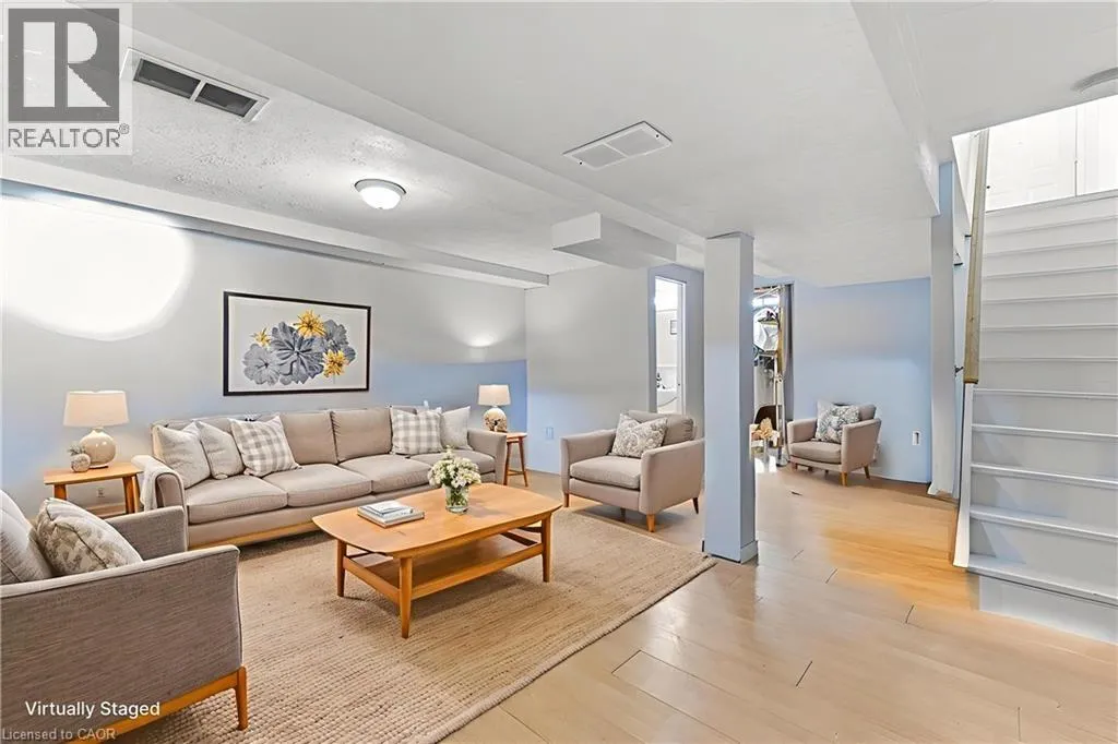 Well kept 2 storey townhouse. Features 3 bedrooms and 1 1/2 bathrooms. Finished recreation room. Kitchen has stainless steel appliances and bright eating area. Living room has large window and access to the backyard that has a patio and is fully fenced. Handy neighbourhood, close to shopping, schools, restaurants and only minutes to Hwy 401. (id:27476)