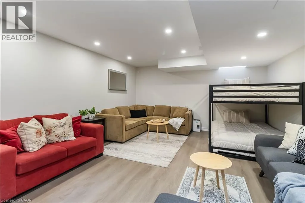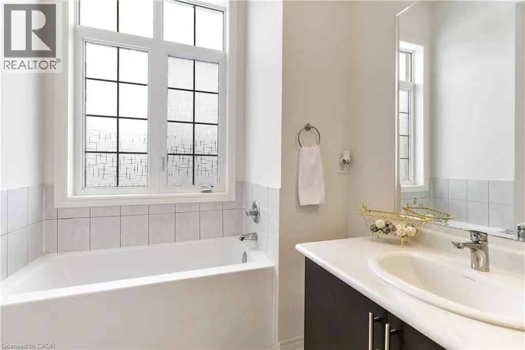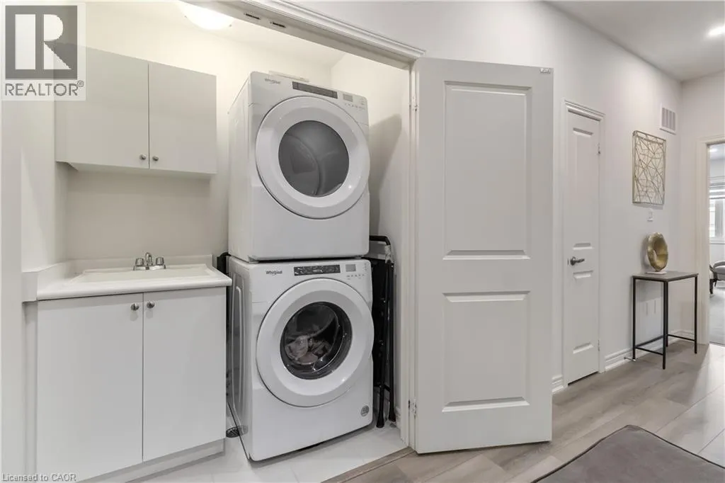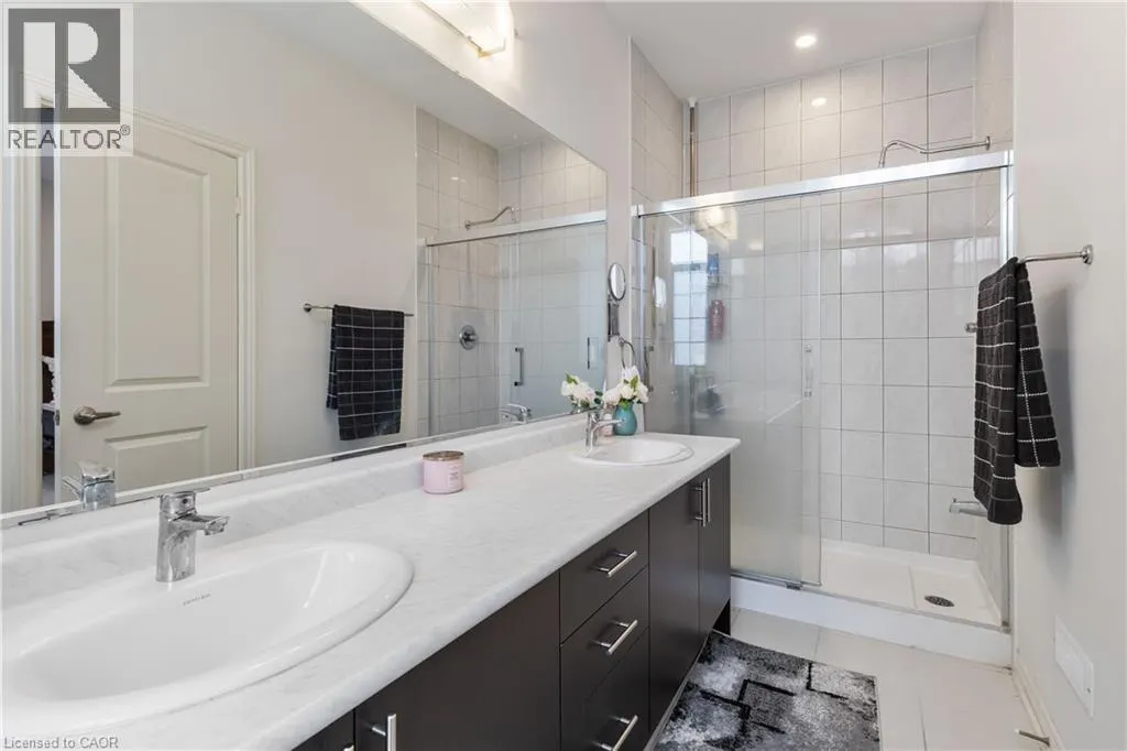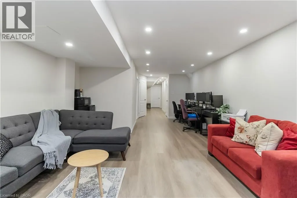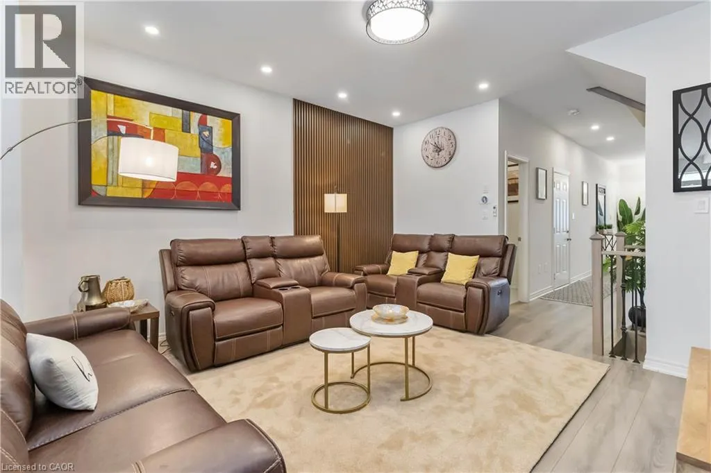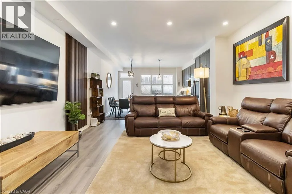 Dundas/Attwater Welcome to this beautifully upgraded and spacious three-bedroom open-concept townhome, thoughtfully designed for modern family living in a sought-after, family-friendly neighbourhood.The bright main level features high-quality luxury vinyl plank flooring, flat ceilings, and stylish pot lights throughout. The stunning upgraded kitchen offers elegant cabinetry with a full pantry, quartz countertops extended seamlessly up the backsplash, and high-end Wi-Fi enabled stainless stee refridgorator and gas stove -perfectly blending style and function for everyday living and entertaining. Hardwood stairs with classic picket railings adds warmth and timeless character as you move through the home.The fully finished basement provides valuable additional living space, complete with a three-piece bathroom and ample storage giving you the additional living space you need.Upstairs, the spacious primary bedroom serves as a relaxing retreat featuring a luxurious ensuite with double sinks, a separate soaker tub, and glass-enclosed shower. Two additional generously sized bedrooms, convenient upper-level laundry, and a versatile flex space complete the upper level, offering comfort and flexibility for growing families or work-from-home needs. The attached garage offers additional storage with a long corridor with entrance to the back yard. Set in a welcoming community, this exceptional townhome delivers the perfect balance of style, space, and convenience. (id:27476)