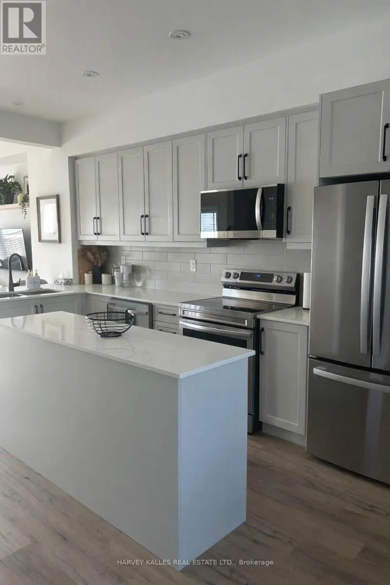 Equestrian Way & Ridge Rd A sophisticated, impeccably maintained 3-bedroom, 3-bathroom townhouse offering approximately 1,500 sq ft of beautifully finished, turnkey living in one of Cambridge's most desirable communities. Thoughtfully designed with both style and functionality in mind, the open-concept main level is filled with natural light and enhanced by 9-foot ceilings, wide plank flooring, and expansive windows that create an airy, elevated atmosphere. The seamless flow is ideal for both everyday living and refined entertaining. The chef-inspired kitchen serves as the heart of the home, showcasing designer finishes including crisp white cabinetry, quartz countertops, stainless steel appliances, a timeless subway tile backsplash, and a generous centre island perfect for gathering.The dining area overlooks the backyard and private deck through oversized windows, creating a bright and inviting setting for family meals or hosting guests. Step outside to the deck an ideal extension of the living space, perfect for summer barbecues, morning coffee, or relaxed evenings outdoors. Upstairs, well-proportioned bedrooms offer comfort and privacy, including a spacious primary retreat. The smart layout maximizes space and functionality, delivering low-maintenance luxury without compromise. Complete with both garage and driveway parking, this home offers rare convenience and everyday practicality an exceptional advantage in townhouse living. Ideally situated in a family-friendly neighbourhood close to parks, top-rated schools, shopping, and major commuter routes, this home offers the perfect balance of upscale living and everyday convenience.An exceptional opportunity for discerning buyers seeking designer style, comfort, and long-term value in Cambridge. (id:27476)