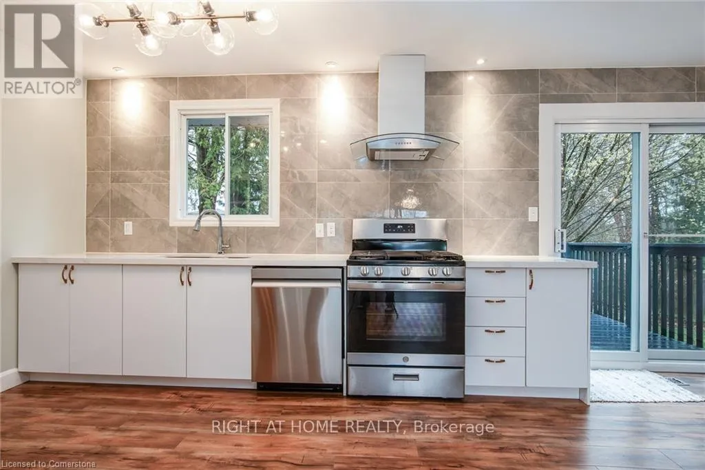 Cross Streets: Winston / Franklin. ** Directions: Easily accessible from Franklin and Holiday Inn drive. Experience the perfect blend of modern sophistication and suburban tranquility in this stunningly renovated detached bungalow, situated in one of Cambridge's most premier neighborhoods. The heart of the home is a brand-new kitchen featuring elegant quartz countertops, stylish cabinetry, and premium appliances, flowing seamlessly into a bright living space with new flooring and upgraded bathrooms throughout. Designed with practicality in mind, the layout includes a convenient main-floor laundry room with direct access to the attached garage. The property's standout feature is an expansive, 200-foot-deep backyard that offers a rare amount of private outdoor space for gardening, recreation, or entertaining. Located in a quiet, family-friendly community just minutes from schools, shopping, and transit, this home provides an ideal lifestyle for those seeking both comfort and accessibility. (Note: Main floor tenants are responsible for 60% of utilities). (id:27476)