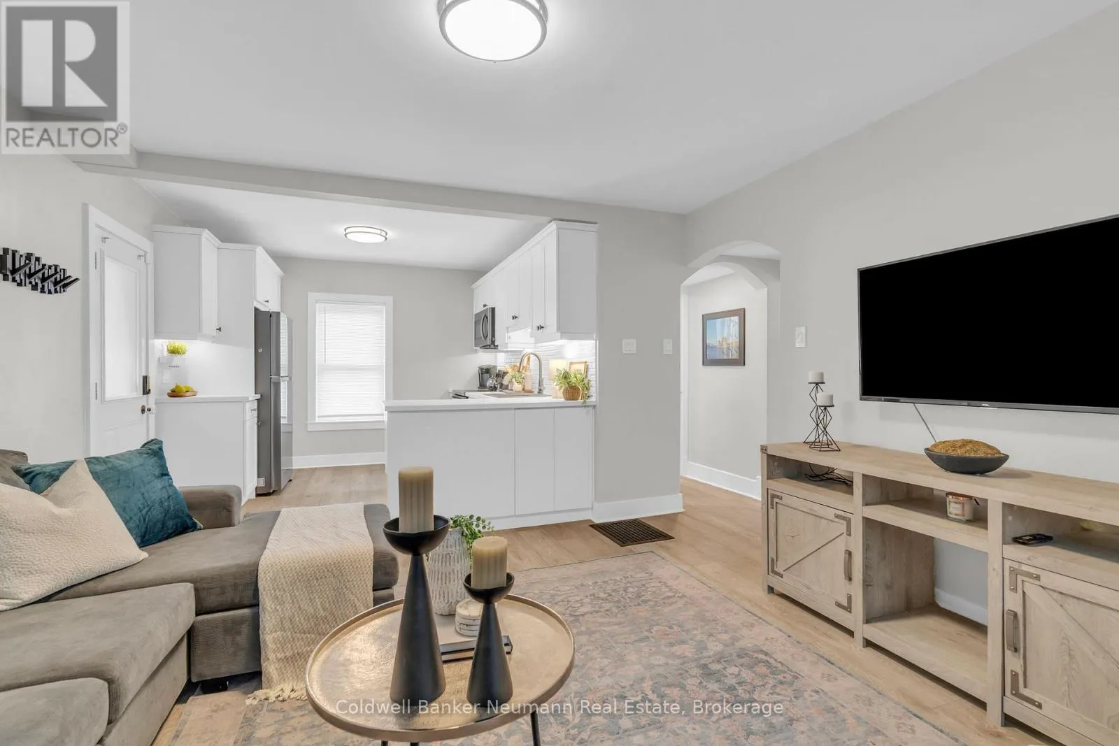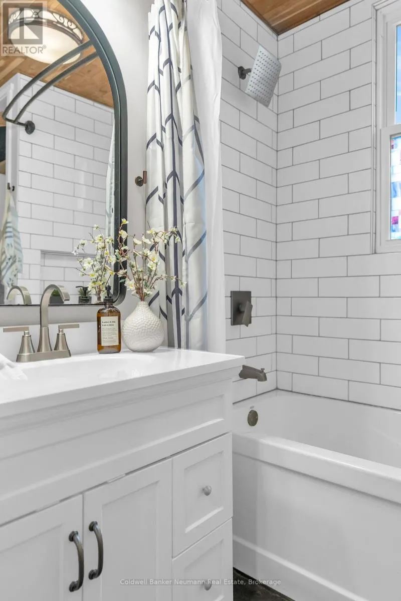 Cross Streets: Beverly St and Dundas St N. ** Directions: Hwy 24 to Dundas St N. This beautifully updated cottage-style home in desirable East Galt seamlessly blends timeless character with contemporary finishes. The inviting exterior showcases modern stucco paired with expertly crafted stonework, setting the tone for what awaits inside. Step onto the spacious covered front porch and enter a home where every detail has been thoughtfully updated. The stunning fireplace in the front room echoes the homes exterior, featuring a unique stucco and stone façade with a vintage electric log insertadding both warmth and charm. This versatile space can serve as a formal dining area or a cozy sitting room. Elegant arched doorways and new laminate flooring lead to an open-concept living room and an updated kitchen complete with white cabinetry, stainless appliances, ample storage, under-cabinet lighting, a built-in fridge, beveled subway tile backsplash, and a Silgranit sink. Just off the kitchen, a new rear deck provides ideal space for outdoor dining and entertaining. The main floor also includes a spacious bedroom with a large window and a stunning modern farmhouse bathroom featuring a wood-accented ceiling, subway tile tub surround with dark grout, and a sleek vanity with an integrated sink. Upstairs, you'll find two additional well-appointed bedrooms with stylish accent walls and ample storage. The basementwith a separate entranceoffers potential for an in-law suite, income property, or extended living space. Situated on a generous 132-foot deep lot, the property offers parking for 8+ vehicles, plus an oversized two-car garage/workshop with electricalperfect for hobbyists or trades. The new fully fenced backyard includes a custom rolling gate, a new deck with privacy screens, and plenty of room for entertaining or play. Additional upgrades include newer windows, furnace, electrical, and plumbing making this home truly move-in ready. Ideally located near parks, trails, schools, and major amenities, this is East Galt living at its finest (id:27476)