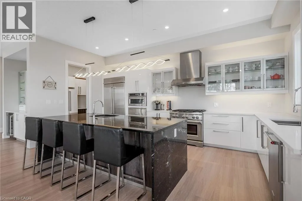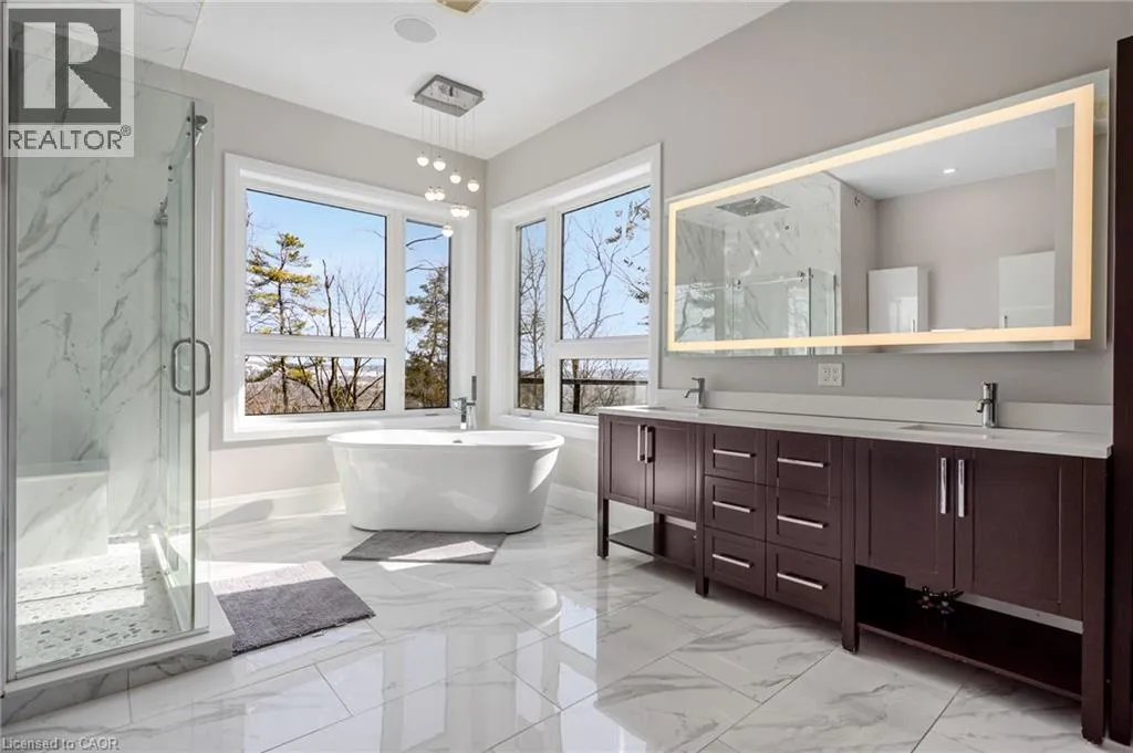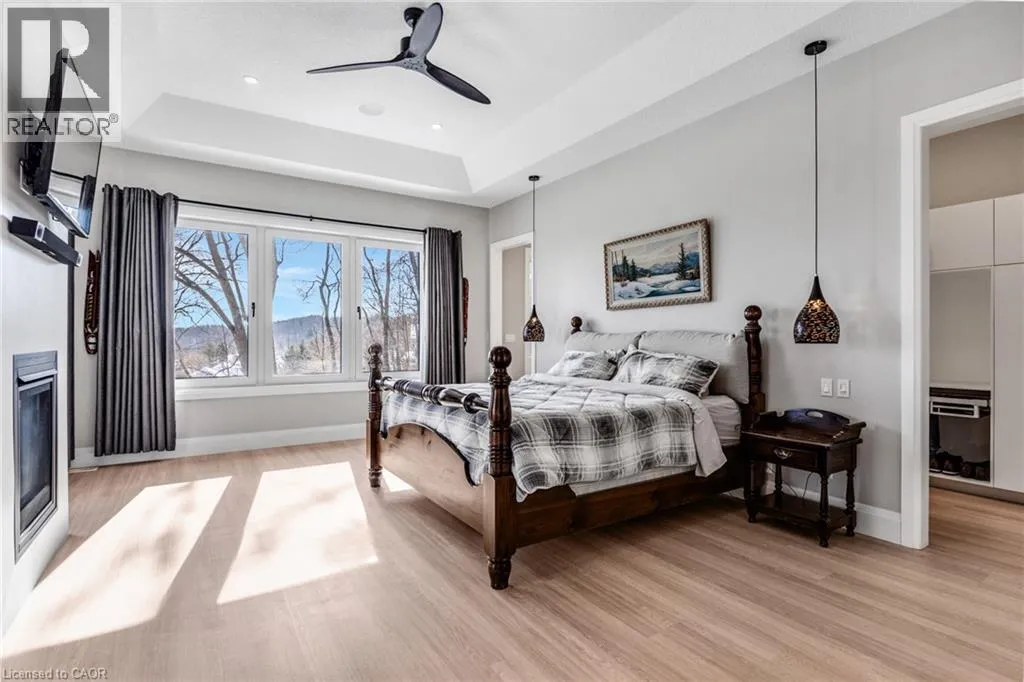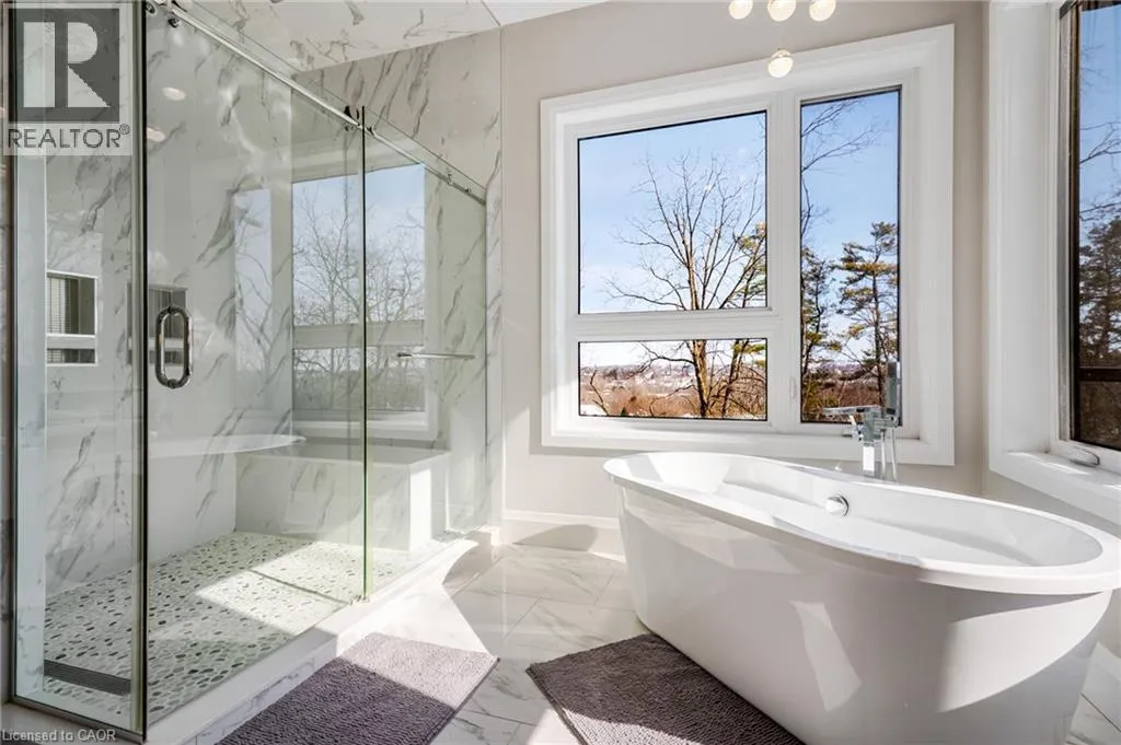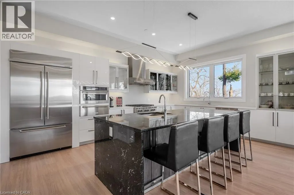 West River Road to Grand Ridge Drive Welcome to 111 Grand Ridge Drive, an extraordinary 4,600 sq ft estate residence set on 3 acres of protected Carolinian forest, offering a rare combination of refined design and natural seclusion just minutes from the downtown core and highway access. This south-facing home is filled with natural light and elevated by 10-foot ceilings on every level, a fully carpet-free interior, and a private elevator providing effortless access throughout. The main level presents an elegant open concept layout designed for both grand entertaining and comfortable daily living. The chef-inspired kitchen is a true focal point, featuring a striking granite waterfall island sourced via Latea Brazil, quartz surfaces, premium appliances, an expansive servery, and a generous butlerâs pantry. A private main floor bedroom with its own ensuite offers ideal accommodations for guests or extended family. Two large decks extend the principal living areas outdoors, creating a seamless connection to the surrounding forest. Upstairs, four spacious bedrooms include a luxurious primary retreat complete with European windows, a substantial walk-in closet, a spa-like ensuite bath, and a private deck overlooking the treed landscape. The fully finished walk-out lower level adds exceptional versatility with an additional bedroom, full bath, and recreation space anchored by an impressive 12-foot sliding door leading to the landscaped grounds. Constructed with attention to quality and performance, this home features full spray foam insulation, 400 amp service with generator rough-in, an owned hot water heater with recirculating pump, owned soft water system, interior sprinkler system, hard-wired interior and exterior speaker system, and soffit lighting on a timer. The approximately 1,000 sq ft triple car garage offers oversized 10 ft wide by 9 ft high doors, EV rough-in, and Wi-Fi enabled openers, ideal for collectors or hobby enthusiasts. (id:27476)