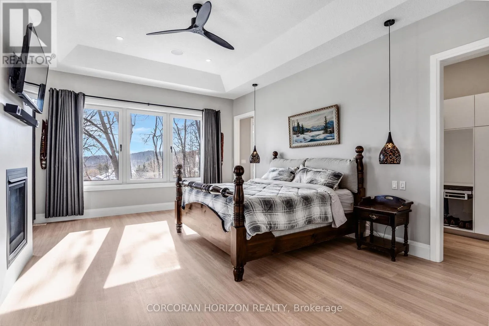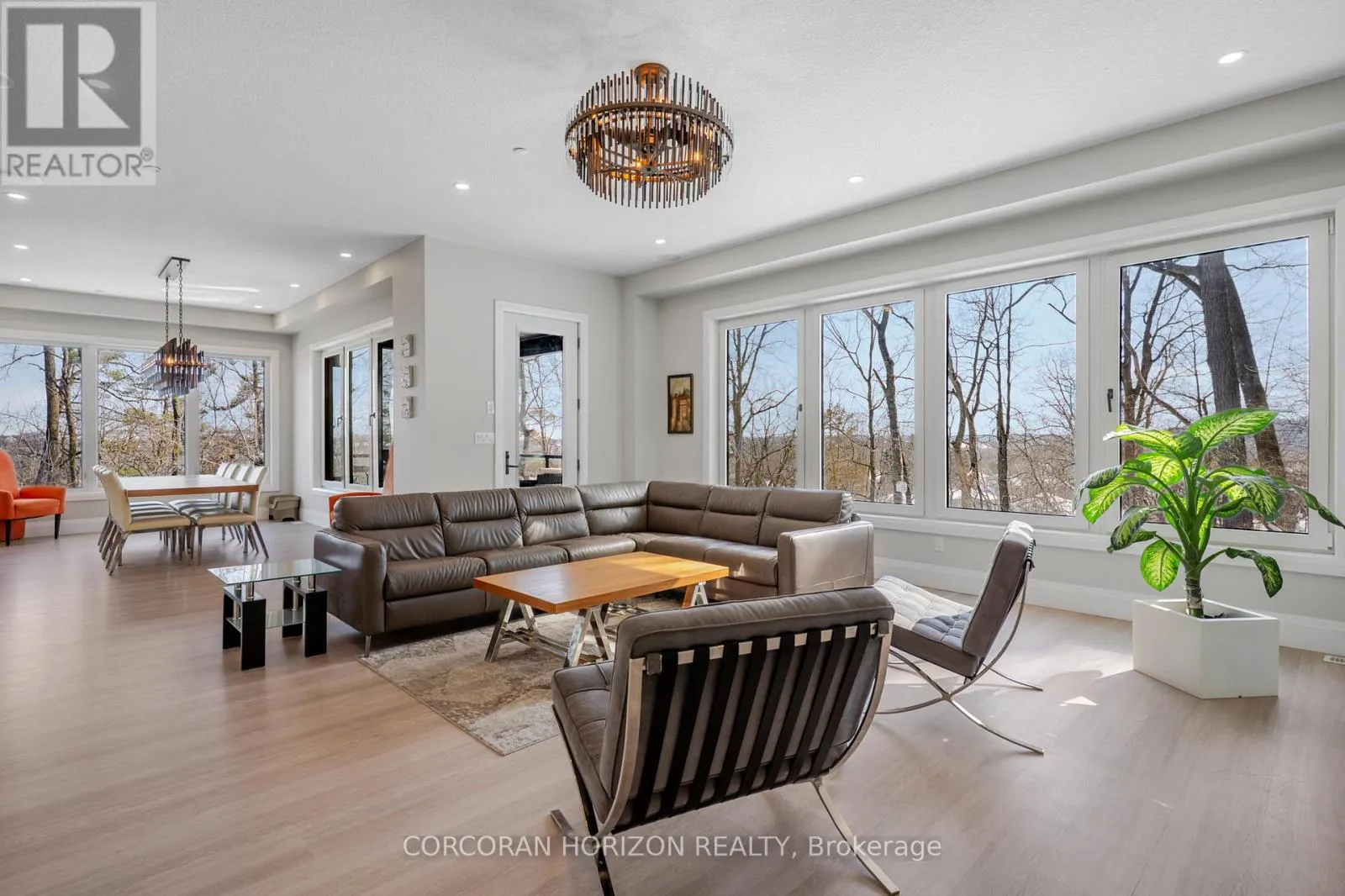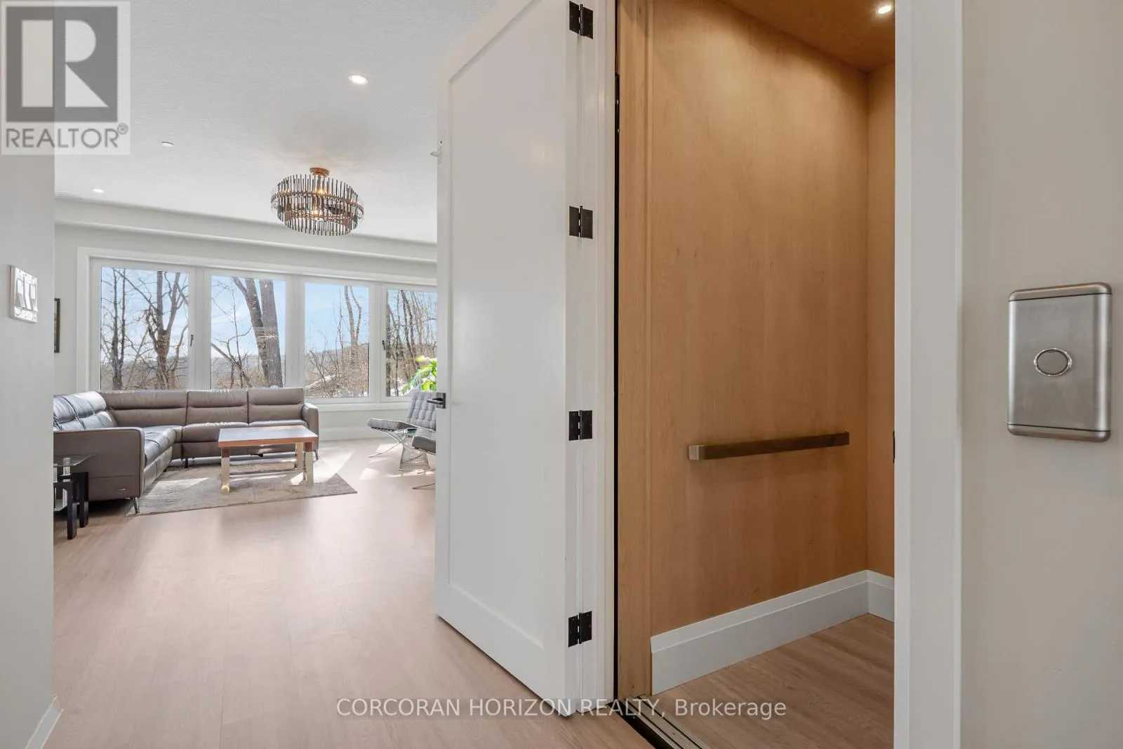 Cross Streets: West River Road. ** Directions: West River Rd to Grand Ridge Dr. Welcome to 111 Grand Ridge Drive, an extraordinary 4,600 sq ft estate residence set on 3 acres of protected Carolinian forest, offering a rare combination of refined design and natural seclusion just minutes from the downtown core and highway access. This south-facing home is filled with natural light and elevated by 10-foot ceilings on every level, a fully carpet-free interior, and a private elevator providing effortless access throughout. The main level presents an elegant open concept layout designed for both grand entertaining and comfortable daily living. The chef inspired kitchen is a true focal point, featuring a striking granite waterfall island sourced via Latia Brazil, quartz surfaces, premium appliances, an expansive servery, and a generous butler's pantry. A private main floor bedroom with its own ensuite offers ideal accommodations for guests or extended family. Two large decks extend the principal living areas outdoors, creating a seamless connection to the surrounding forest. Upstairs, four spacious bedrooms include a luxurious primary retreat complete with European windows, a substantial walk-in closet, a spa-like ensuite bath, and a private deck overlooking the treed landscape. The fully finished walk-out lower level adds exceptional versatility with an additional bedroom, full bath, and recreation space anchored by an impressive 12-foot sliding door leading to the landscaped grounds. Constructed with attention to quality and performance, this home features full spray foam insulation, 400 amp service with generator rough-in, an owned hot water heater with recirculating pump, owned soft water system, interior sprinkler system, hard-wired interior and exterior speaker system, and soffit lighting on a timer. The approximately 1,000 sq ft triple car garage offers oversized 10 ft wide by 9 ft high doors, EV rough-in, and Wi-Fi enabled openers, ideal for collectors or hobby enthusiasts. (id:27476)