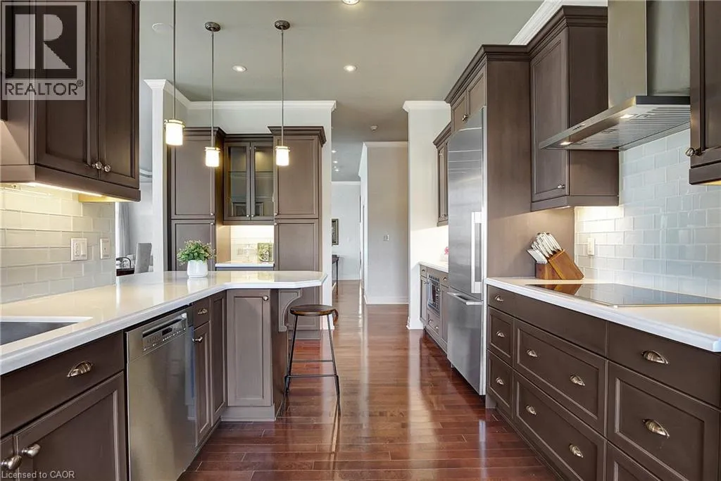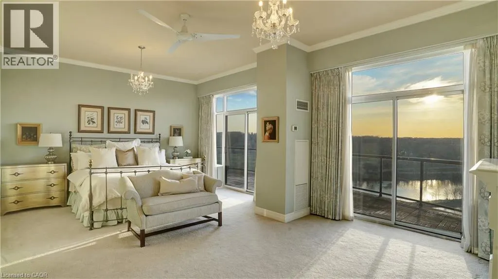 Hespeler Rd to Water St N This One-of-a-Kind Luxury Penthouse was custom designed to create nearly 3,000 sq. ft. of refined living space, offering the perfect blend of elegance, comfort, and Panoramic River Views. Every window frames a breathtaking view of the river, and a full-length terrace with multiple walkouts provides a front-row seat to spectacular sunsets. The expansive and light-filled living room features a gas fireplace, seamlessly flowing into a grand dining area perfect for hosting a dinner party or large family gathering. The chefs kitchen is beautifully renovated and thoughtfully designed, with seating for five and overlooks the family room. A separate den offers the ideal space for a home office, home theatre, or additional third bedroom. Perfect for entertainers, the butlers pantry includes its own entrance, doubling as a service or catering kitchen for seamless hosting. The primary suite is tucked away in its own private wing, showcasing luxurious penthouse glamour with floor-to-ceiling windows and a walkout to the terrace. A spacious walk-in closet functions as a full dressing room complete with a center island. The show-stopping ensuite features a soaking tub positioned to take in the sweeping river views. The second bedroom is generously sized and includes its own ensuite bath, offering comfort and privacy for guests or family. With two underground parking spaces and two private locker rooms, this is elevated condo living without compromise. Set in the heart of historic Galt, you're just steps away from riverfront trails, fine dining at Cambridge Mill or Langdon Hall, the local farmer's market, and the vibrant Gaslight District. A rare opportunity to live large in one of the regions most desirable settings. (id:27476)
