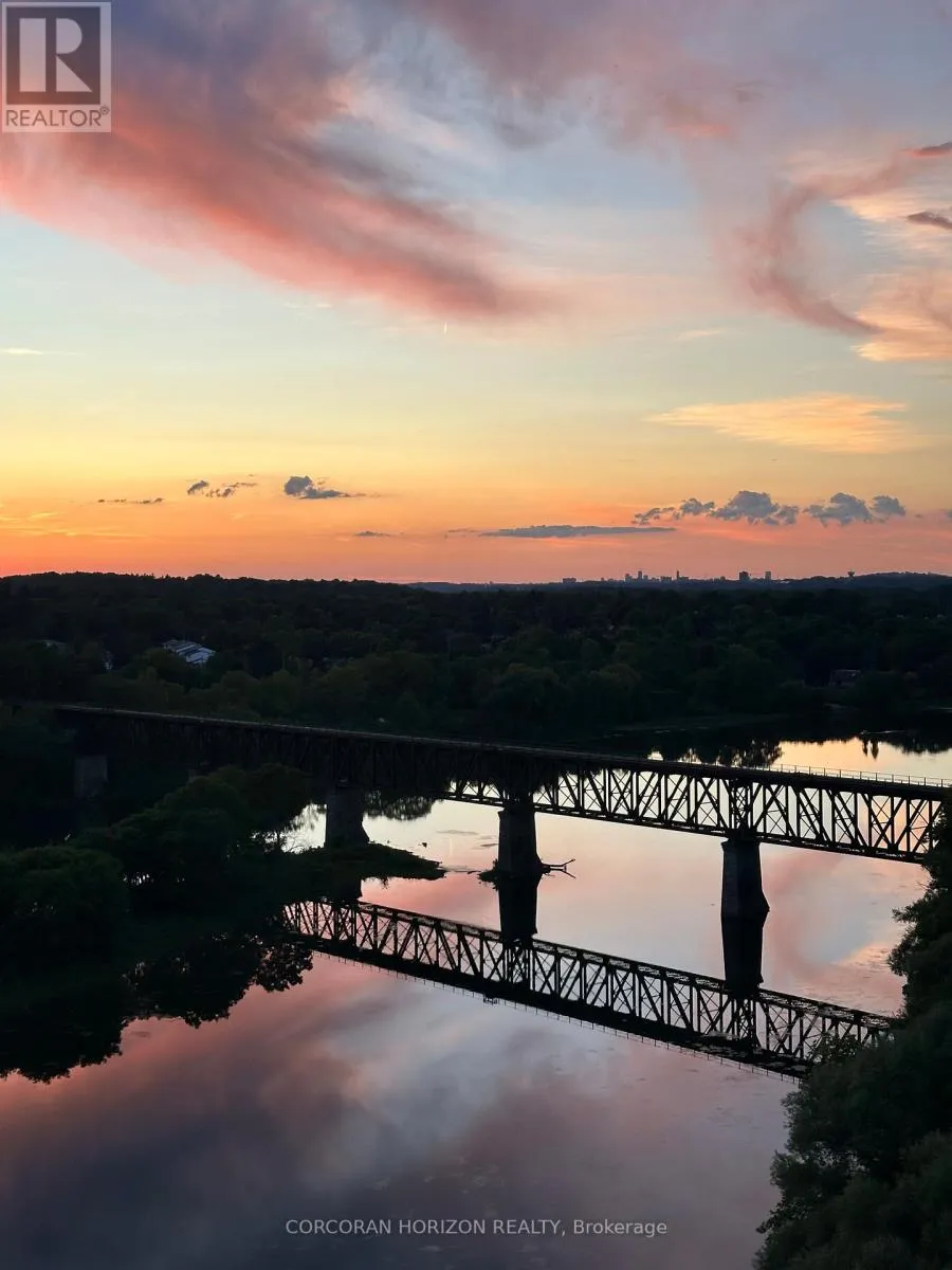 Cross Streets: Hespeler Rd/Water St N. ** Directions: Hespeler Rd to Water St N. This One-of-a-Kind Luxury Penthouse was custom designed to create nearly 3,000 sq. ft. of refined living space, offering the perfect blend of elegance, comfort, and Panoramic River Views. Every window frames a breathtaking view of the river, and a full-length terrace with multiple walkouts provides a front-row seat to spectacular sunsets. The expansive and light-filled living room features a gas fireplace, seamlessly flowing into a grand dining area perfect for hosting a dinner party or large family gathering. The chefs kitchen is beautifully renovated and thoughtfully designed, with seating for five and overlooks the family room. A separate den offers the ideal space for a home office, home theatre, or additional third bedroom. Perfect for entertainers, the butlers pantry includes its own entrance, doubling as a service or catering kitchen for seamless hosting. The primary suite is tucked away in its own private wing, showcasing luxurious penthouse glamour with floor-to-ceiling windows and a walkout to the terrace. A spacious walk-in closet functions as a full dressing room complete with a center island. The show-stopping ensuite features a soaking tub positioned to take in the sweeping river views. The second bedroom is generously sized and includes its own ensuite bath, offering comfort and privacy for guests or family. With two underground parking spaces and two private locker rooms, this is elevated condo living without compromise. Set in the heart of historic Galt, you're just steps away from riverfront trails, fine dining at Cambridge Mill or Langdon Hall, the local farmer's market, and the vibrant Gaslight District. A rare opportunity to live large in one of the regions most desirable settings. (id:27476)