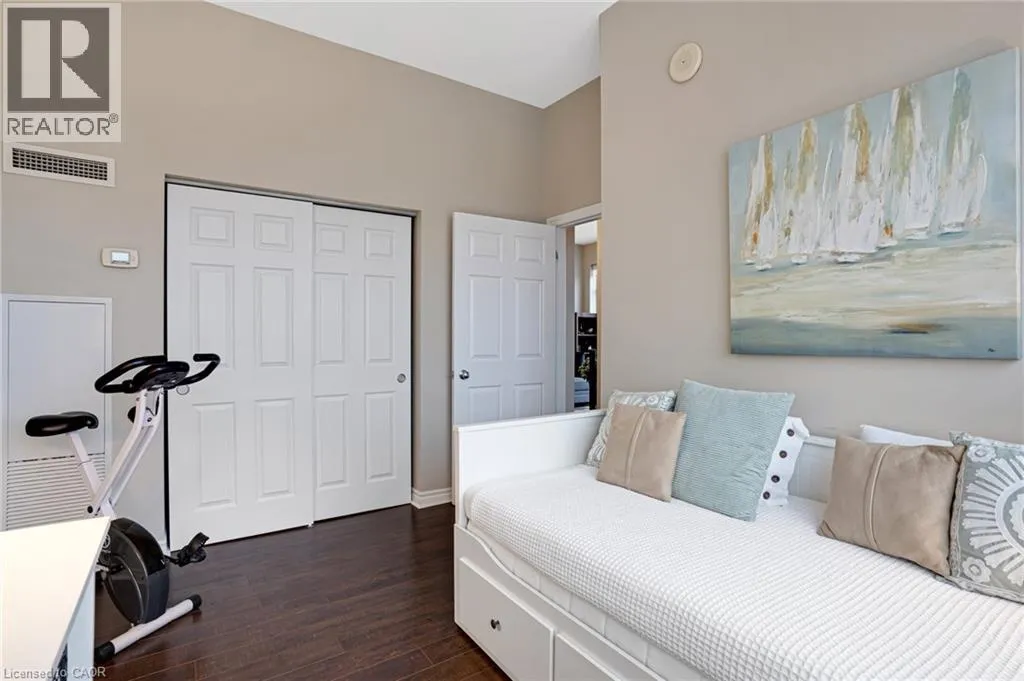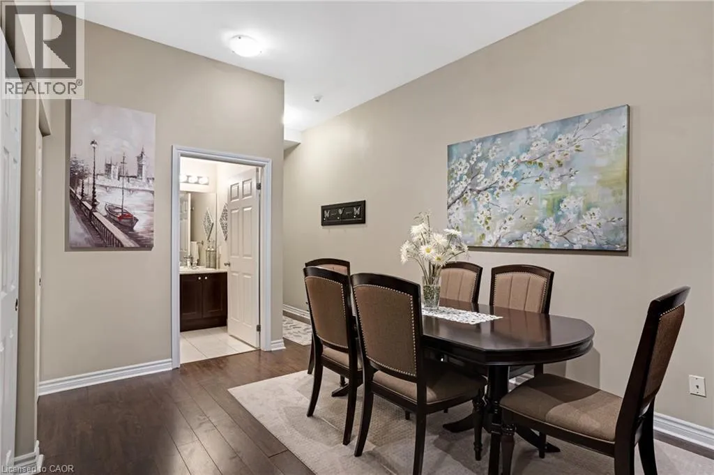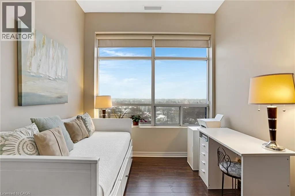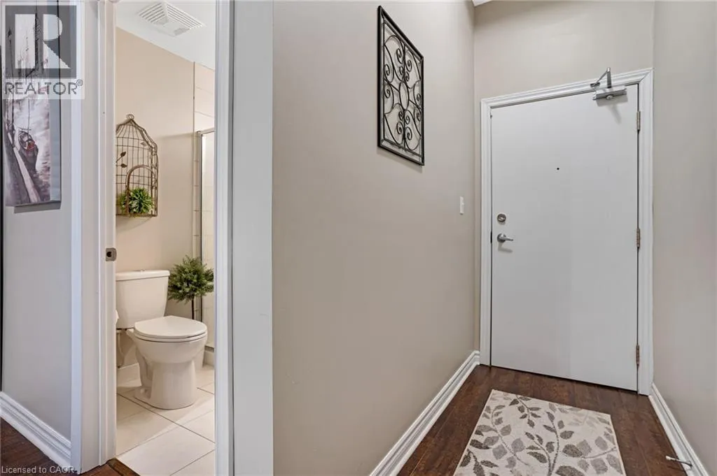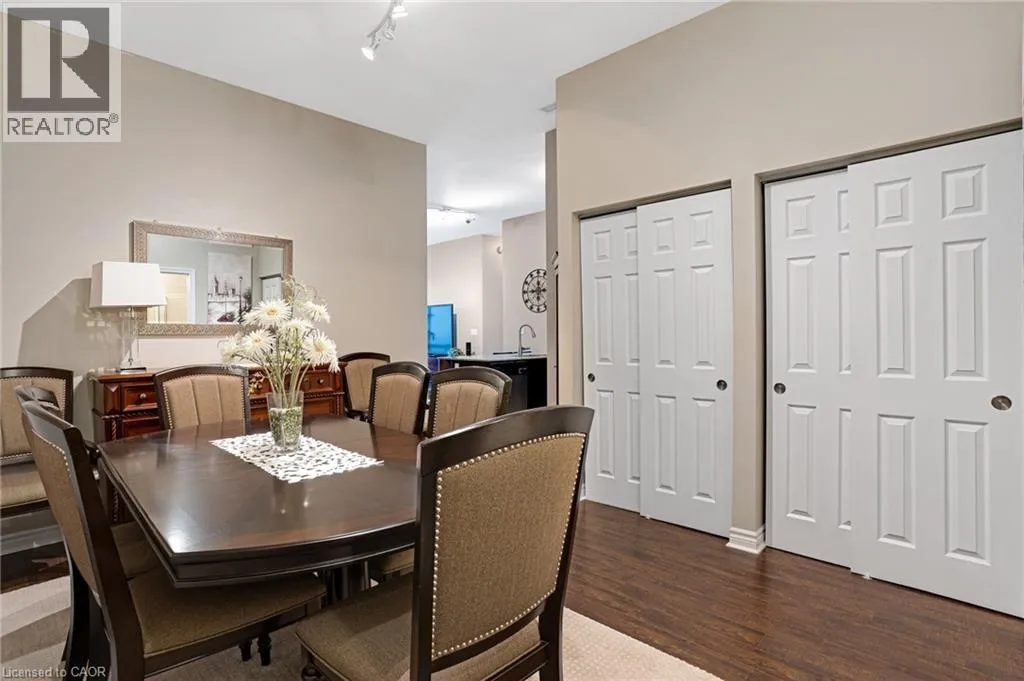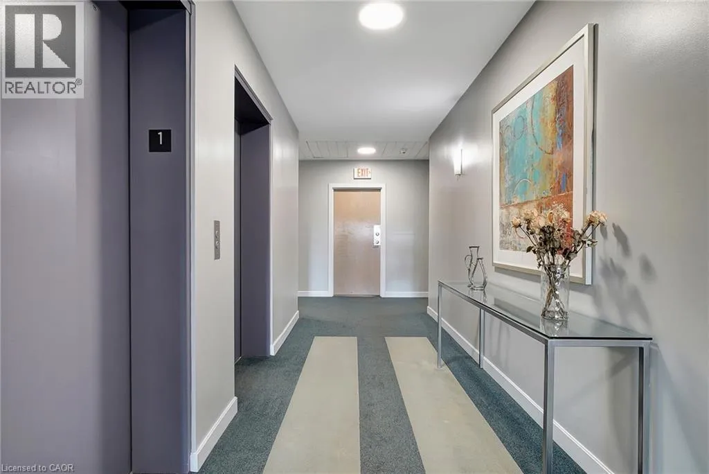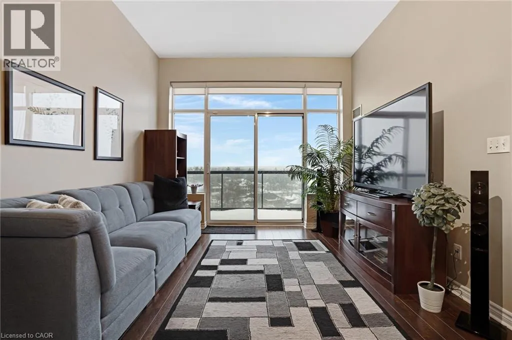 Ainslie Street RESORT-INSPIRED AMENITIES WITH RIVER VIEWS! Welcome to Waterscapeâan ideal community for busy professionals or empty nesters seeking a lifestyle of convenience and elegance.. This beautifully appointed 2-bedroom, 2-bathroom suite offers over 960 sq. ft. of thoughtfully designed living space, enhanced by soaring 10-foot ceilings exclusive to the upper penthouse level. The open-concept kitchen seamlessly flows into the living area and features granite countertops, a breakfast bar, four stainless steel appliances, and direct access to the dining areaâperfectly suited for both entertaining and a stylish home office setup. Expansive and inviting, the space feels bright and airy throughout. A private balcony spans the length of the living room and primary bedroom, with sliding door access from both rooms and picturesque views of the Grand Riverâan ideal spot to unwind and take in the scenery. This unit includes one designated underground parking space, a storage locker, and access to Waterscapeâs exceptional amenities, including controlled entry, a fitness centre, guest suite, and a rooftop lounge and terrace. Ideally located within walking distance to the Gaslight District, Downtown Galt, shopping, dining, and the Grand River trails, this is truly a remarkable place to call home and an extraordinary way of life. (id:27476)