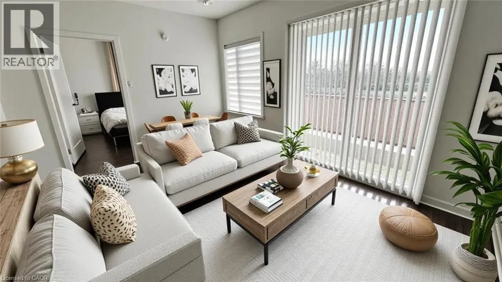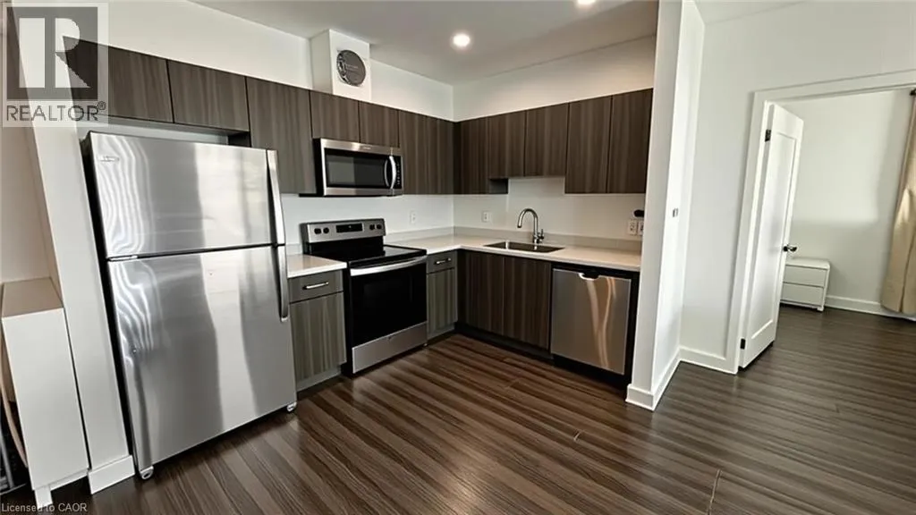 Welcome to contemporary living in the heart of East Galt. This well-appointed condo offers a great mix of comfort and convenience in a lively, connected neighbourhood. The open-concept layout feels bright and spacious, thanks to high ceilings and floor-to-ceiling windows that bring in plenty of natural light. The kitchen features quartz countertops, sleek cabinetry, and stainless steel appliances, and opens right into the living and dining area. From there, step out onto a large private balcony perfect for your morning coffee, catching the sunset, or having friends over. At 743 square feet, this unit includes two good-sized bedrooms. The primary bedroom has its own three-piece ensuite, and there's a full four-piece main bathroom as well. You'll also have in-suite laundry, one owned parking space, and visitor parking for guests. The location is hard to beat. You're walking distance to shopping, restaurants, coffee shops, banks, schools, and transit. Green Gate Park is just steps away, Highway 8 is minutes down the road, and you've got easy access to Highway 401 and downtown Cambridge. With plenty of commercial and industrial activity nearby, it's a great spot for working professionals. And if you like getting outdoors, Valens Lake Conservation Area is only a short drive. Some pictures are virtually staged. (id:27476)