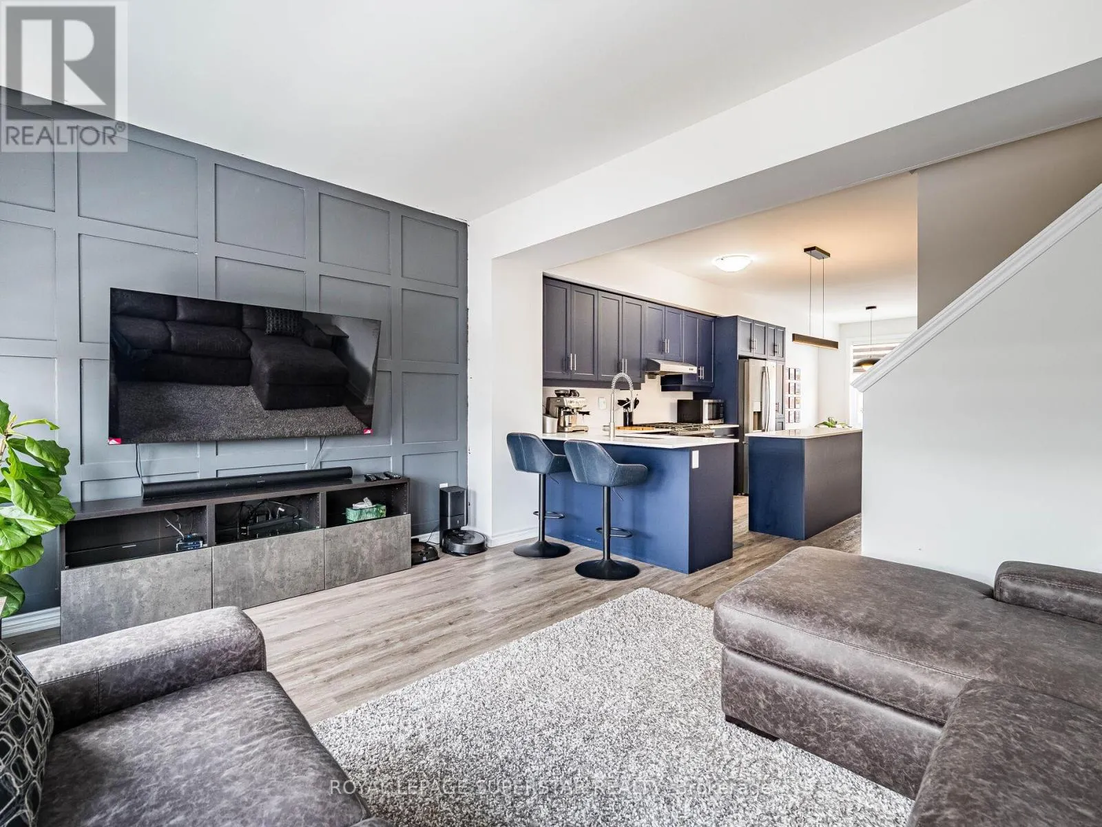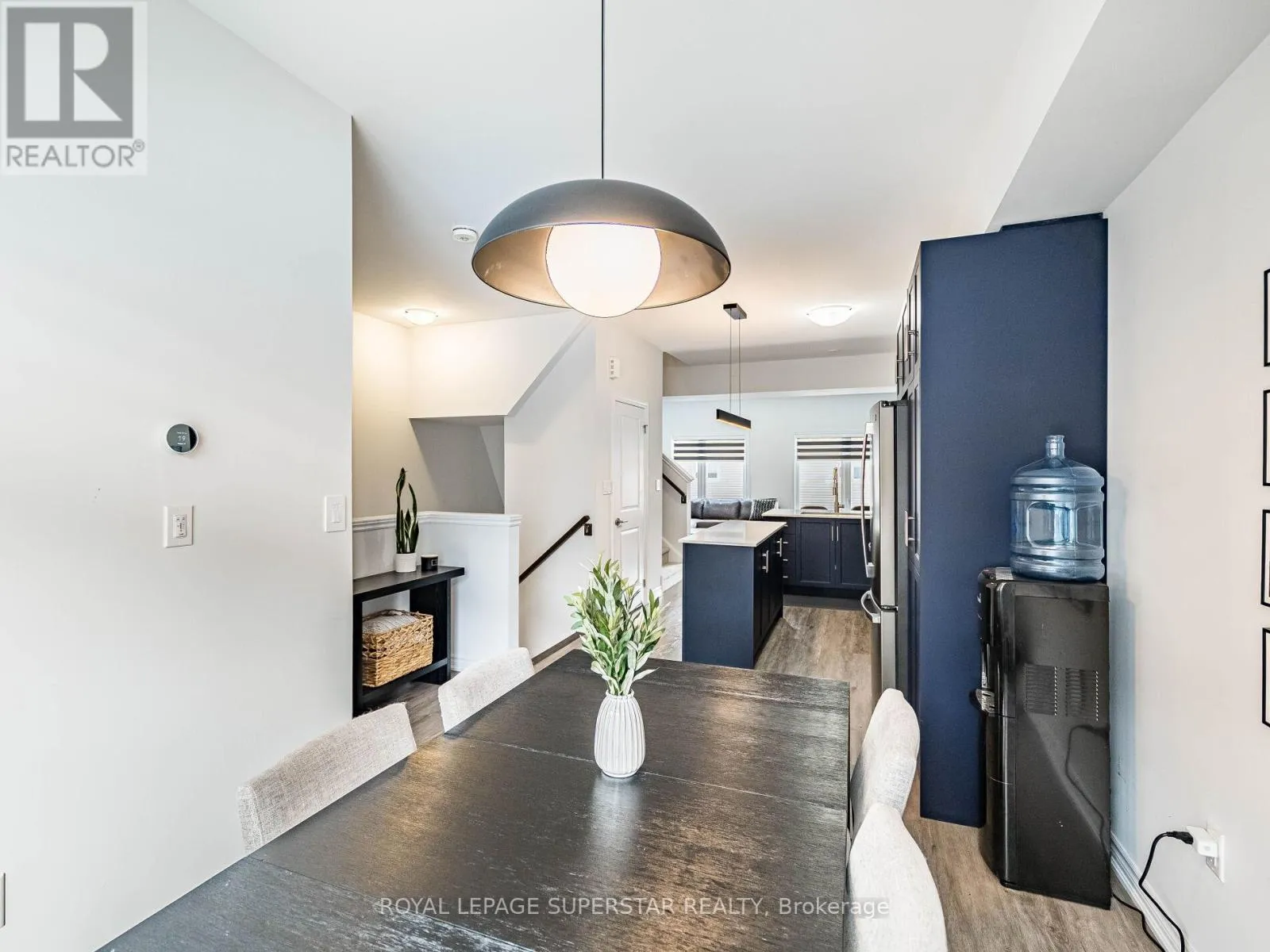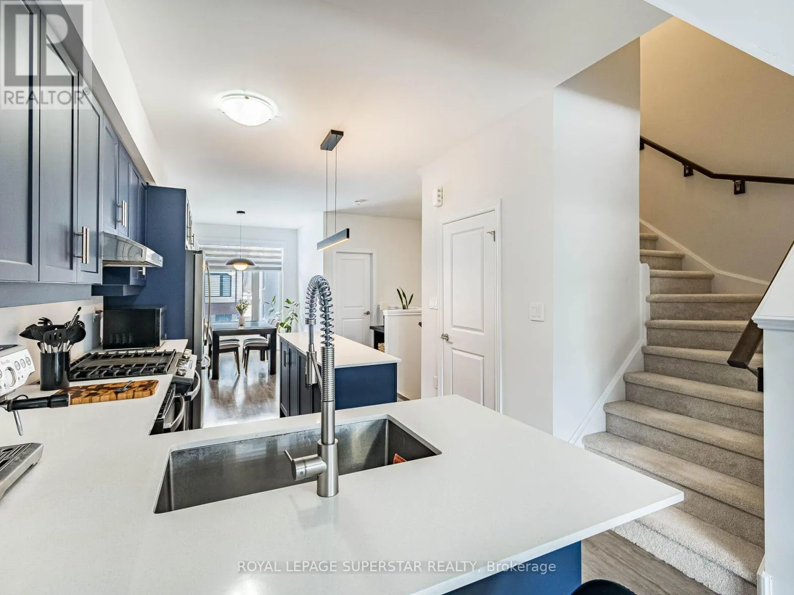Cross Streets: Equestrian Way/Ridge Road. ** Directions: Compass trail to Equestrian way. Welcome to this beautifully upgraded, modern-style 3-bedroom plus den townhome that is truly move-in ready and offers exceptional value for families. The main floor features a versatile den that can be used as a home office or entertainment room. The second floor showcases a bright open-concept layout with a stunning upgraded kitchen complete with hard-surface countertops, a large island, gas stove, stainless steel appliances, ample cabinetry, and an eat-in area, flowing into a spacious living room highlighted by a custom media wall and a convenient large size powder room. The third floor offers a generous primary bedroom with a walk-in closet and upgraded ensuite, along with two other well-sized bedrooms and another full bathroom. Recent upgrades include smart switches and dimmers, upgraded carpet, and upgraded tiles in the washrooms. With its beautiful exterior curb appeal and prime location close to amenities, schools, and highway access, this home is a must-see home ideal for young families and first-time buyers. (id:27476)