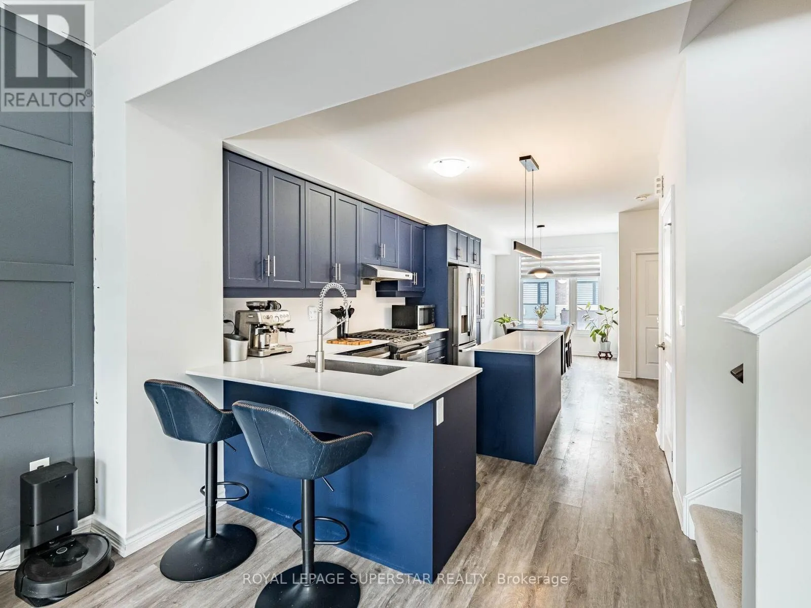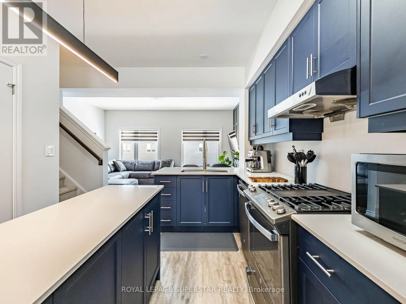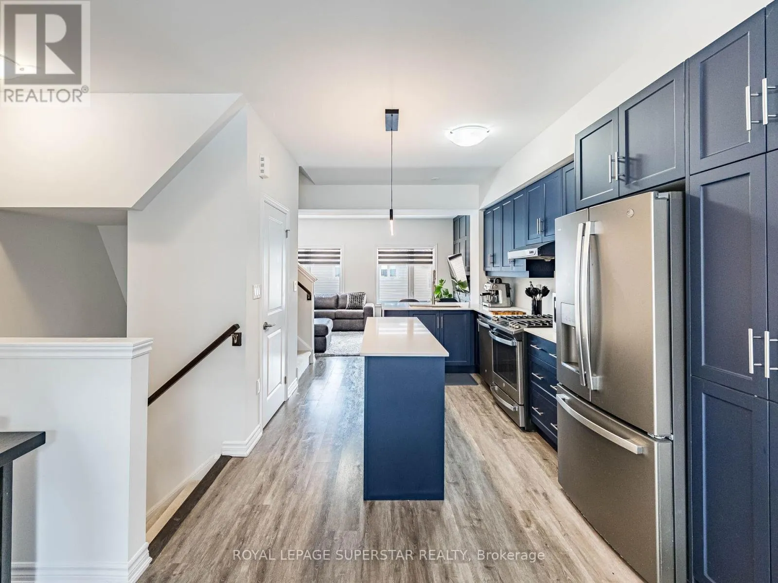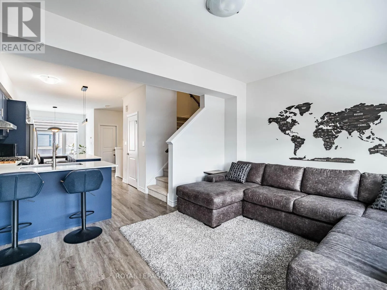 Cross Streets: Equestrian Way/Ridge Road. ** Directions: Compass trail to Equestrian way. Welcome to this beautifully upgraded, modern-style 3-bedroom plus den townhome that is truly move-in ready and offers exceptional value for families. The main floor features a versatile den that can be used as a home office or entertainment room. The second floor showcases a bright open-concept layout with a stunning upgraded kitchen complete with hard-surface countertops, a large island, gas stove, stainless steel appliances, ample cabinetry, and an eat-in area, flowing into a spacious living room highlighted by a custom media wall and a convenient large size powder room. The third floor offers a generous primary bedroom with a walk-in closet and upgraded ensuite, along with two other well-sized bedrooms and another full bathroom. Recent upgrades include smart switches and dimmers, upgraded carpet, and upgraded tiles in the washrooms. With its beautiful exterior curb appeal and prime location close to amenities, schools, and highway access, this home is a must-see home ideal for young families and first-time buyers. (id:27476)