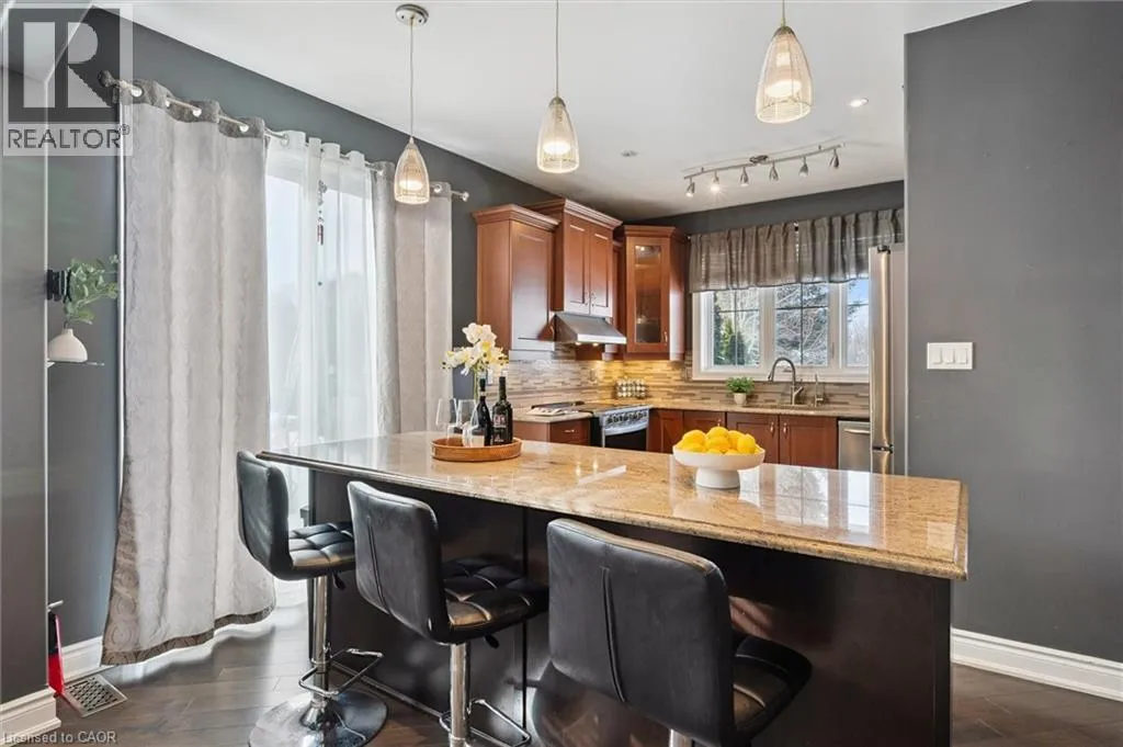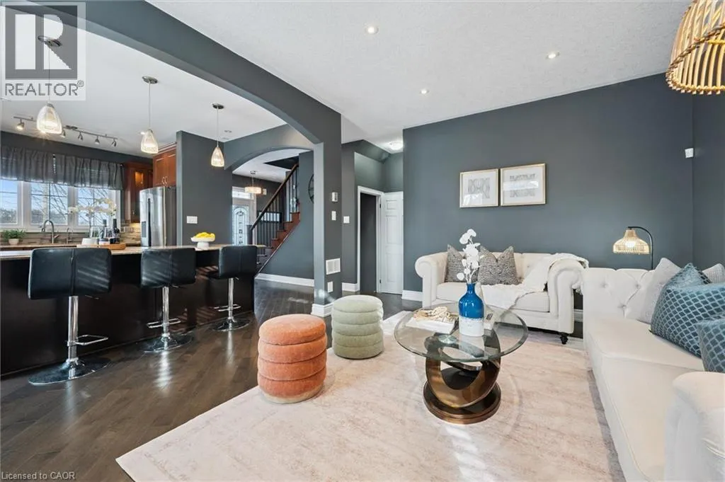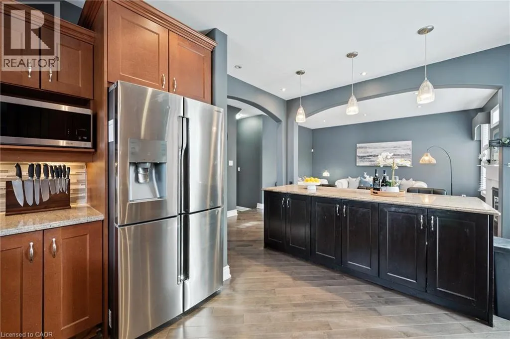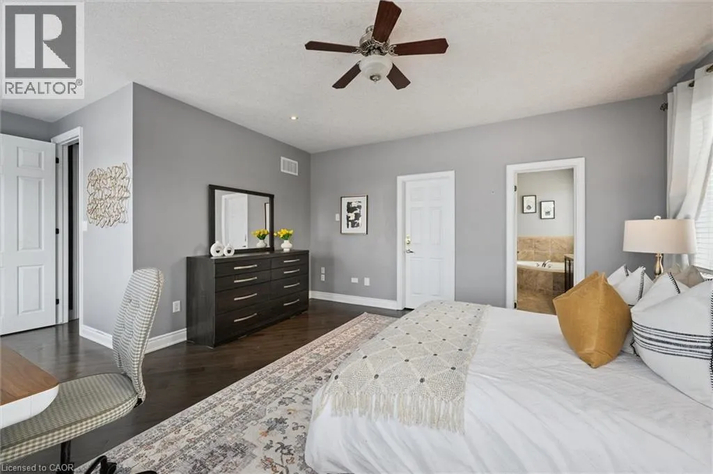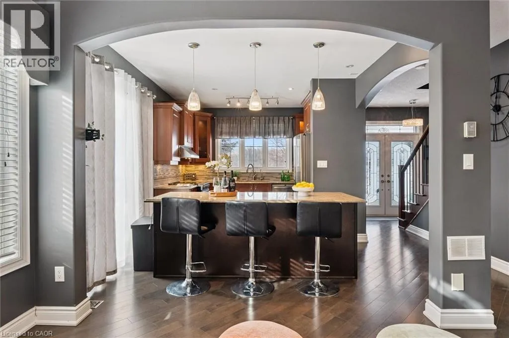 Blackridge Rd to Baldwin Dr Welcome to this beautifully updated 3+1 bedroom, 2.5 bathroom home, situated on a 50 ft lot in the sought after Mill Pond community of East Hespeler. Known for its family friendly atmosphere, mature streetscapes, parks, walking trails, and convenient access to major commuter routes, this neighbourhood is the perfect blend of comfort, convenience, and community. Amazing curb appeal with covered veranda & double front doors. Inside, youâll find carpet free living with 9 foot ceilings and maple hardwood flooring(Jan '20) flowing seamlessly throughout the main level. The renovated kitchen is the heart of the home, thoughtfully redesigned to create a bright open concept layout ideal for entertaining. It features granite countertops, upgraded maple cabinetry with crown moulding, glass backsplash, under cabinet LED lighting, stainless steel appliances, and an 8 foot island with custom cabinetry & breakfast bar seating. Sliding patio doors lead directly to the backyard. The spacious living room offers pot lights, 5½ baseboards, and cozy gas fireplace with classic white mantel and overhead transom. The expansive dining room, with soaring ceilings and abundant windows, is flooded with natural light and perfect for hosting large gatherings. Convenient inside entry to the double car garage. Upstairs, youâll find three generously sized bedrooms along with the convenience of bedroom level laundry. The primary suite is a retreat featuring a large walk-in closet and luxurious 5 pc ensuite with double sinks, granite countertop, corner Jacuzzi tub, and upgraded glass shower with marble seat. An additional 4 pc bathroom completes this level. The fully finished basement has a large rec room, 4th bedroom, rough-in for an additional bathroom, and a versatile office/storage room â perfect for guests, teens, or a home gym setup. Step outside to your private backyard oasis featuring a 16' x 24' cedar deck with BBQ gas line, a hot tub, and 10' x 10 shed. Central Vac throughout. (id:27476)