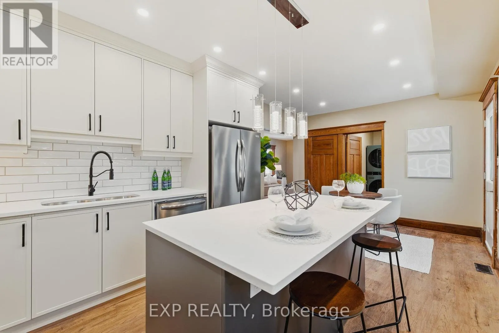 Dolph Street S and Vine Street Welcome to 999 Vine Street, a fully modernized home in Cambridge's sought-after Preston neighbourhood where timeless character meets a comprehensive top-to-bottom renovation. This beautifully updated 3-bedroom, 3-bath detached home offers new flooring throughout, triple-seal custom windows, and all-new exterior entry doors that enhance efficiency while filling the home with natural light. The professionally designed custom kitchen (2026) is the centrepiece, featuring antique ivory cabinetry, quartz countertops, and a showstopping 72-inch island with seating and built-in beverage cooler. The premium appliance package includes double convection wall ovens, a 36-inch induction cooktop, JennAir hood fan, Frigidaire Gallery counter-depth fridge with water and ice, dishwasher, and a 50-bottle dual-zone wine fridge - ideal for cooking and entertaining alike. Offering a rare 1:1 ratio of bedrooms to full bathrooms, the layout features two bedrooms upstairs and a third on the lower level, providing excellent separation for guests, teens, or a home office while ensuring every bedroom is paired with its own full bath. Beyond the stunning finishes, this home has undergone a full mechanical overhaul with all new wiring, new gas line and meter, new York furnace (Oct 2025), new air conditioning (Oct 2025), new hot water heater, all new Pro PEX water lines, and completely replaced drain lines beneath the basement floor to the foundation - delivering long-term reliability and peace of mind. Original main-floor wood trim preserves warmth and character, while main-floor laundry features a rare matte-green LG ThinQ WashTower. The basement includes walk-up access for future potential, and parking accommodates two vehicles on this desirable corner lot with city-cleared sidewalks. Set on a quiet, established street close to excellent schools, parks, shopping, and transit, this is a rare opportunity to own a home where the beauty you see is matched by the quality behind the walls. (id:27476)