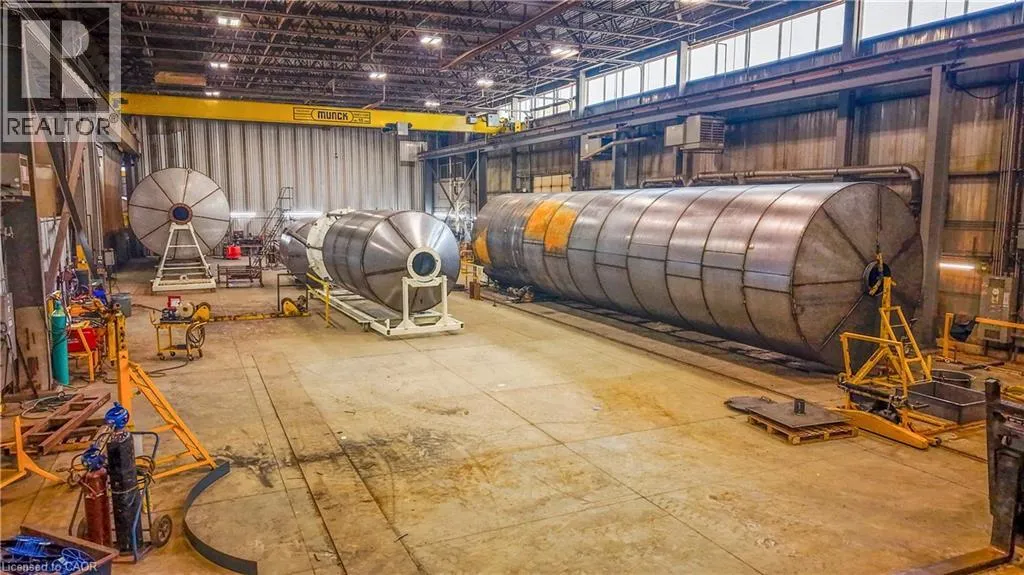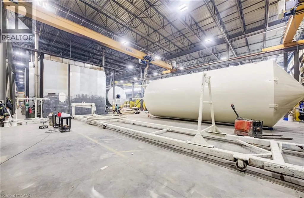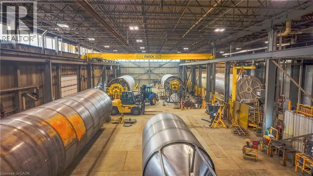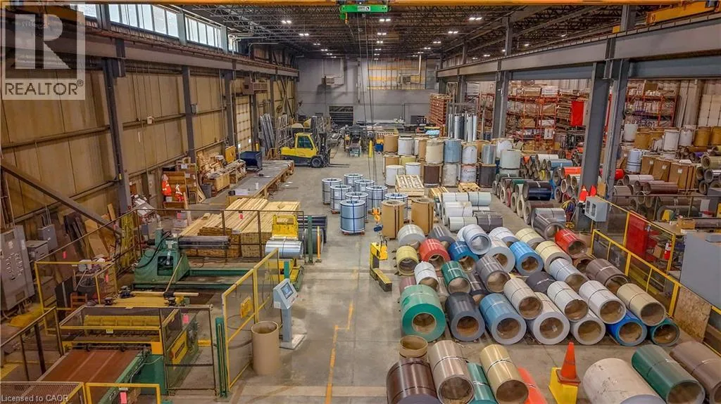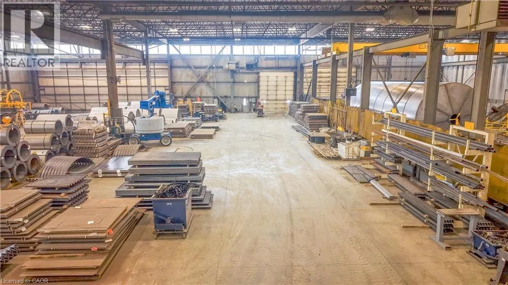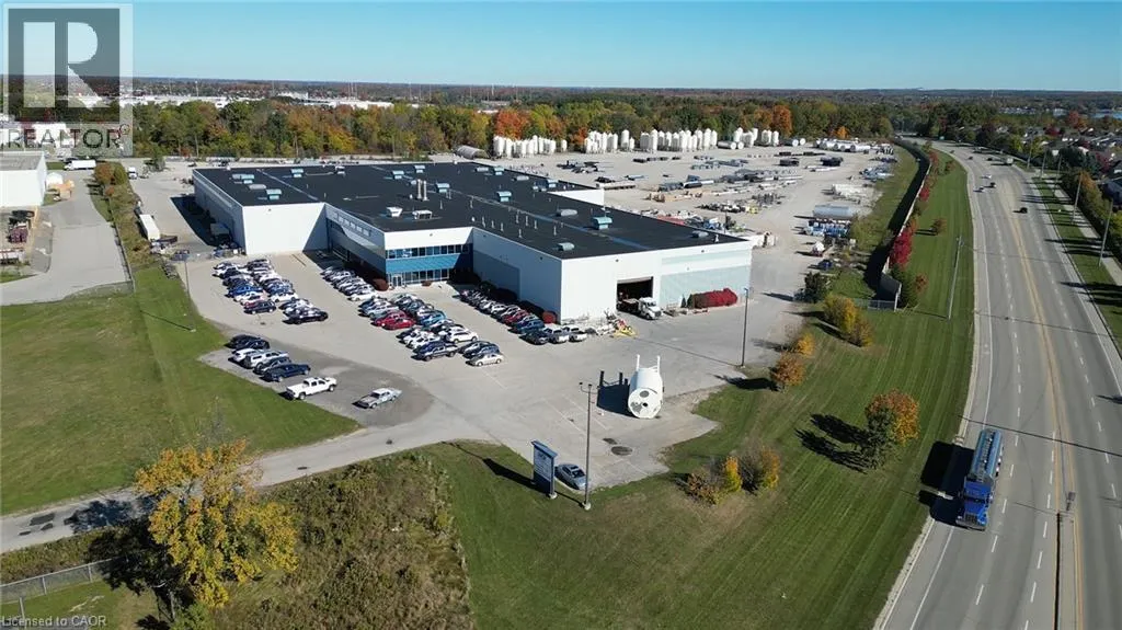 Turn onto Lingard from Can-Amera Parkway for Building driveway Exceptional Grade A Industrial Manufacturing Facility â Fully Craned and Ready for Operations Seize this rare opportunity to acquire a premier industrial property in the heart of Cambridge's dynamic industrial corridor. Spanning approximately 38 acres gross (~28 acres net usable) across three separate PINs, this site offers unparalleled flexibility for heavy manufacturing, logistics, or expansion projects. Zoned M2 and M3 Industrial with extended uses allowing for outdoor storage. Existing lands are engineered backfilled and fully compounded. Boasting 2,500' of prime frontage along Can-Amera Parkway, the location provides excellent visibility, 2KM from Highway 401 @ Townline Road. Constructed in 2007, this modern well maintained facility totals 137,500 SF, including 120,500 SF of high-bay manufacturing space and 17,000 SF of professional, stacked office accommodations. The design emphasizes functionality and productivity, with ribbon windows flooding the manufacturing floor with natural light, a comprehensive high-density sprinkler system for safety, and multiple air makeup units ensuring optimal ventilation and climate control throughout. 10 x 10 Ton Cranes on the Floor with the longest crane run being 535' with a total of 1400' of overhead crane systems @ 22'6 Hook height(CMAA Rated Cranes) Contact for a private tour and marketing details. (id:27476)