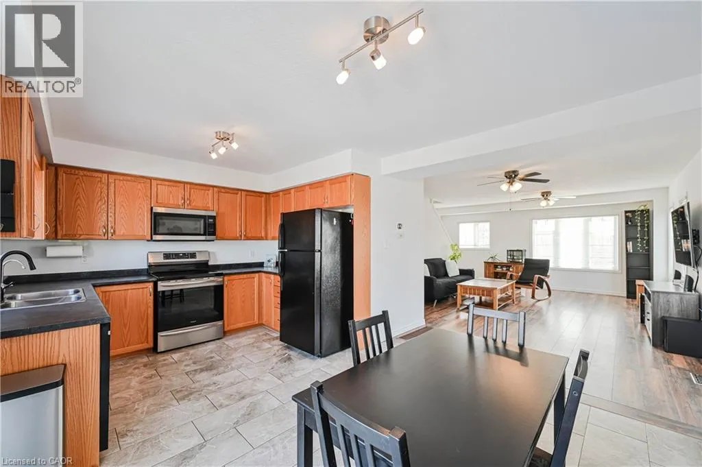 Welcome to this beautifully maintained corner freehold townhome that offers the feel and privacy of a semi-detached property. Featuring laminate flooring throughout with no carpet, this end-unit home provides additional windows, enhanced privacy, and an abundance of natural light. Located in the highly desirable Fisher Mills neighborhood, this home is just minutes to Highway 401, making it ideal for commuters. Enjoy the benefits of freehold ownership with low maintenance fees. The spacious open-concept main floor includes a convenient powder room, a bright dining area with walk-out access to the deck, and a well-appointed kitchen with ample cabinetry. The upper level offers three generously sized bedrooms, including a sun-filled primary suite with its own private 3-piece ensuite, along with an additional 4-piece bathroom. $$$ Spent on upgrades.. Roof replaced in 2020, Newly paint, New Laminate floors (2025), Porcelain tiles in kitchen. (id:27476)