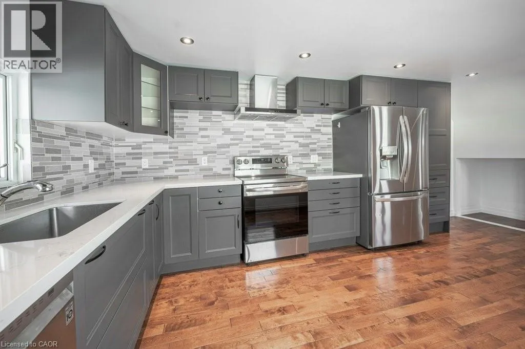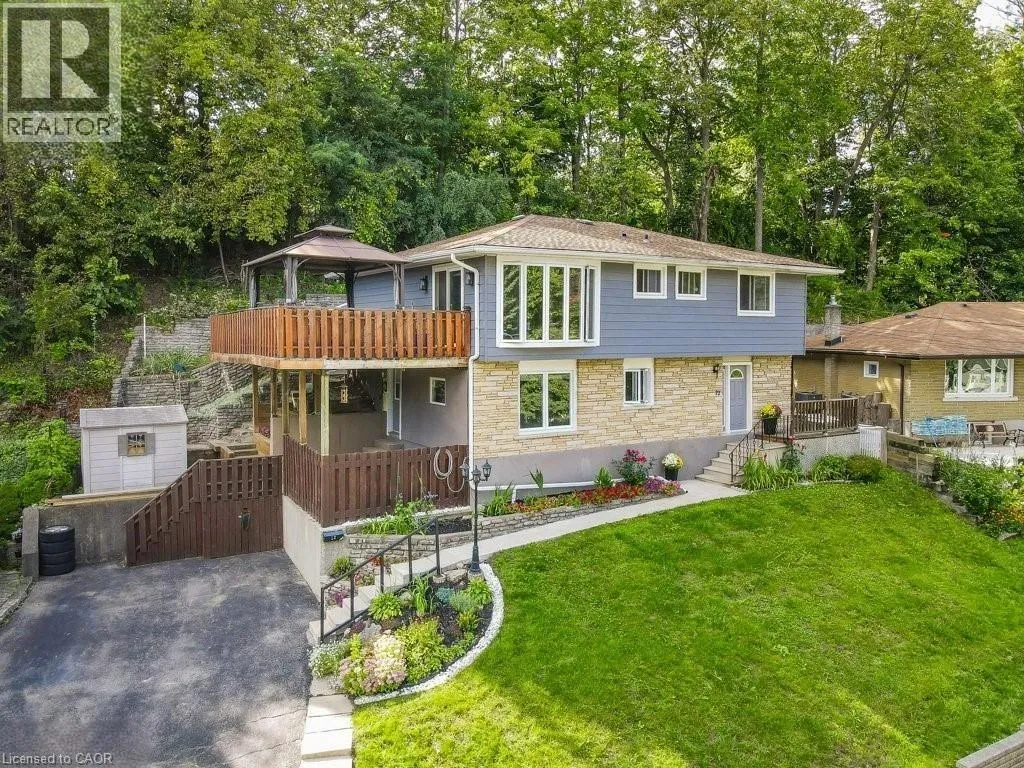 Between Churchill and Gladstone Why spend months renovating when you can have the perfect move-in ready home now? This beautifully finished 3 bedroom, 3 bathroom home located in in the heart of West Galt has so much to offer! Designer kitchen featuring tons of charcoal cabinetry and high-end stainless appliances. Cozy living room with floor-to-ceiling stone fireplace. Sun-drenched bedroom level family room with floor-to-ceiling windows and walkout to a large deck with gazebo and fabulous views of West Galt! 3 spacious bedrooms with hardwood flooring and large windows. 3pc primary ensuite bath with huge walk-in shower. Walk to great schools, Victoria Park, the GasLight District and downtown Galt with quaint restaurants, shopping and the weekly Cambridge Farmersâ Market. This fully renovated home in a highly sought-after neighbourhood is a must see! (id:27476)