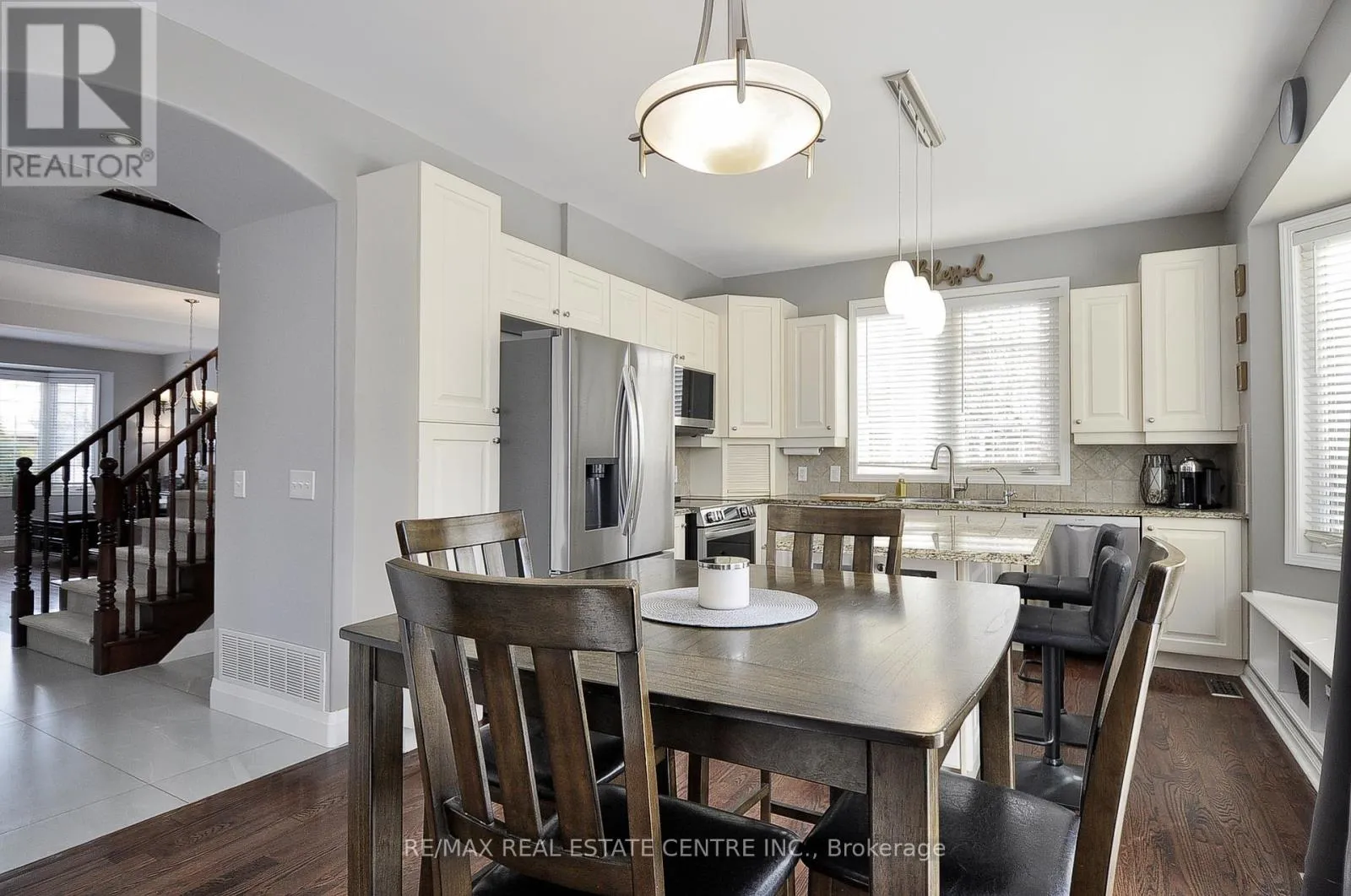 Arthur Fach Dr Prime Commuter location, this beautifully updated 5-bedroom, 4-bathroom two-storey home has been meticulously maintained, updated and upgraded. Completely move-in ready. Features include real hardwood flooring, not laminate and a bright, open-concept layout designed for both everyday living and effortless entertaining. The kitchen is the heart of the home, featuring granite counters & updated appliances (2024), with a view to the family room with an updated gas fireplace (new fan, sensors, and line), creating a cozy gathering space The main floor updates include a redesigned powder room, new tile, shiplap accents, updated casing and baseboards, and professionally painted - delivering a clean, contemporary aesthetic while maintaining warmth and character. Upstairs, the spacious primary retreat offers a charming bay window, glass shower ensuite, and granite countertops - a true private escape. In addition to 4 bedrooms, the upstairs has a versatile office space at the top of the stairs (complete with closet) provides flexibility for work-from-home, reading nook or craft area. Convenient second-floor laundry includes updated washer and dryer (2024). And there's a double linen closet. In addition to a 5th bedroom, the finished basement continues the home's quality finishes with real hardwood flooring, pot lights, heated bathroom floor, hobby/storage space, two oversized storage closets, and large windows that invite natural light. Out back, enjoy a private backyard with easy to maintain landscaping and large concrete patio which has been meticulously maintained - stained and resealed annually - Top to bottom there is pride of ownership you can see. Additional features include: New carpet runner (2024) New glass inserts in rear sliding door Tankless water heater Owned water softener CAT5 wiring throughout Every detail reflects care, maintenance, and thoughtful upgrading. This is more than a house - it's a home designed to grow with you. (id:27476)