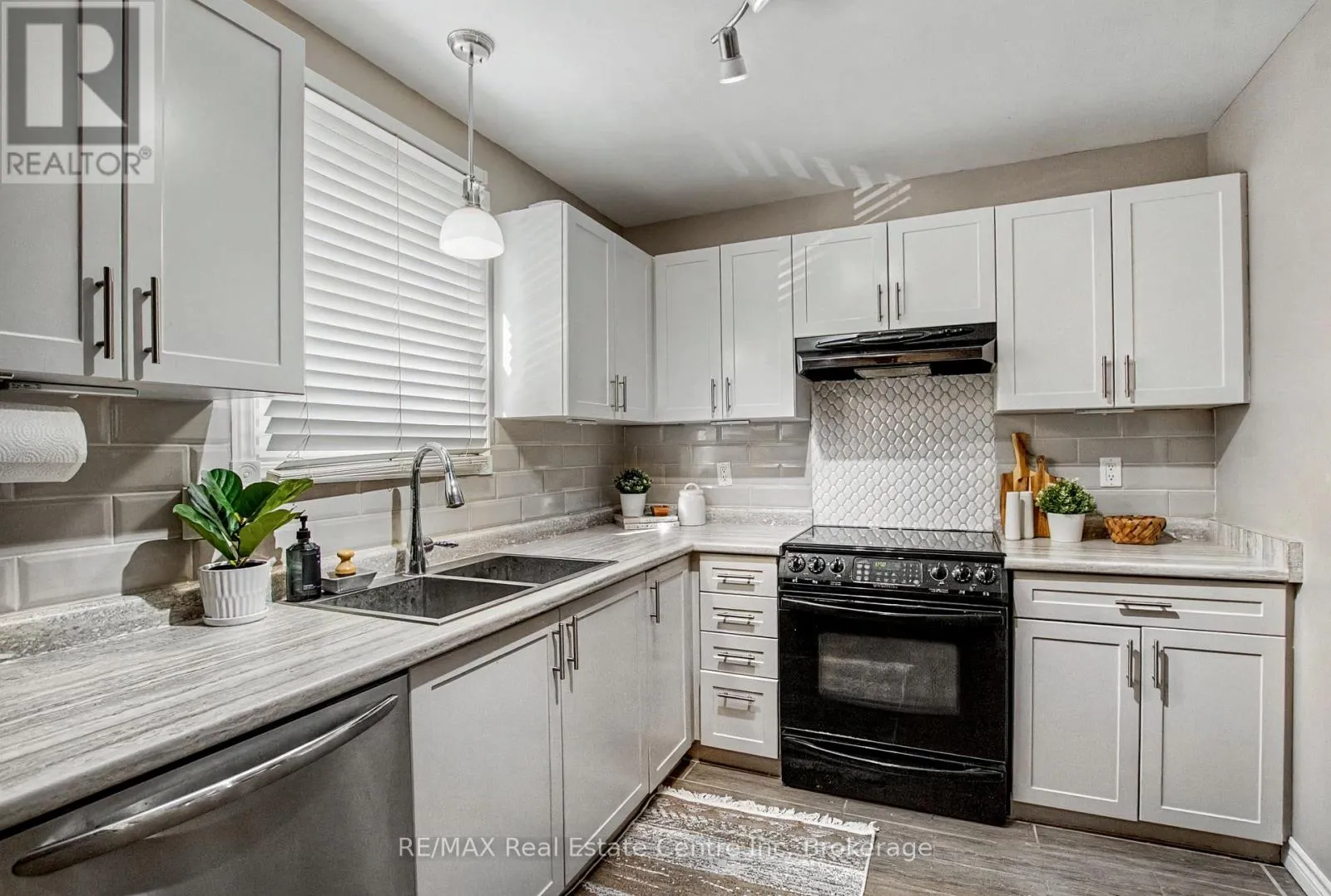 Cross Streets: Cedar. ** Directions: CEDAR STREET ACROSS FROM WESTGATE PLAZA. Welcome to 39-175 Cedar Street, a thoughtfully upgraded 3-bedroom, 1.5-bath townhome offering exceptional value and a refined sense of style for first-time buyers. The main level is bright and inviting, featuring custom elevated design, fresh contemporary paint and luxury vinyl flooring. The renovated kitchen is both stylish and functional, with custom countertops, designer backsplash and clean modern finishes. The open living and dining area flows effortlessly to a large balcony with an expansive outlook, creating the perfect backdrop for morning coffee, summer BBQs, or quiet evenings at home. A well-placed powder room completes this level. Upstairs, you'll find three well-proportioned bedrooms, including a spacious primary with access to the full bath. The lower level adds meaningful flexibility with a finished recreation room, a cozy work or reading nook and a generous utility and laundry space with excellent storage space. Ideally located steps to shopping, transit, river trails, the Grand River, the gaslight district and downtown Galt, this is not your typical townhome. It's a home that feels intentional, elevated and ready to be lived in. 2nd parking spot available! Book your private showing today. (id:27476)