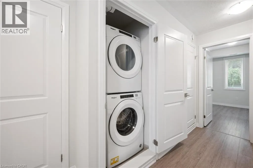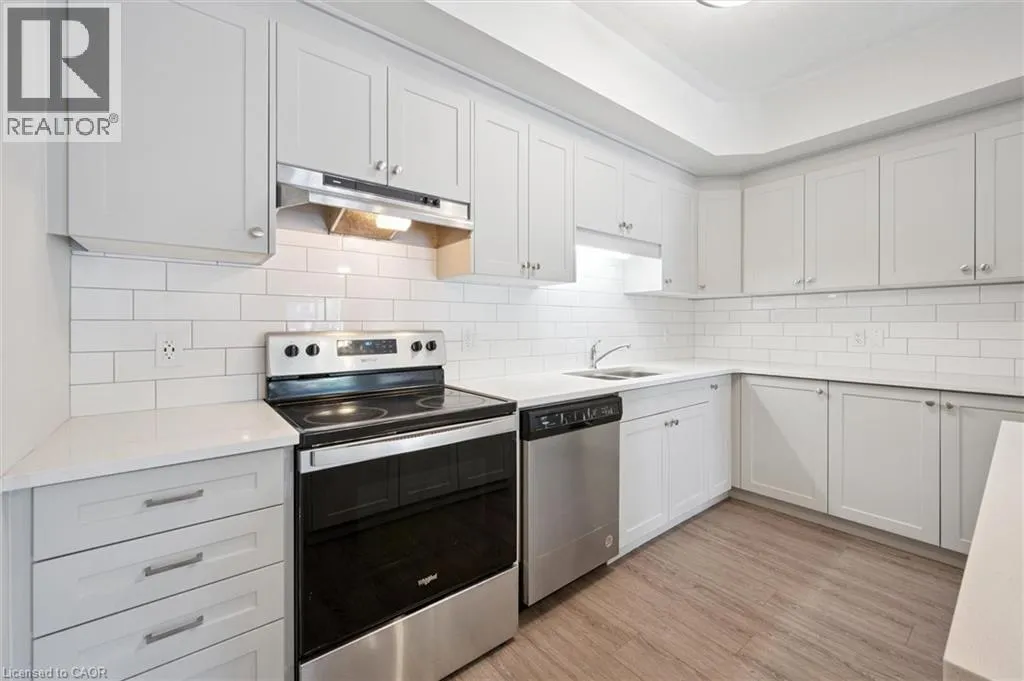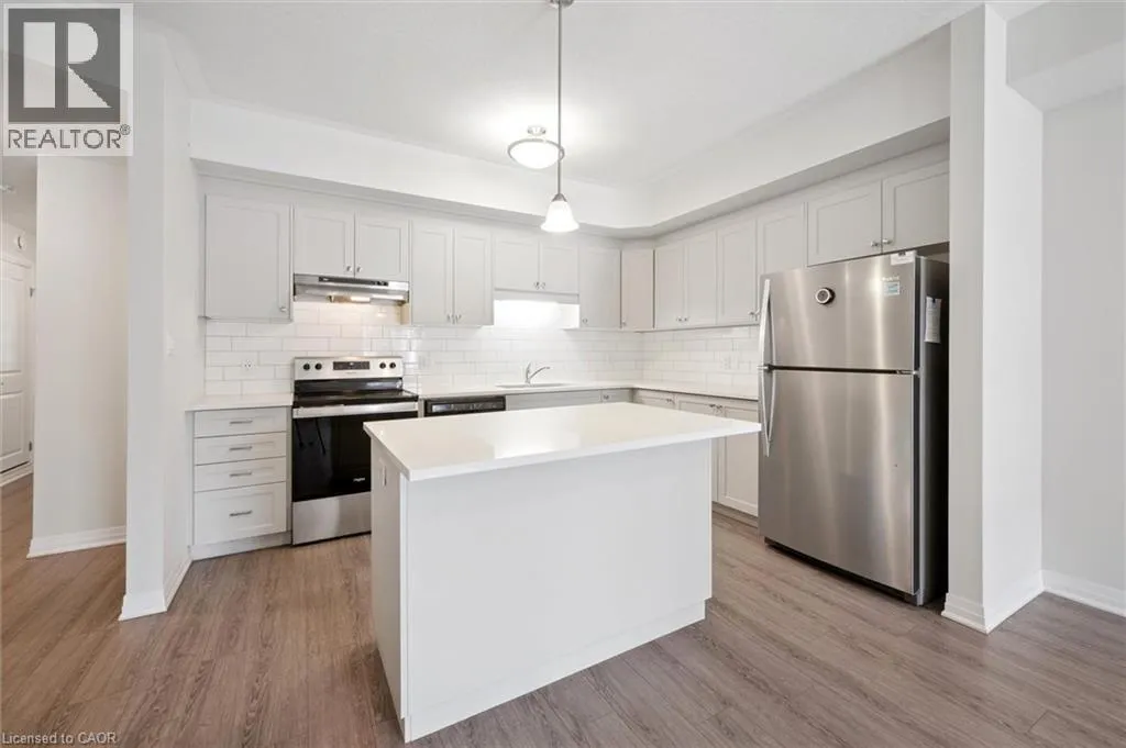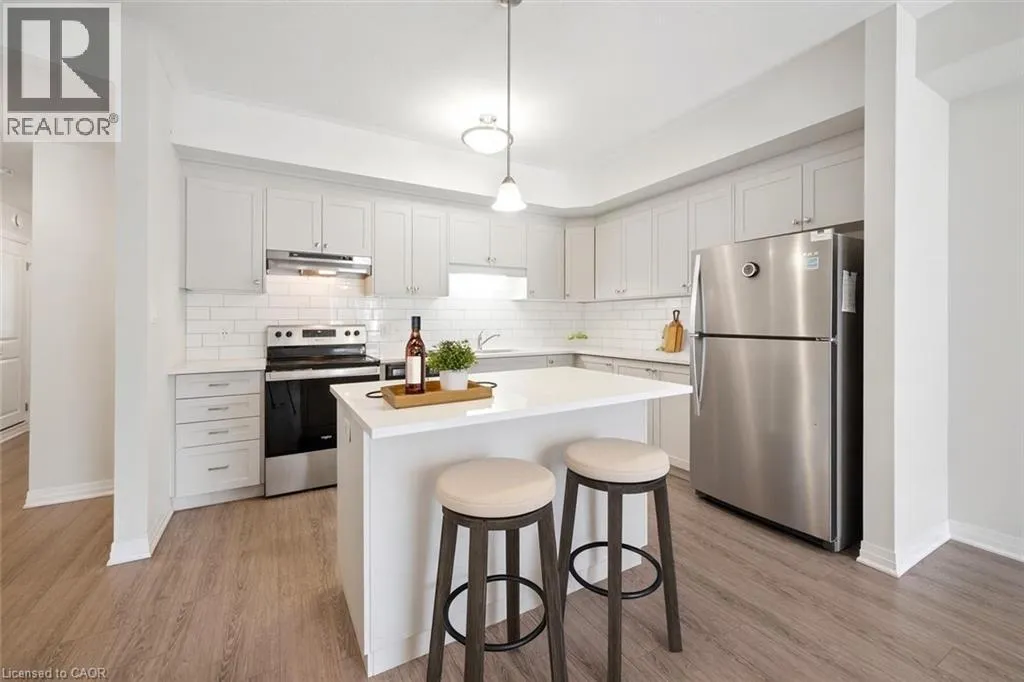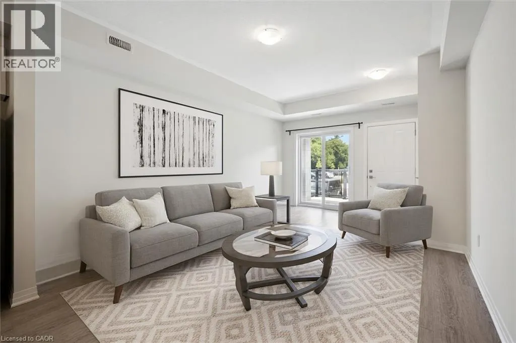 Hwy24/Isherwood Ave 25 Isherwood Avenue Unit C34 offers a stylish blend of comfort and convenience in one of Cambridgeâs most accessible locations. This bright main-floor bungalow-style 2-bedroom, 2-bath stacked townhome features an open-concept layout with a modern kitchen, stainless steel appliances, subway tile backsplash, and a central island thatâs perfect for both cooking and gathering. The spacious primary suite includes a walk-in closet and a private 3-piece ensuite, while the second bedroom and full bath provide flexibility for guests or a home office. Large windows fill the space with natural light, and two private balconies offer peaceful views of green space and fresh-air living. Complete with one parking spot, this move-in-ready home is situated minutes from the Grand River trails, Riverside Park, the 401, and the vibrant Gaslight District, with its mix of dining, shopping, and entertainmentâideal for those seeking a low-maintenance lifestyle without sacrificing location. (id:27476)