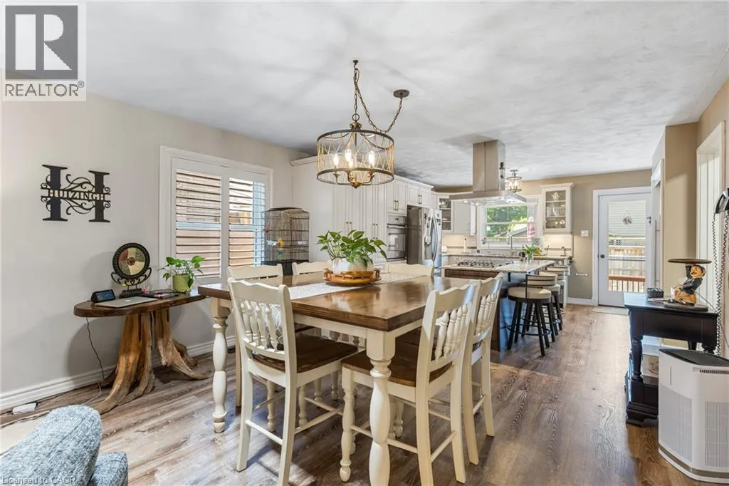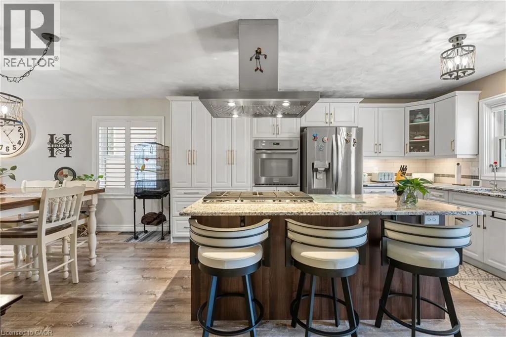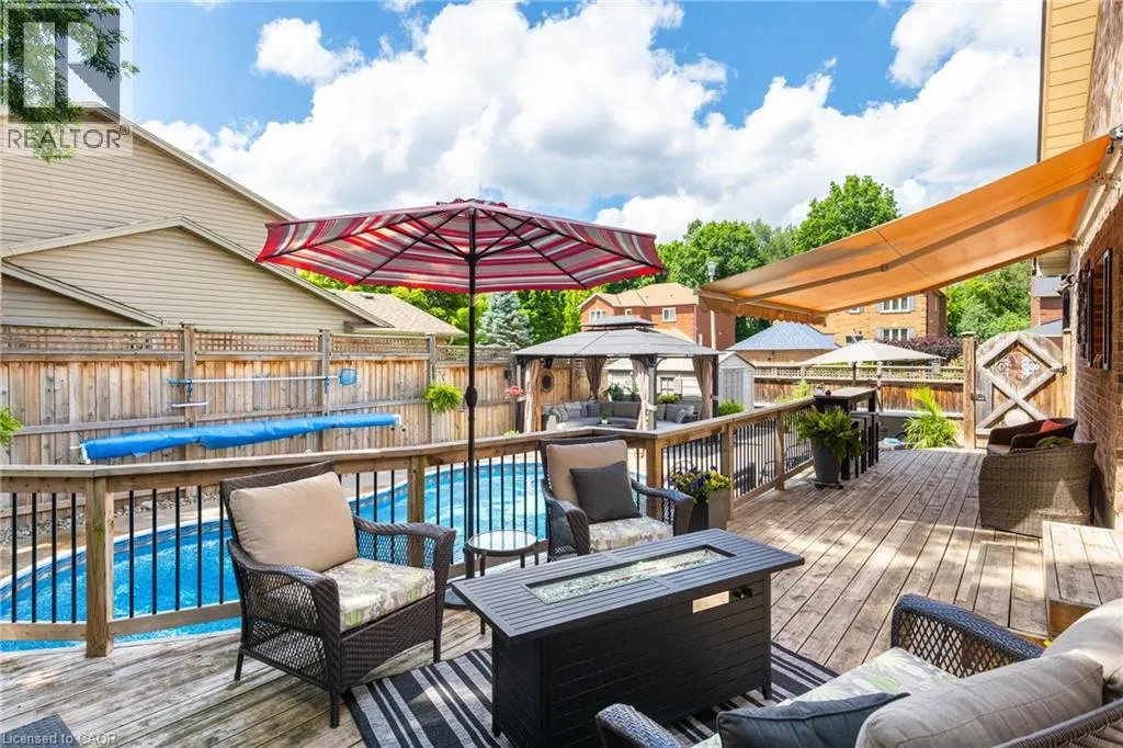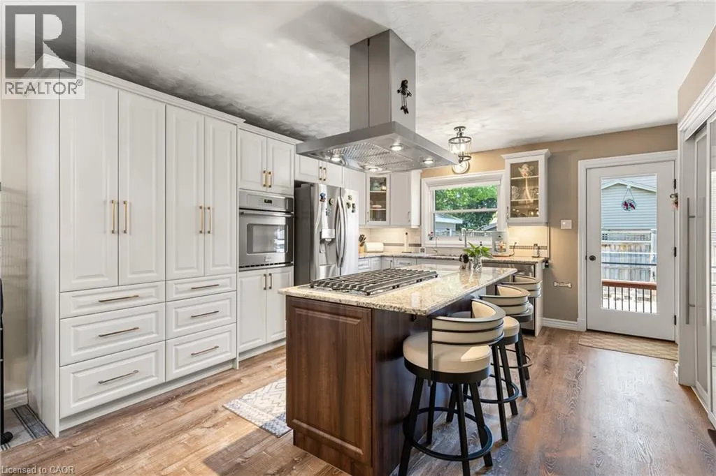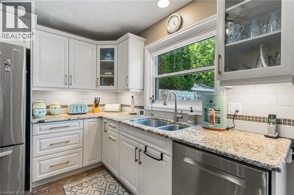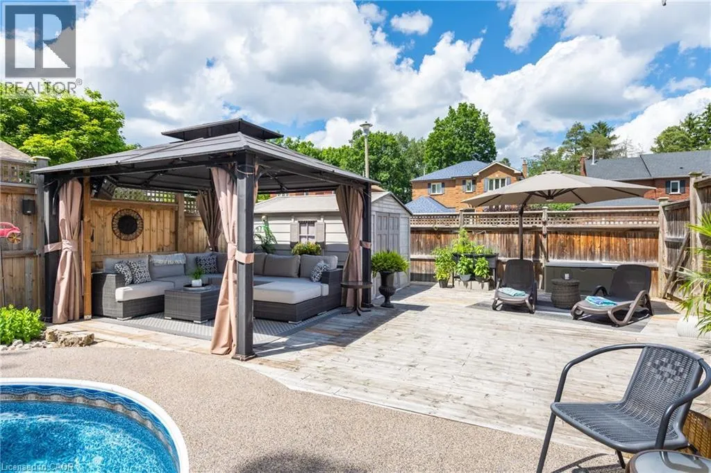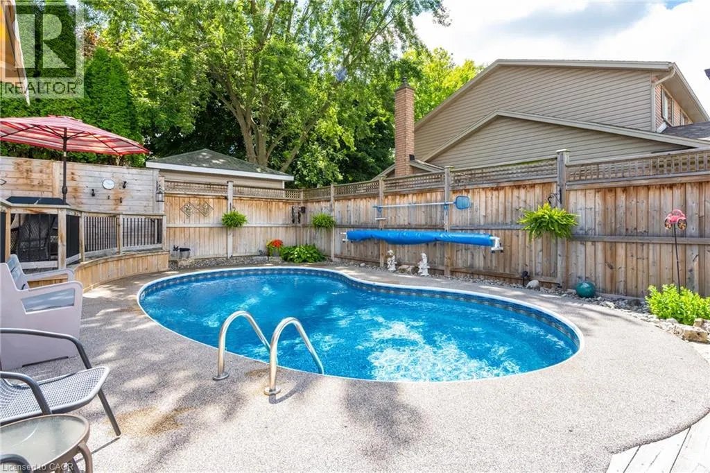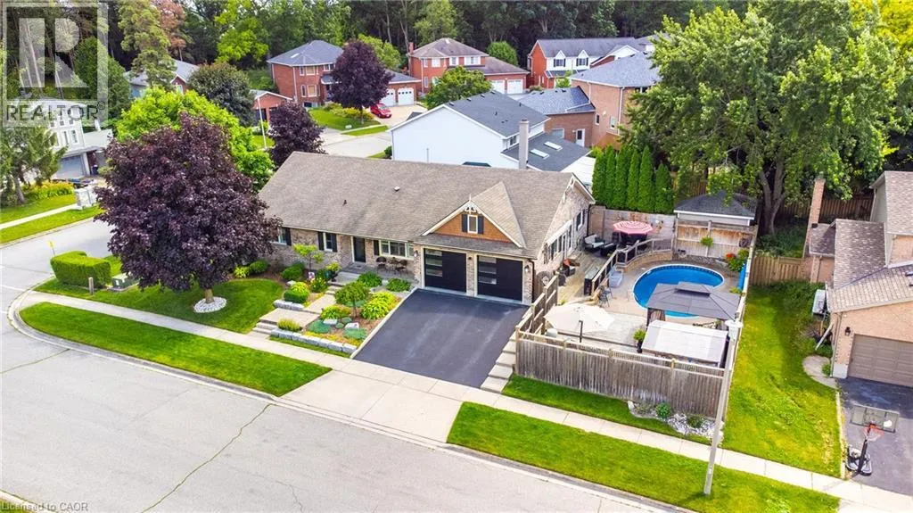 CHAMPLAIN BLVD. TO SANTA MARIA DR. You will be impressed when you step foot into the east Galt bungalow. Looking for an inground pool? This place looks great inside and out. Everything has been meticulously maintained during the Sellers ownership. Here's some of the details starting from the main floor eat in kitchen: granite counters incl island, all stainless appliances incl gas range and exhaust fan and sep/wall oven. Off the the kitchen you have the Great rm and Dining rm separated by a wall incl electric fireplace and wall mounted tv. The floors are finished with higher end vinyl plank floors which spread through the entire main floor. Other main floor features like 2 tubular skylights adding more natural light, California shutters in almost all rooms, bedrooms with wall mounted tv's, Primary bedroom with 3 pce shower ensuite, main floor bathroom as a 4 pce with stand alone tub and glass shower, a sitting/reading rm looking out the front windows. 3 bedrooms on the main floor plus a sep mudroom dividing the garage entry and kitchen. Basement is also completely finished with another bedrm, large laundry rm, a separate play rm for the kids or for storage, a cold rm, utility rm with ample space to make it a workshop, huge recrm with electric f/p, built in speakers, pool table and another 3 pce bathrm. You are sure to be impressed with outside corner lot with curb appeal, stone walkways and stairs, professional landscaping, fully fenced, kidney shaped chlorinated pool with rubber walkway, pool shed , gazebo, gardening shed and a remote awning to stay in the shade. You will also see the 2 car garage with coated floors, wall speakers, and built in cabinets. Here's a few other mentions:100 amp upgraded panel, sump pump w/batter back up, RO system, central vac and attachments located in garage, Roof 2013, Furnace 2016, new windows 2016, water softener 2024, leaf fitter gutters 2020-life time warranty transferable, pool heater 2017, pool liner 2018, chlorinator 2018, winter cover 2022, pool pump 2017 (id:27476)
