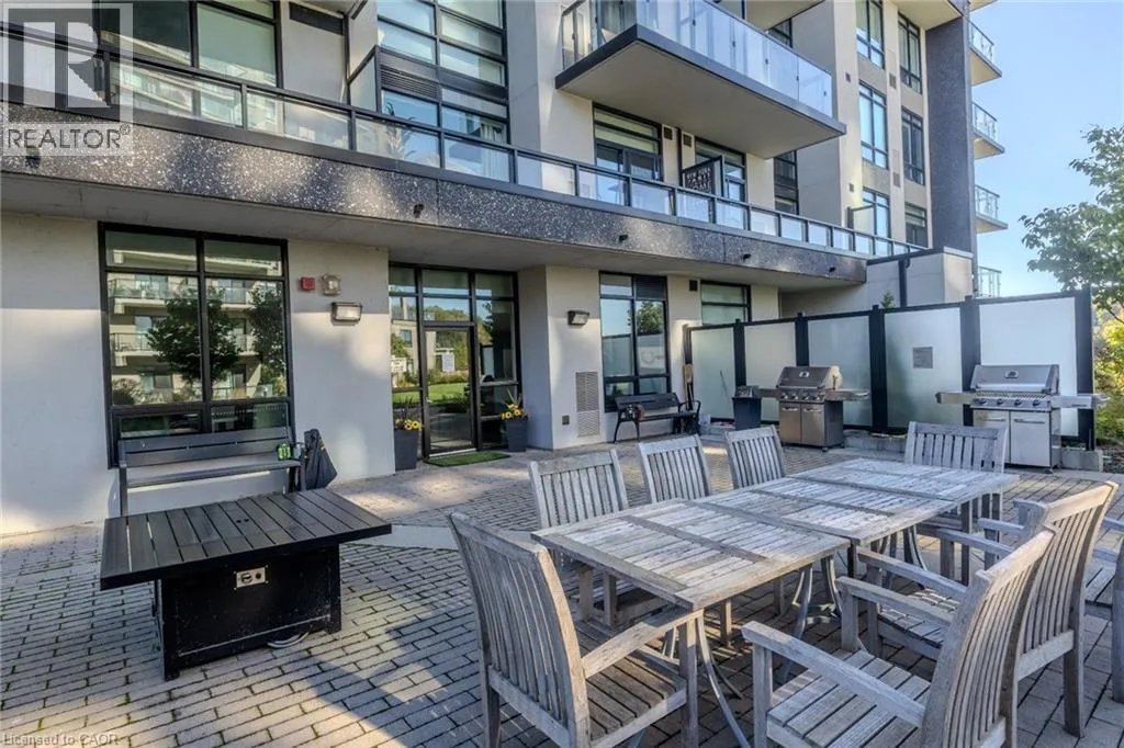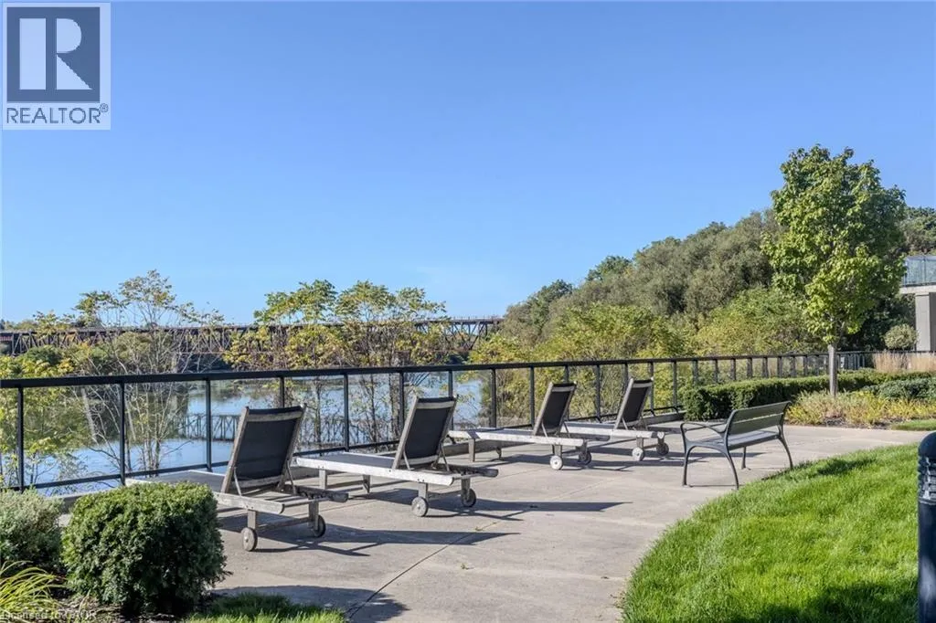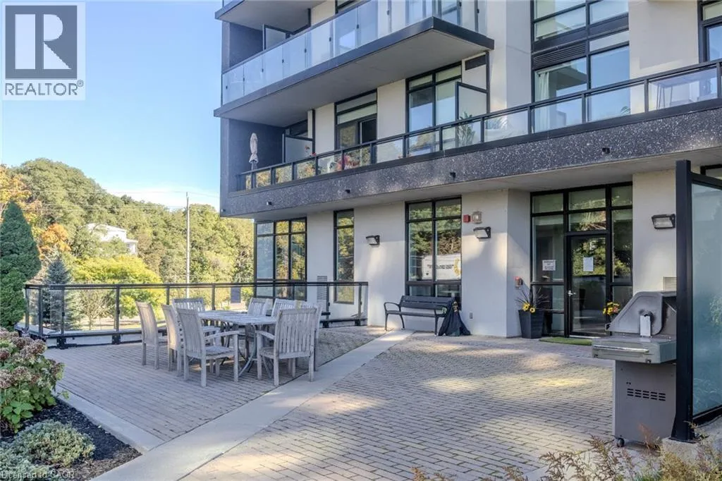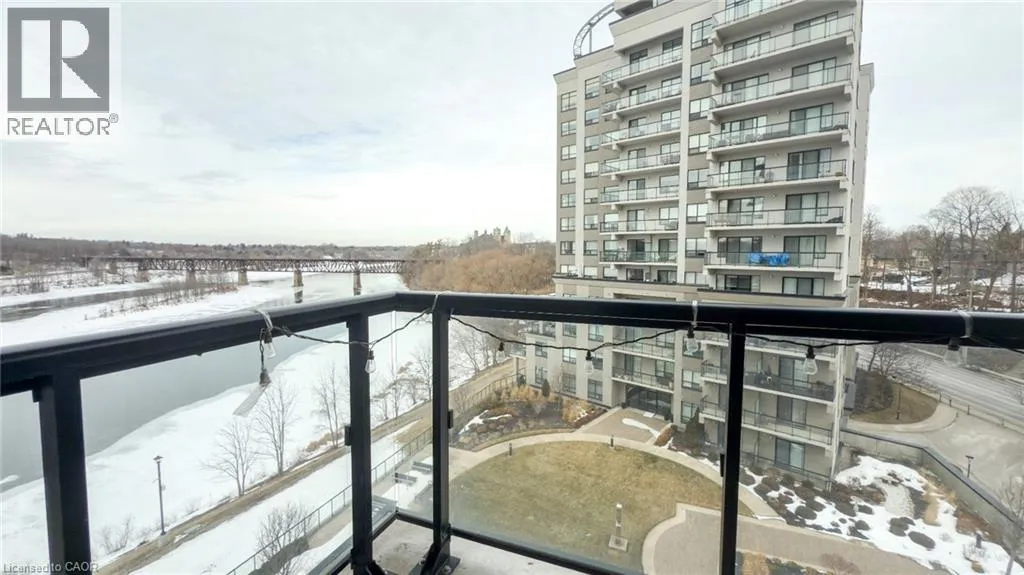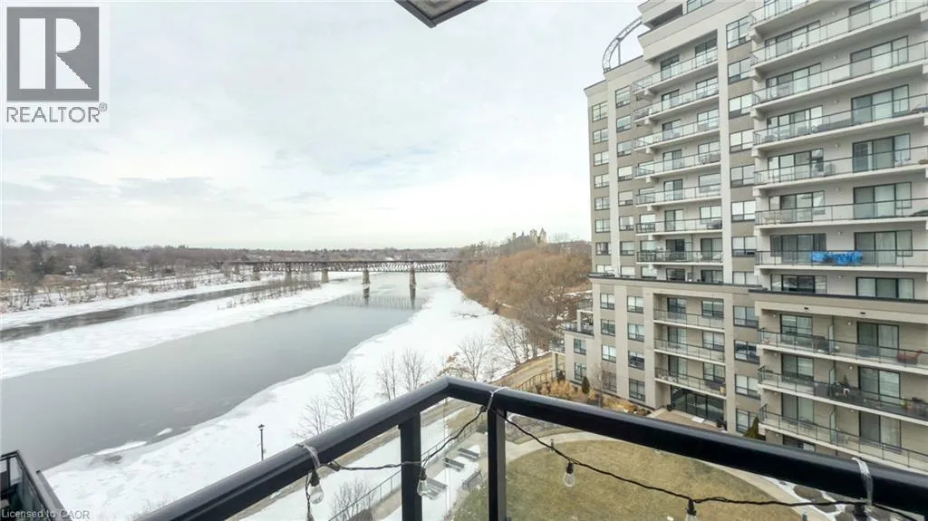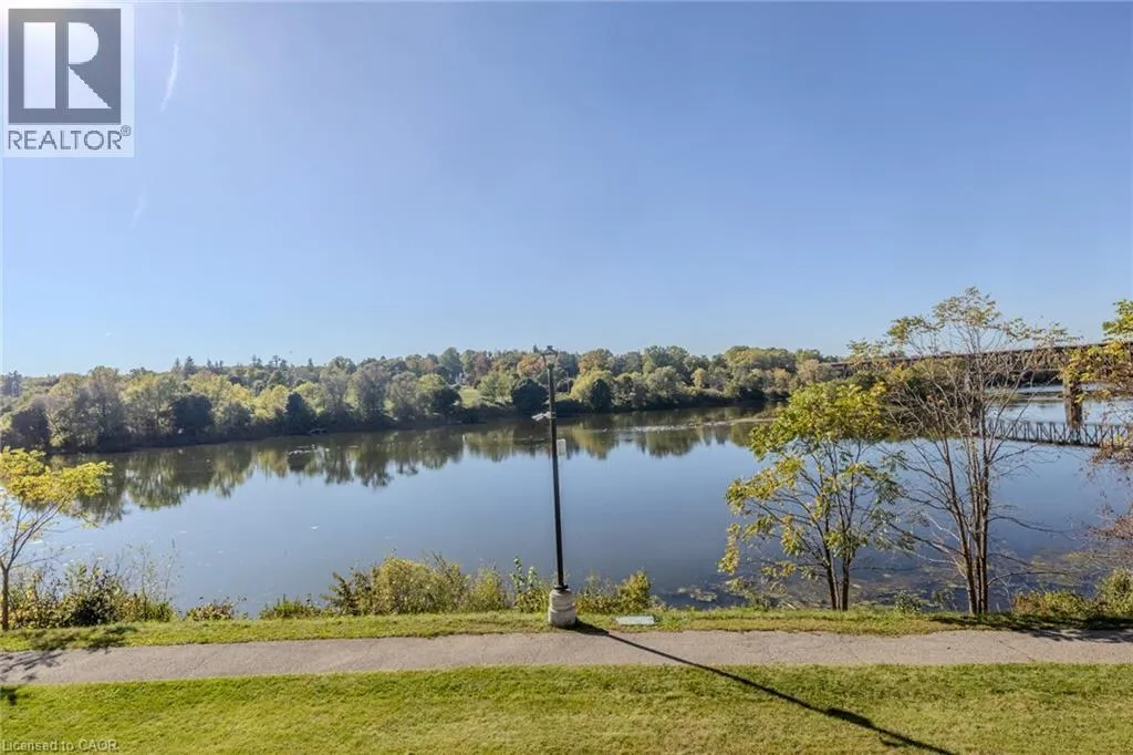 Hwy 24 (Hespeler Rd) leads into Water St downtown Galt Welcome to this modern 1-bedroom condo offers stunning views of the Grand River, 9-ft ceilings, and a bright open-concept layout. Features include a stylish kitchen with granite counters, stainless steel appliances, breakfast bar, hardwood floors, and a carpeted bedroom for comfort. Enjoy a private balcony, rooftop riverside terrace with BBQs and fire pits, fitness centre, guest suite, and party room. Includes 1 underground parking space and 1 locker. Steps to downtown, restaurants, shops, trails, theatre, and the farmers' market. (id:27476)