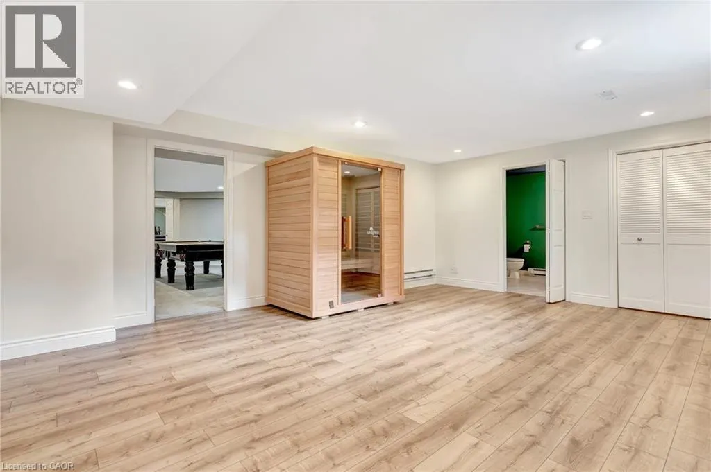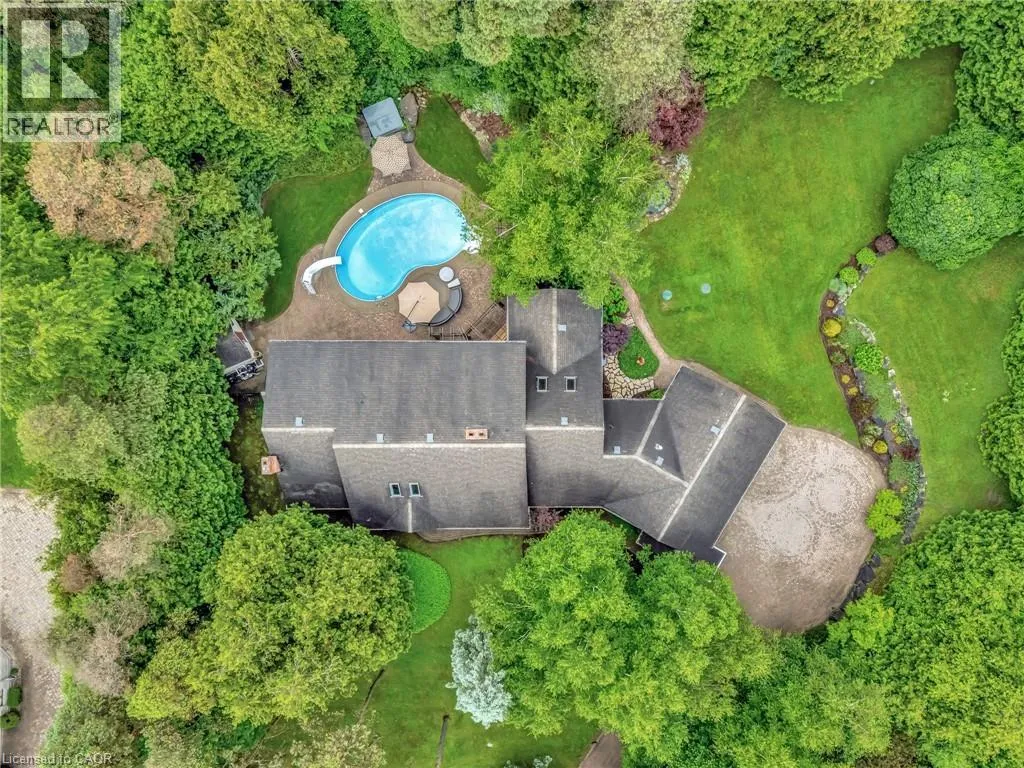AVENUE ROAD PRIVATE ESTATE LIVING â 22 Deerpath Court, an extraordinary residence tucked away on a quiet cul-de-sac, surrounded by towering trees and beautifully landscaped grounds. Situated on 1.17 private acres, resort-like property, this custom home offers over 5,018 sq ft of living space across 3 meticulously designed levels. The long, rounded driveway flows effortlessly toward an impressive 3-car garage & inviting covered front porch. Step inside the grand foyer, where a sweeping staircase, slate floors, and intricate trim work set the tone for timeless elegance. To your right, the formal living room offers rich herringbone hardwood floors & a statement fireplaceâperfect for hosting guests or quiet evenings by the fire. The heart of the home is the magazine-worthy kitchen, featuring custom cabinetry, luxury appliances, stone counters, and a butcher block island. The bright breakfast area & family room are wrapped in windows with incredible views of the backyard retreat. Sunlight pours into the bonus sitting roomâan ideal space to curl up with a coffee and take in the peaceful, natural surroundings. The main floor also offers a private office with fireplace, a spacious formal dining room, & a luxurious primary suite with double walk-in closets & spa-like ensuite overlooking the pool. Upstairs, youâll find 3 generous bedrooms, 2 full bathrooms, & ample storage. The fully finished basement expands your living space with a rec room, bedroom, 3pc bathroom, and abundant storage, plus direct garage accessâperfect for multi-generational living or future in-law potential. Step outside and discover your private oasis: an inground pool with slide, hot tub, lounging areas, and manicured gardens create the ultimate space for summer entertaining. This home truly combines luxury, privacy, and function in one of Cambridgeâs most desirable enclaves, just minutes to shopping, trails, golf, & highway access. Welcome to your forever home on Deerpath Courtâwhere every day feels like a getaway. (id:27476)