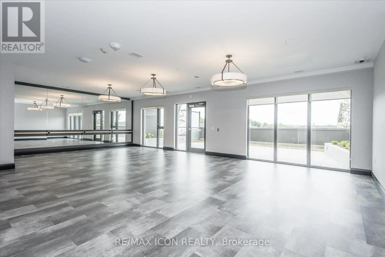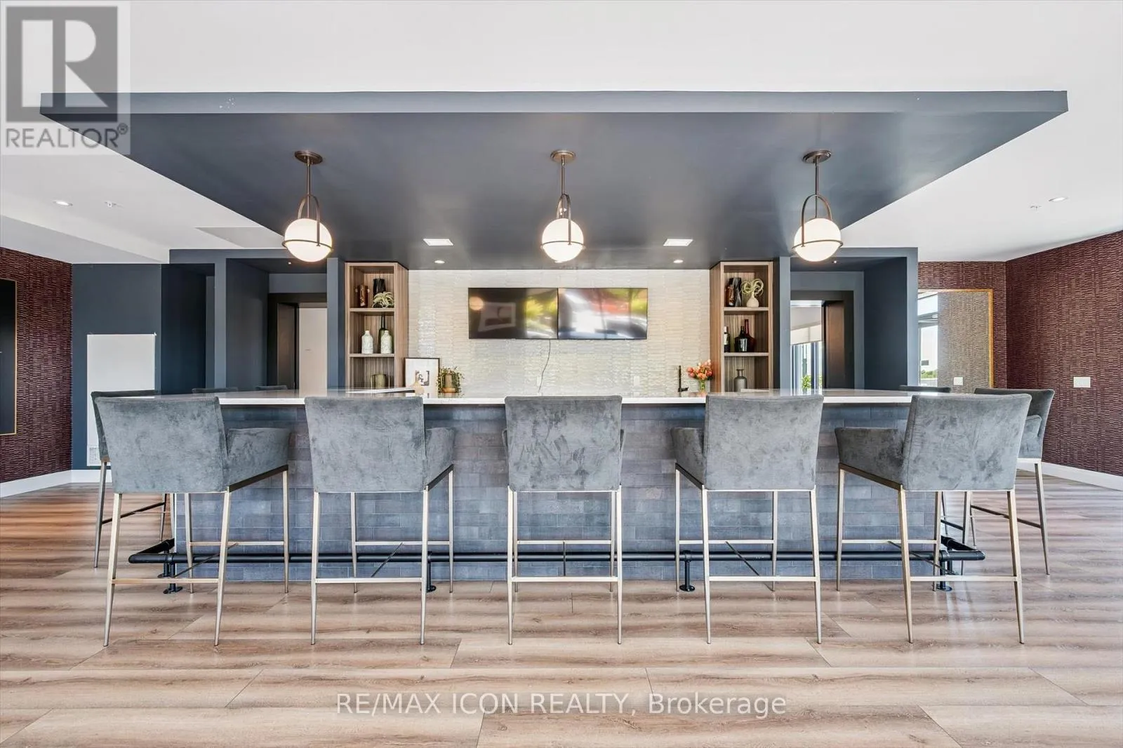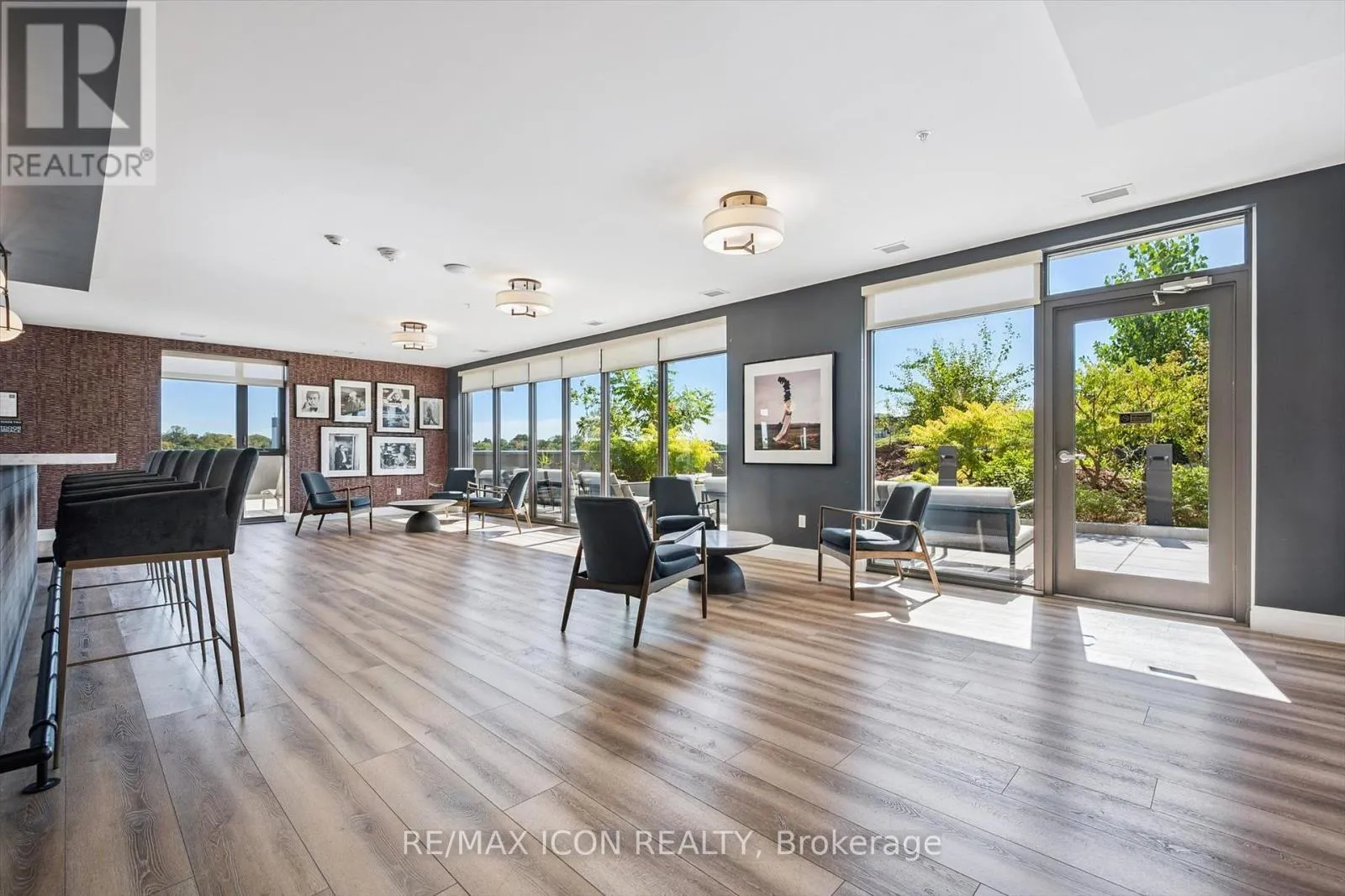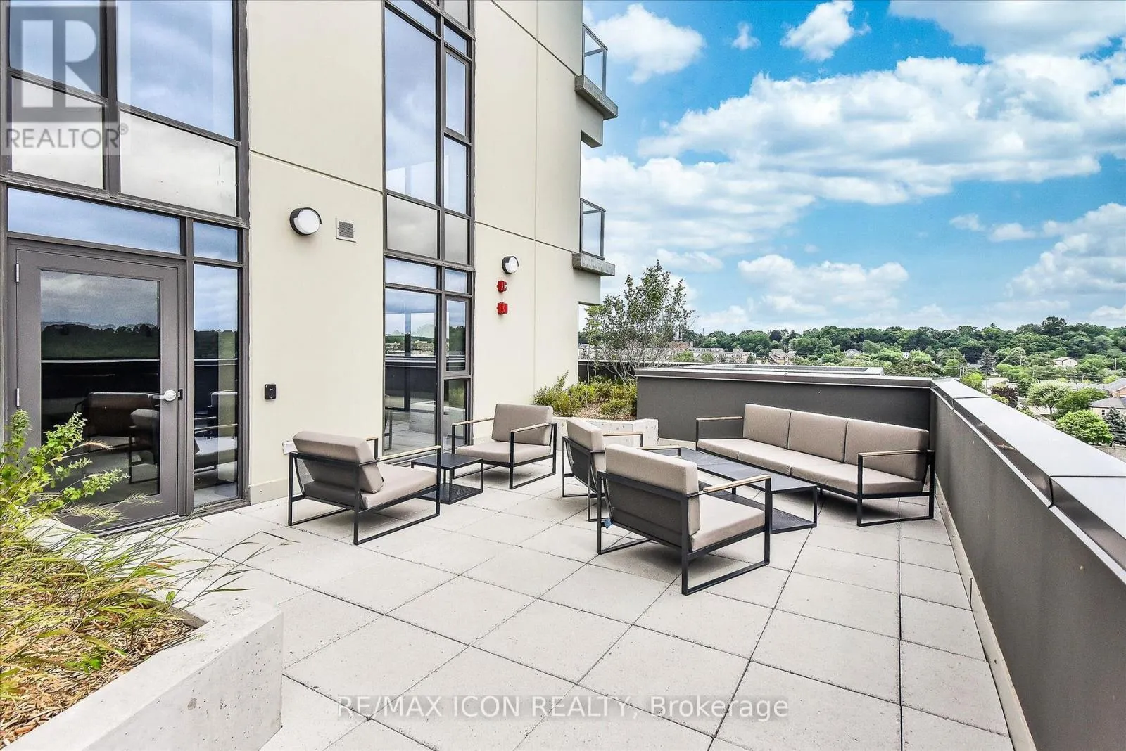 Cross Streets: St Andrews. ** Directions: St Andrews to Glebe. STUNNING VIEWS from this 9th-floor corner unit in the vibrant Gaslight District! Discover this beautiful 2-bedroom, 2-bathroom condo just steps from the Grand River, offering spectacular treed views over historic West Galt. Featuring 9-foot ceilings, laminate flooring, and an open-concept design, this home perfectly blends modern style with everyday comfort. The spacious living area flows seamlessly into a contemporary kitchen complete with sleek white cabinetry, quartz countertops, upgraded stainless steel appliances, and a large island ideal for cooking, dining, and entertaining. Step out onto the full-width balcony-accessible from both the living room and the primary suite-and take in the beautiful outdoor space. The primary bedroom offers two closets and a 4-piece ensuite with double sinks and a walk-in shower. A second bedroom, additional 4-piece bathroom, and convenient in-suite laundry complete the thoughtfully designed layout. One parking space is included. As a corner unit, enjoy extra windows and sweeping views to the north and west, filling the space with natural light. Residents enjoy exceptional amenities including multiple lounges, a games room with billiards and ping pong, a state-of-the-art fitness and yoga studio, stylish party room with bar, co-working spaces, and stunning outdoor terraces overlooking Gaslight Square-featuring fire pits, pergolas, and BBQ areas. Step outside and embrace the vibrant downtown lifestyle- walk along the Grand River trails, explore nearby cafés and shops, or visit the weekend Farmer's Market. Live in the heart of the Gaslight District, surrounded by incredible restaurants, events, and entertainment. Maintenance fees include gas and internet. Book your private showing today! (id:27476)