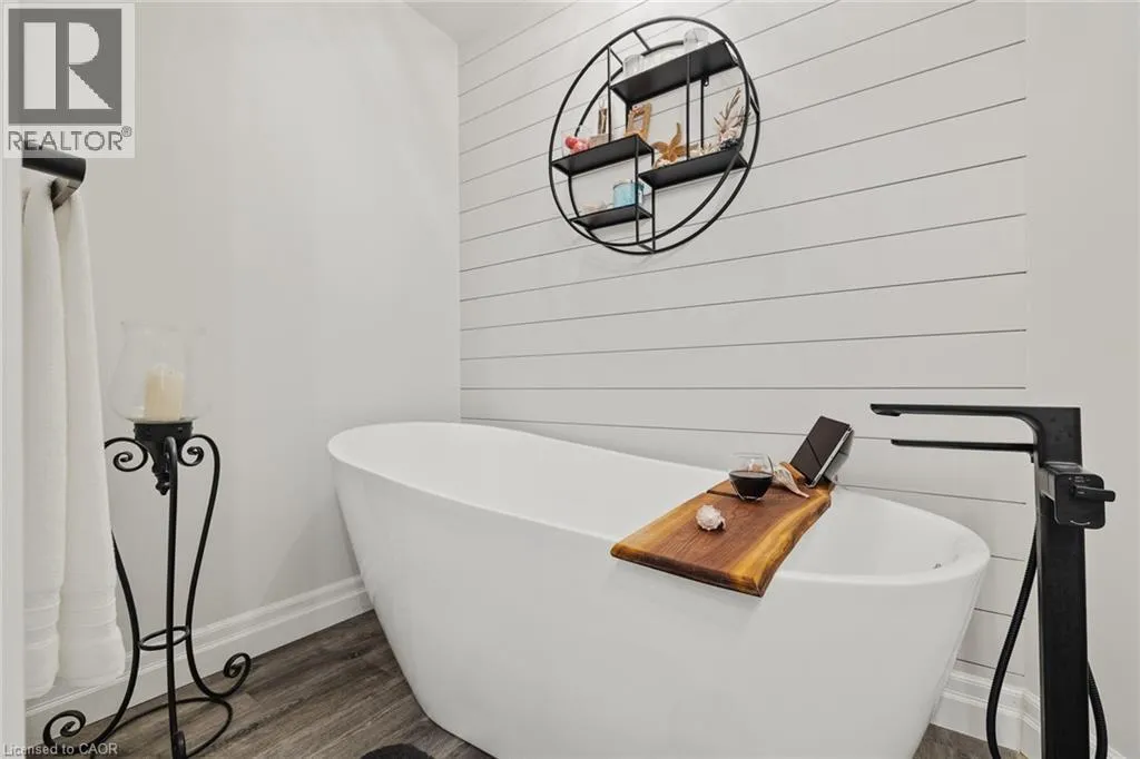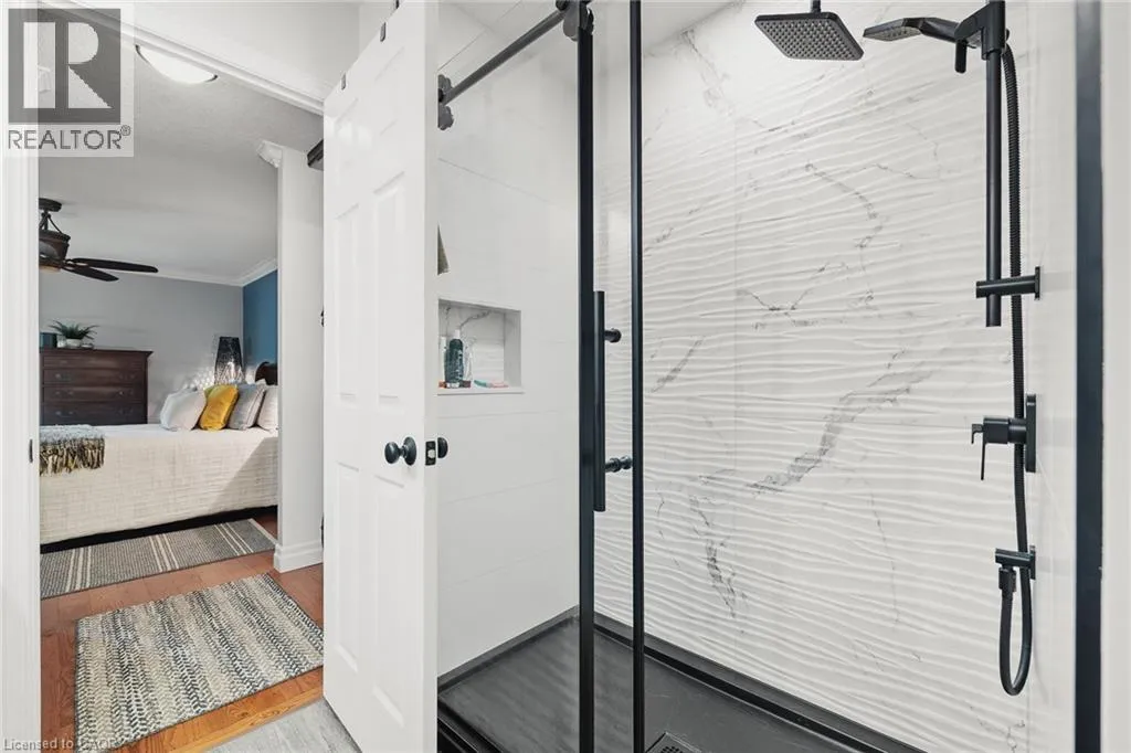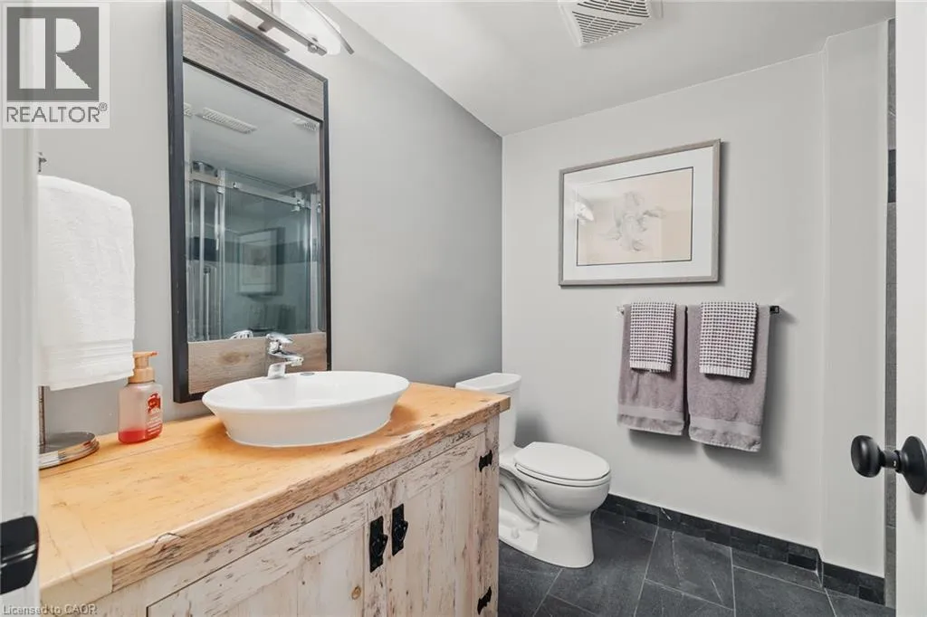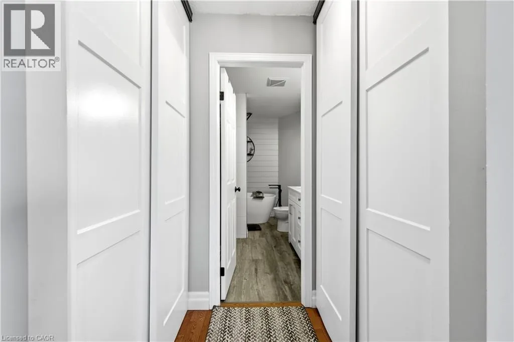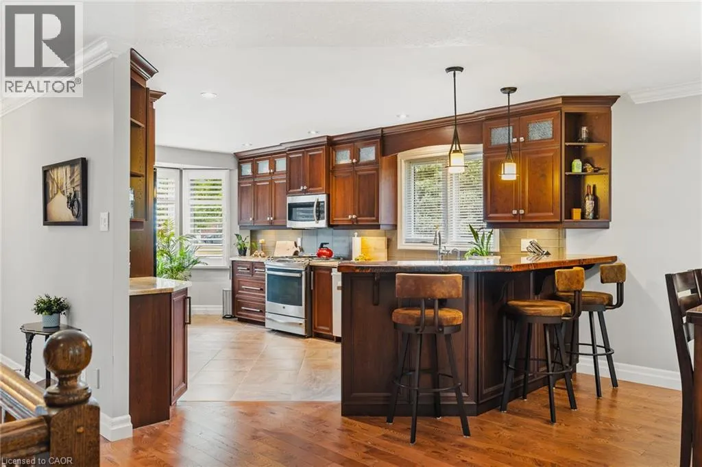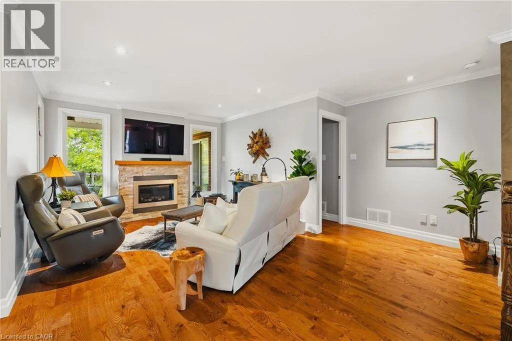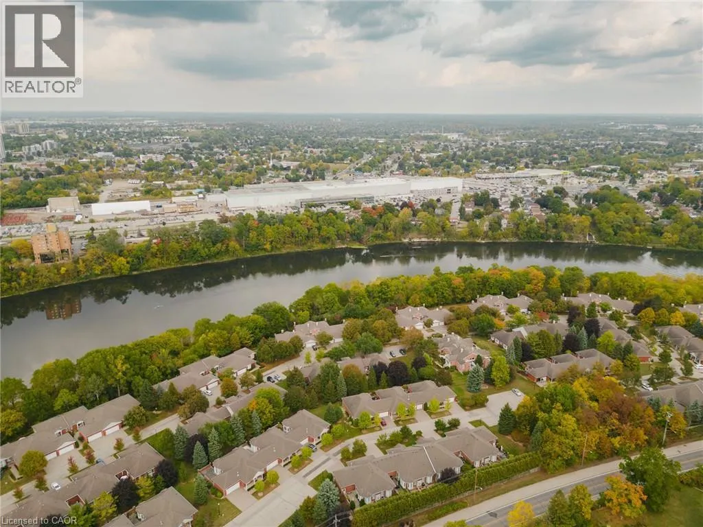 George St. N. between Parkhill and Blair Road Welcome to Riverwalk, one of Cambridge's most sought after communities tucked along the banks of the Grand River. This beautifully renovated end unit offers a rare combination of privacy, natural light, and effortless living in a setting that feels worlds away from the everyday. Inside, the main floor has been thoughtfully opened up to create a bright, flowing layout where the kitchen, living, and dining areas connect seamlessly. Large windows draw in natural light and frame peaceful views of the surrounding greenery and river beyond. The main floor primary bedroom offers the ease of single level living, complete with a luxurious 5 piece ensuite featuring a freestanding jetted tub, glass shower, and double vanity. Step directly from the bedroom onto the private deck and start your mornings overlooking the Grand River, a view that never gets old. A separate dining room at the front of the home offers flexibility for formal entertaining, a quiet home office, or a cozy reading space. Downstairs, the fully finished walkout basement adds valuable living space with a second bedroom, spacious family room, and gas fireplace that makes the entire level feel warm and inviting. Perfect for guests, extended family, or a private retreat. Riverwalk is known for its beautifully maintained grounds and welcoming community atmosphere. Residents enjoy access to a clubhouse, party room, visitor parking, and shared outdoor spaces including a community garden and arboretum. Just steps away, the Walter Bean Grand River Trail offers kilometres of scenic walking and cycling paths along the river. With major updates including a new heat pump and roof in 2025, and a location that blends peaceful nature with easy access to city amenities, this home offers a lifestyle that is both relaxed and refined. A rare opportunity for those looking to downsize without compromise or simply enjoy riverside living at its best. (id:27476)