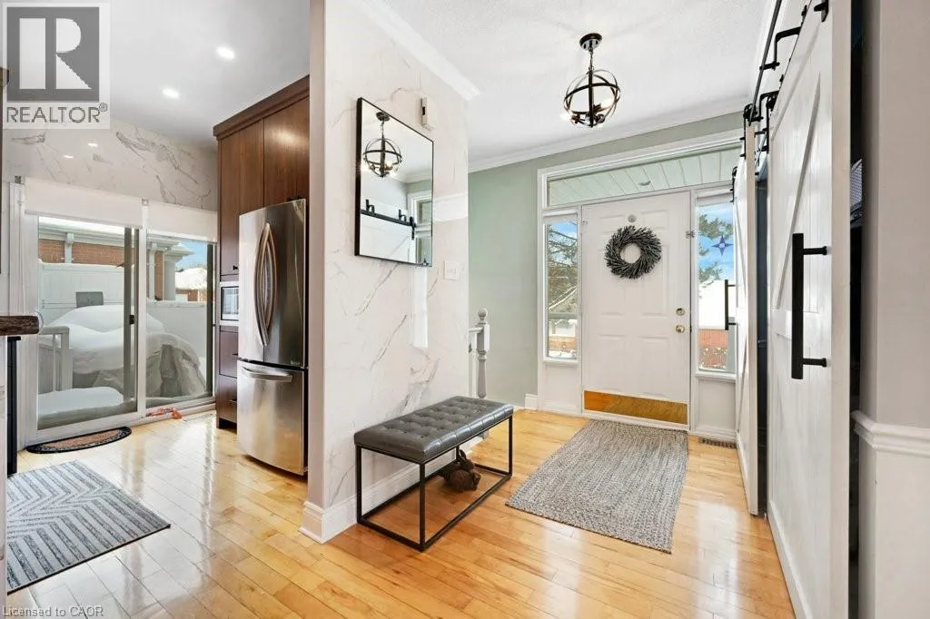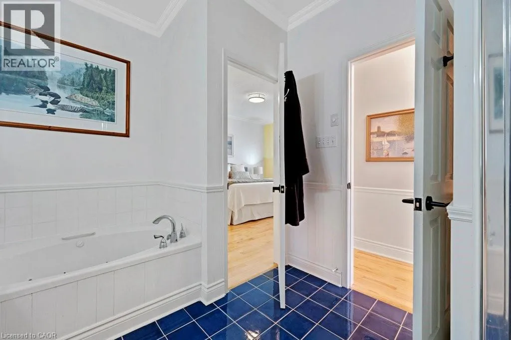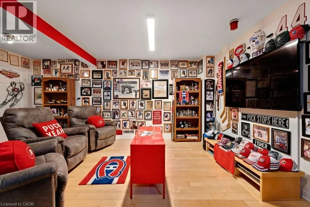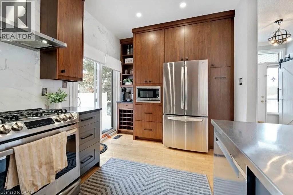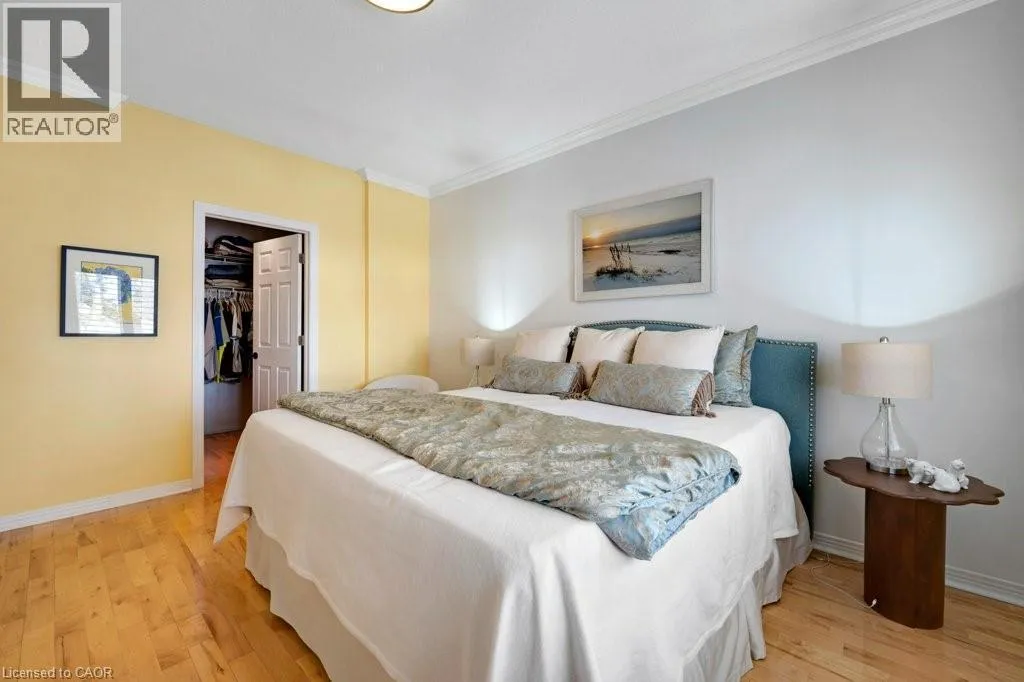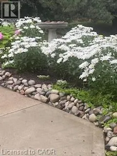 Located between Sunset Blvd & Blair Rd Experience the perfect blend of nature and modern luxury at the Riverwalk Condominiums. This stunning two-bedroom raised bungalow offers a rare lifestyle opportunity along the banks of the Grand River. The heart of the home is a chef-inspired kitchen, fully updated in 2024/2025 with rich walnut cabinetry, porcelain walls, and a striking mix of stainless steel and leathered granite countertops. Morning coffee is best enjoyed at the live-edge breakfast bar or through the sunny patio doors onto your private retreat. The open-concept living area, anchored by an electric fireplace and crown moulding, is bathed in natural light from a classic bay window. Retreat to the primary suite featuring a magnificent walk-in closet, or utilize the second bedroom, a showstopper with vaulted ceilings and a Palladian window, as a fabulous home office with its own private balcony. The lower level expands your footprint significantly, offering a massive media room, a flexible bonus room for guests or fitness, and a bright, sun-filled laundry suite with direct garage access. For larger family gatherings, residents can use the Quarry House with cozy fireplace setting, full kitchen & bathroom areas. In nicer weather there is an outdoor deck & newly installed pickleball court! Come be a part of this lovely riverside community! (id:27476)