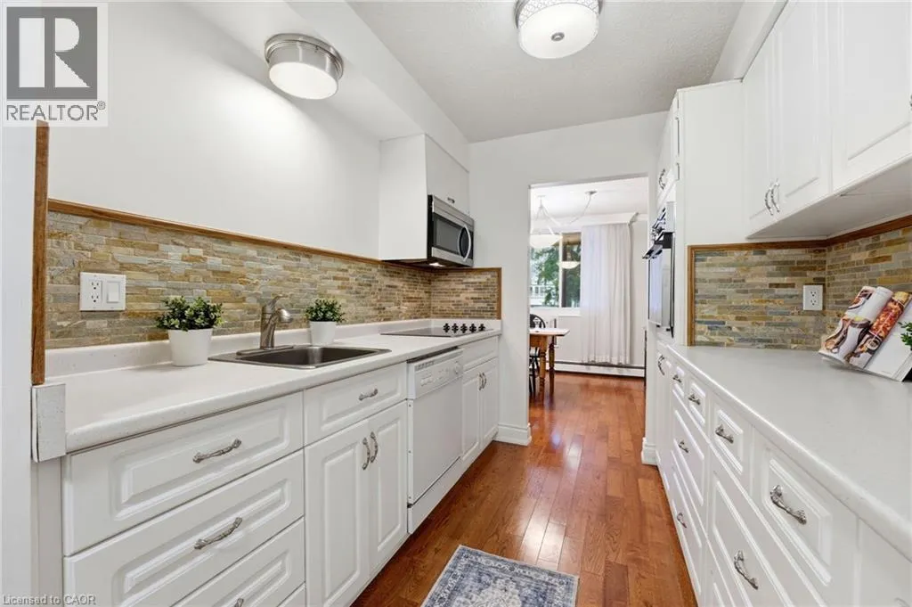 Welcome to this bright and well-maintained GROUND FLOOR 2-bedroom apartment offering comfortable living in a convenient location. The unit features a functional galley-style kitchen with crisp white cabinetry, ample counter space, and a stylish tile backsplash. Hardwood flooring flows through the living areas and bedrooms, creating a warm and inviting atmosphere. Both bedrooms are generously sized with large windows that allow for plenty of natural light. The enclosed porch provides additional living space â perfect for a cozy sitting area, home office, or sunroom to enjoy year-round. Residents will appreciate the secure building entrance and clean, welcoming lobby. This unit offers practical living with a thoughtful layout and plenty of storage. Ideally located close to amenities, transit, and green space, this apartment is perfect for first-time buyers, downsizers, or investors looking for a low-maintenance property. (id:27476)