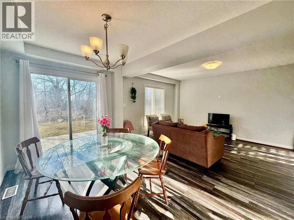 Main to Nottinghill to Sparrow AVAILABLE MAY 1ST. Located in the highly desirable East Galt neighbourhood, this modern townhome offers approximately 1,430 sq ft of thoughtfully designed living space in a family-friendly community close to schools, parks, shopping, and everyday amenities. The main level showcases a bright, open-concept layout featuring a contemporary kitchen with quartz countertops, stainless steel appliances, ample cabinetry, and a spacious breakfast bar â perfect for casual dining and entertaining. The kitchen flows seamlessly into the dining and living areas, with sliding doors leading to a private balcony. A convenient powder room completes this level. Upstairs, youâll find two generously sized bedrooms, including a primary suite with a 3-piece ensuite, along with an additional 4-piece bathroom. An excellent opportunity to own a stylish, low-maintenance home in one of East Galtâs most sought-after communities. Some photos are virtually staged (id:27476)
