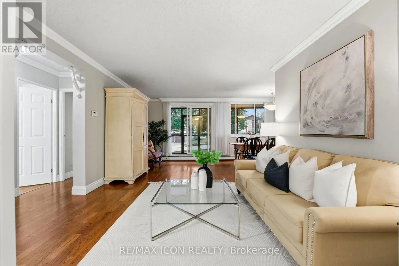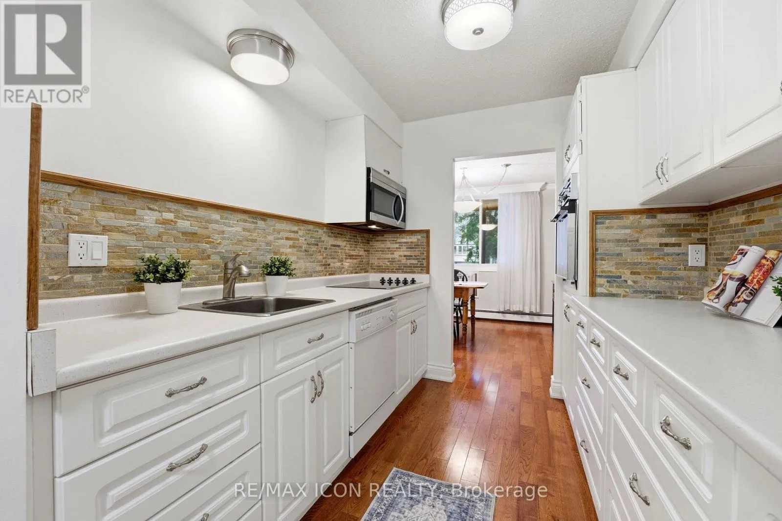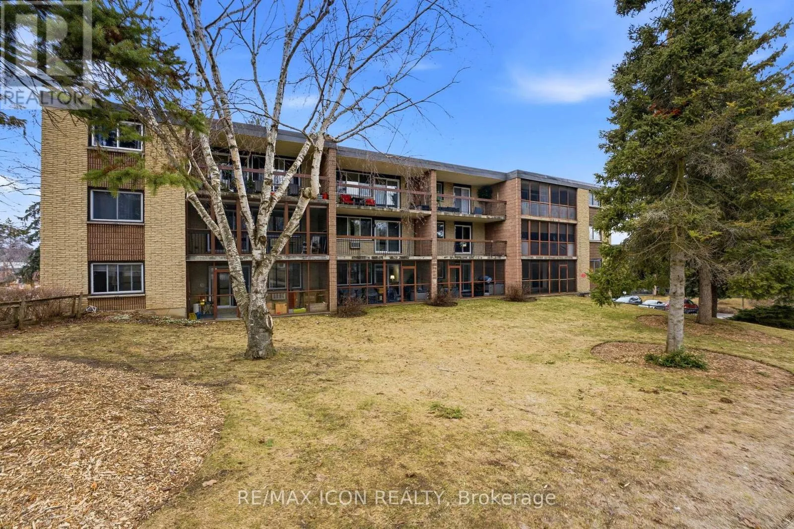 Cross Streets: SHETTLESTON DR. ** Directions: From Eagle St N turn onto Shettleston Dr, then left onto Caledonian View. Welcome to this bright and well-maintained GROUND FLOOR 2-bedroom apartment offering comfortable living in a convenient location. The unit features a functional galley-style kitchen with crisp white cabinetry, ample counter space, and a stylish tile backsplash. Hardwood flooring flows through the living areas and bedrooms, creating a warm and inviting atmosphere. Both bedrooms are generously sized with large windows that allow for plenty of natural light. The enclosed porch provides additional living space - perfect for a cozy sitting area, home office, or sunroom to enjoy year-round. Residents will appreciate the secure building entrance and clean, welcoming lobby. This unit offers practical living with a thoughtful layout and plenty of storage. Ideally located close to amenities, transit, and green space, this apartment is perfect for first-time buyers, downsizers, or investors looking for a low-maintenance property. (id:27476)