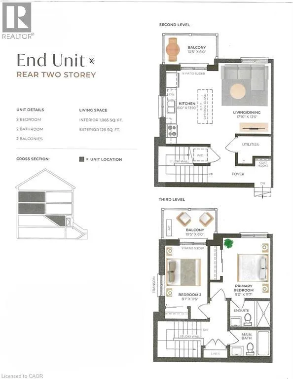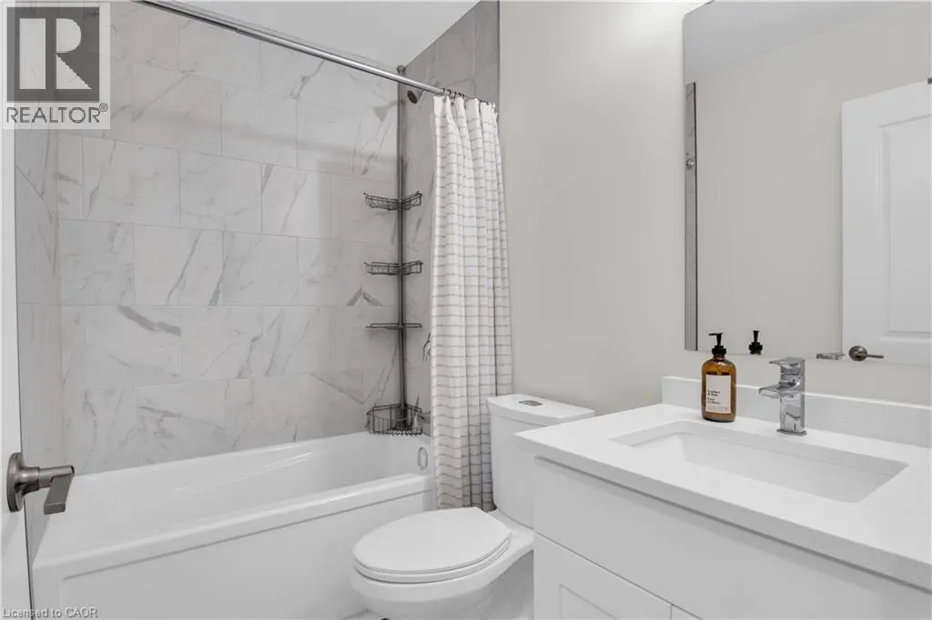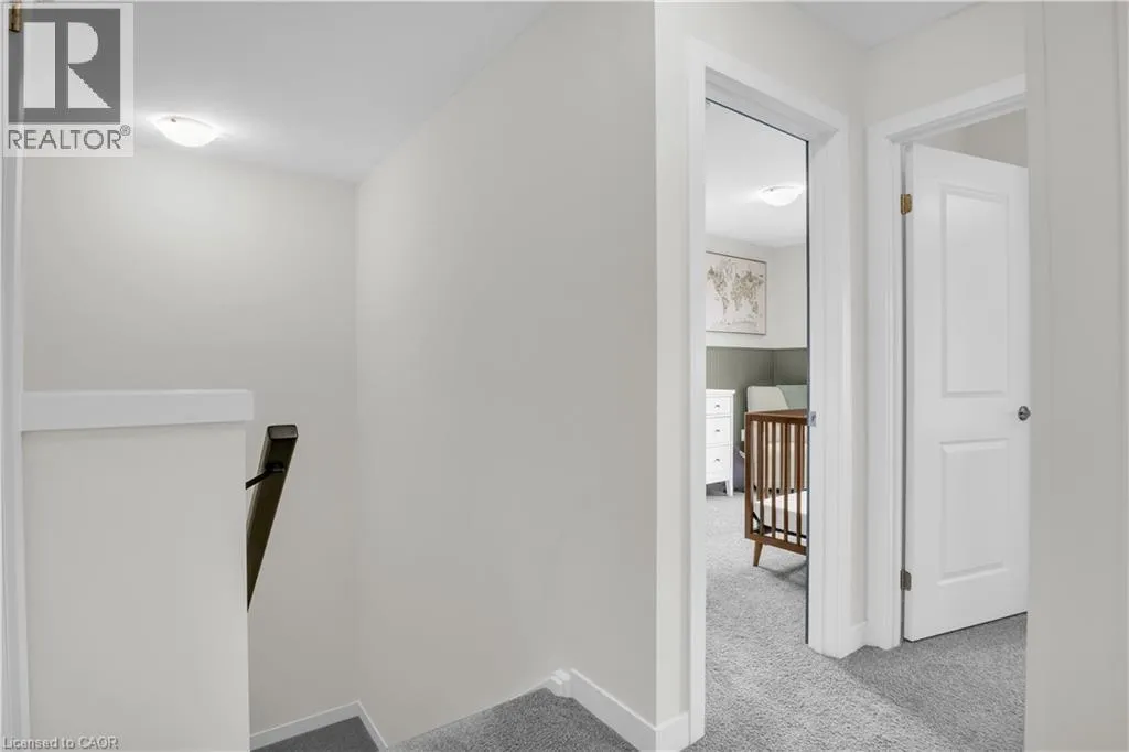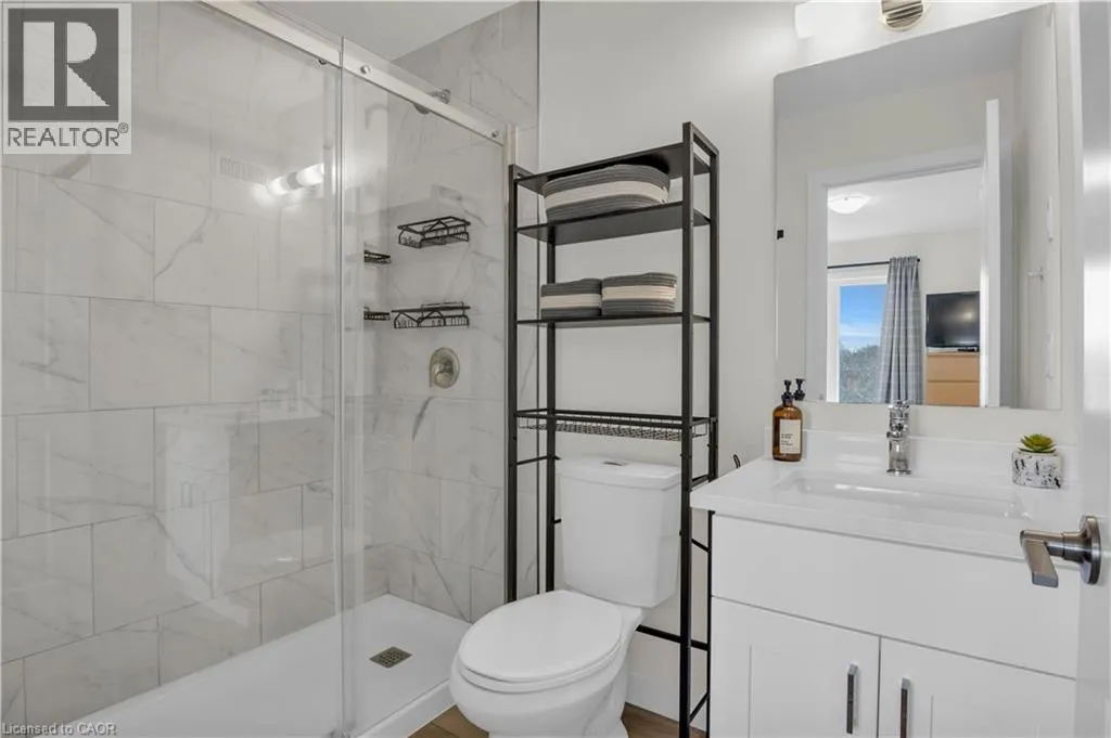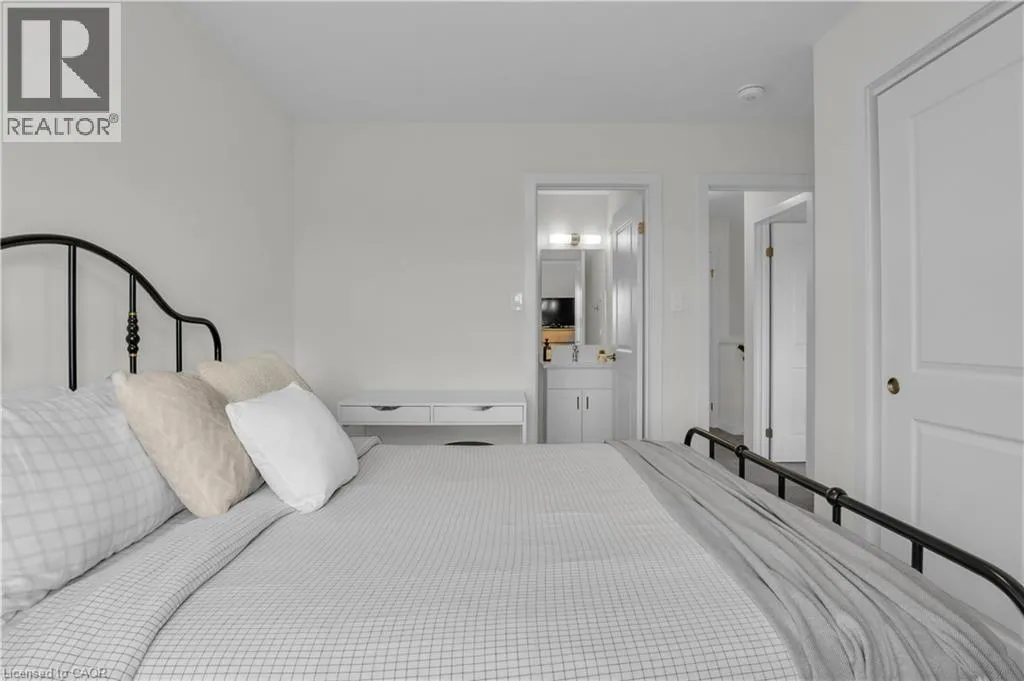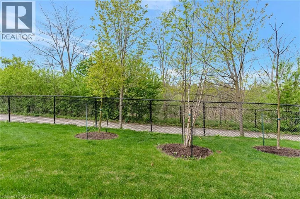 FRANKLIN BLVD TO MYERS RD Welcome to 56-405 Myers Road in Cambridge! This bright and beautifully designed main floor end-unit stacked townhouse offers two bedrooms, two balconies, and a seamless blend of modern finishes and natural surroundings. As an end unit, the additional windows bring in an abundance of natural light, creating a warm and inviting atmosphere throughout. Backing onto peaceful trails and greenspace, this home offers a rare sense of privacy and a connection to nature, with both balconies facing the greenery. One balcony is conveniently located off the kitchenâperfect for morning coffee or evening unwindingâwhile the second is accessed from the bedroom, offering another quiet outdoor retreat. The open-concept layout is both functional and stylish, effortlessly connecting the living, dining, and kitchen areas. The kitchen is a standout feature, complete with stainless steel appliances, quartz countertops, ample cabinetry, and a large island with pendant lightingâideal for gathering, cooking, or casual dining. Quartz surfaces continue into the bathrooms, adding a polished and cohesive feel throughout the home. Both bedrooms are well-sized and thoughtfully laid out, with the primary suite featuring its own ensuite with a glass shower. Ensuite laundry and a dedicated parking space add to the everyday convenience. Set in a well-connected neighbourhood close to schools, parks, shopping, and recreational amenities, this home offers a comfortable and vibrant lifestyle with nature right at your doorstep. (id:27476)