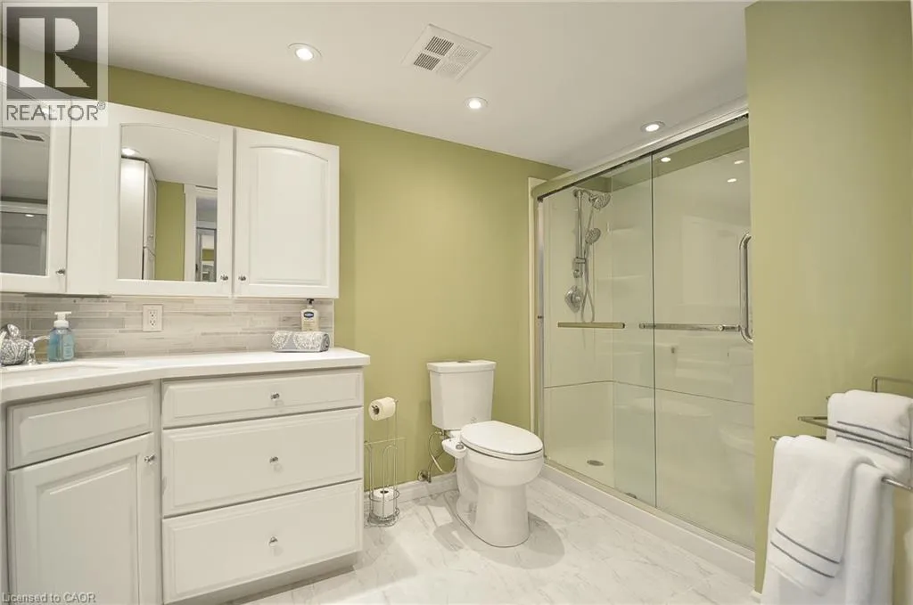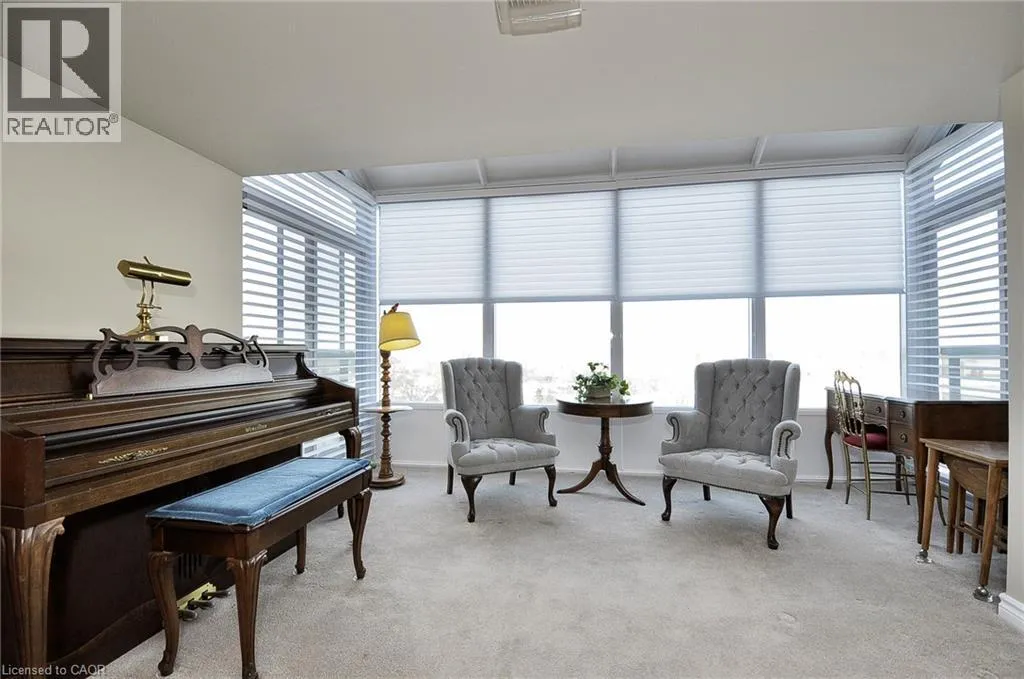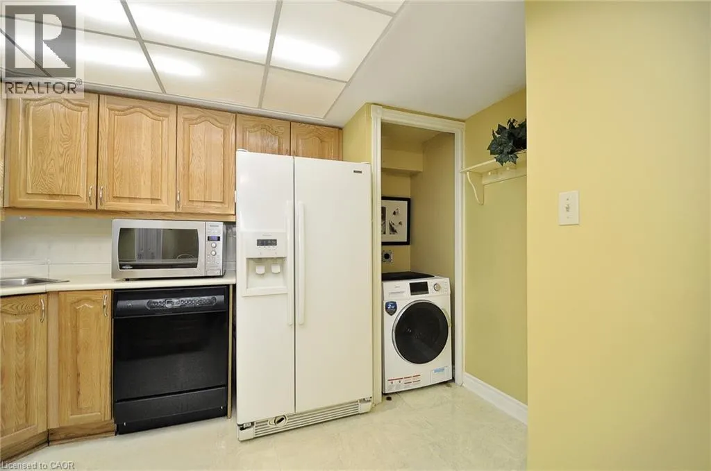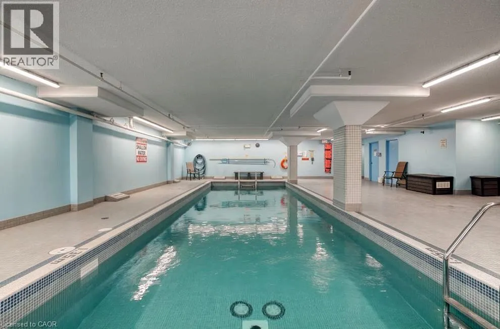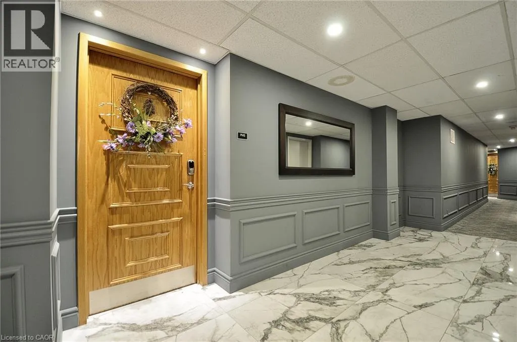 From the 401. Shantz Hill Road, make a left at the light at the bottom of the hill. Move into the right hand lane, turn right onto King at the first light. Immediatley get into the left hand lane. The driveway is immediately after you turn onto King. PENTHOUSE! Located at the KRESSVIEW SPRINGS! Suite 1305 is located at 237 King Street W, Cambridge (Preston North). Steps to Riverside Park and minutes to the 401 and hwy 7/8. This 1348 square foot suite has TWO underground parking spaces The master bedroom suite can accomodate a king size bed, has large closets for plenty of storage and fully renovated ensuite bathroom The second bedroom could be a tv room or office and is located at the opposite end of the suite from the master bedroom with a four piece bathroom right outside the door so visitors can have their own private space The dining room is a room of its own with French doors and can seat eight+ guests. Very generous sized eat in kitchen with room for everthing. Pantry, fridge, stove, built in dishwasher, washer/dryer combination and upright freezer are included in the sale. All in as is condition but in good working order. The living room is cozy and at the same time large enough to entertain the whole family. Electric fireplace for those cooler nights and a solarium area to sit in the sun. Newer high end remote control blinds. A locker (door labelled L1 16 U9) and 2 GARAGE SPACES #21 & #24 are located on level P1. The locker is large enough to hold all of your Christmas items, patio furniture and more. The building is complete with a workshop, games room, indoor heated pool, hot tub, exercise room, sauna with change rooms for ladies and men, lockers with direct access to the pool. There is a walkout to a deck if you care to sit outside after a swim or hot tub. Want to host a large dinner or shower? There a party room with kitchen including appliances, dishes, washrooms, coat closet and separate entrance for guests. In the nicer weather there are bbq's on the main terrace with picnic tables to enjoy the outdoors. The many upgrades to the building recently include: windows, patio doors, (4 in this suite), hallways, facade, parking garage and lobby. All special assessments have been paid by the Seller. (id:27476)