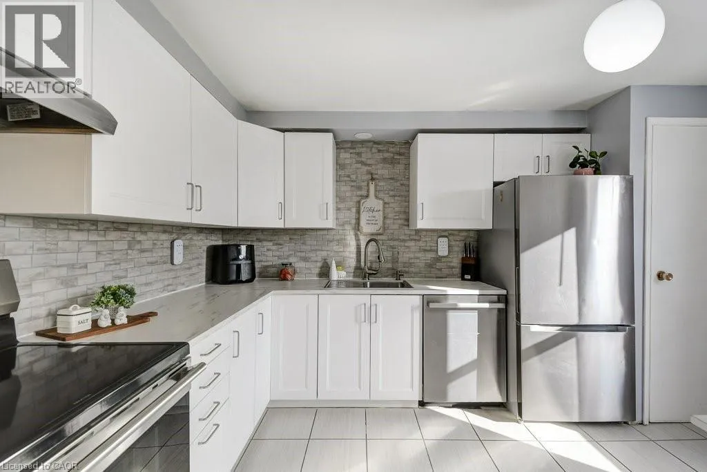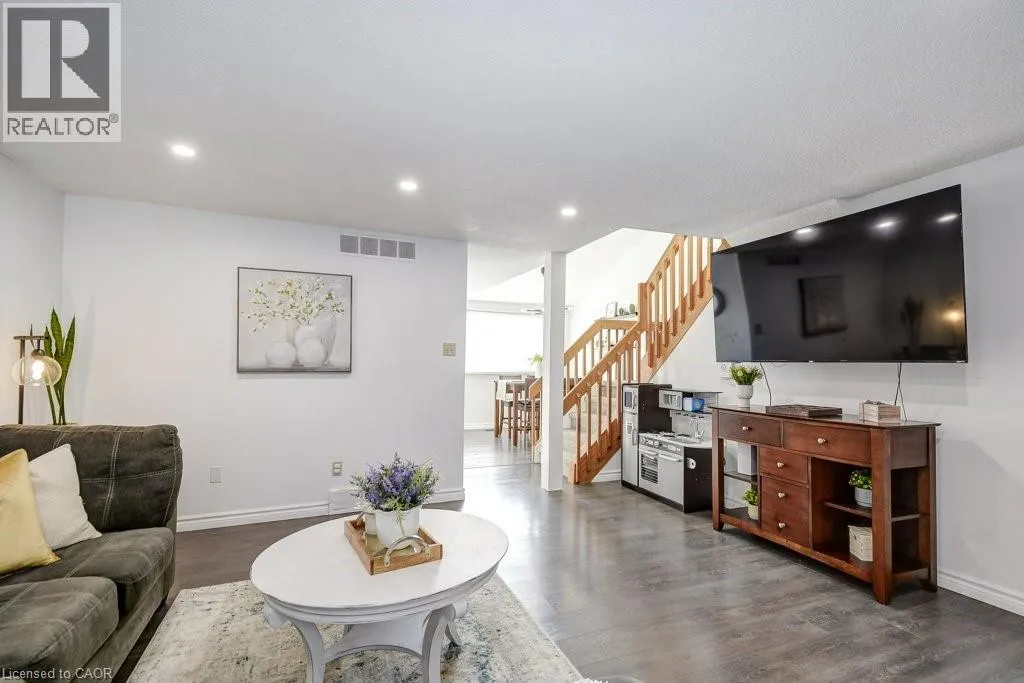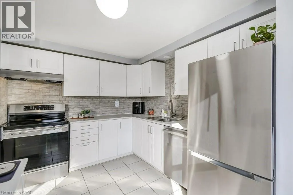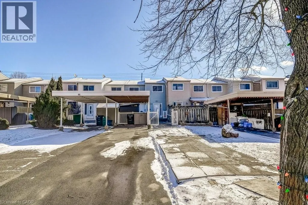 Northview Heights Drive to Frobisher Court Opportunity is knocking with no condo fees! This bright and inviting freehold townhome offers a spacious layout and vibrant interior - perfect for entertaining family and friends. You'll love the easy flow of the main level which comes complete with a generous living room as well as a dining area with a vaulted ceiling and stylish light fixture. The fully remodeled kitchen with crisp white cabinetry, additional pantry and stainless steel appliances make it both stylish and functional. Upstairs, youâll find three good-sized bedrooms and an updated 4-piece bathroom. This home has been freshly painted throughout and features brand new vinyl flooring and plush carpeting on the stairs. A large unfinished walk-out basement offers an ideal blank canvas for future living space and includes a rough-in for a second bathroom. Step outside to a large partially fenced backyard perfect for kids to play or simply just relaxing in the sun. Two new sheds provide outside storage space. A beautifully stamped concrete front patio and a freshly paved driveway (2022) with carport accommodates up to three vehicles. Enjoy peace of mind with several recent upgrades, including a newer furnace, humidifier, and smart thermostat (2021), all with transferable warranties. Additionally, the home comes equipped with a Ring security system which will be staying with the house. Ideally located in a family friendly neighbourhood close to parks, shopping, schools, and is just minutes from Highway 401. This property is a fantastic opportunity you wonât want to miss. Book your showing today! (id:27476)