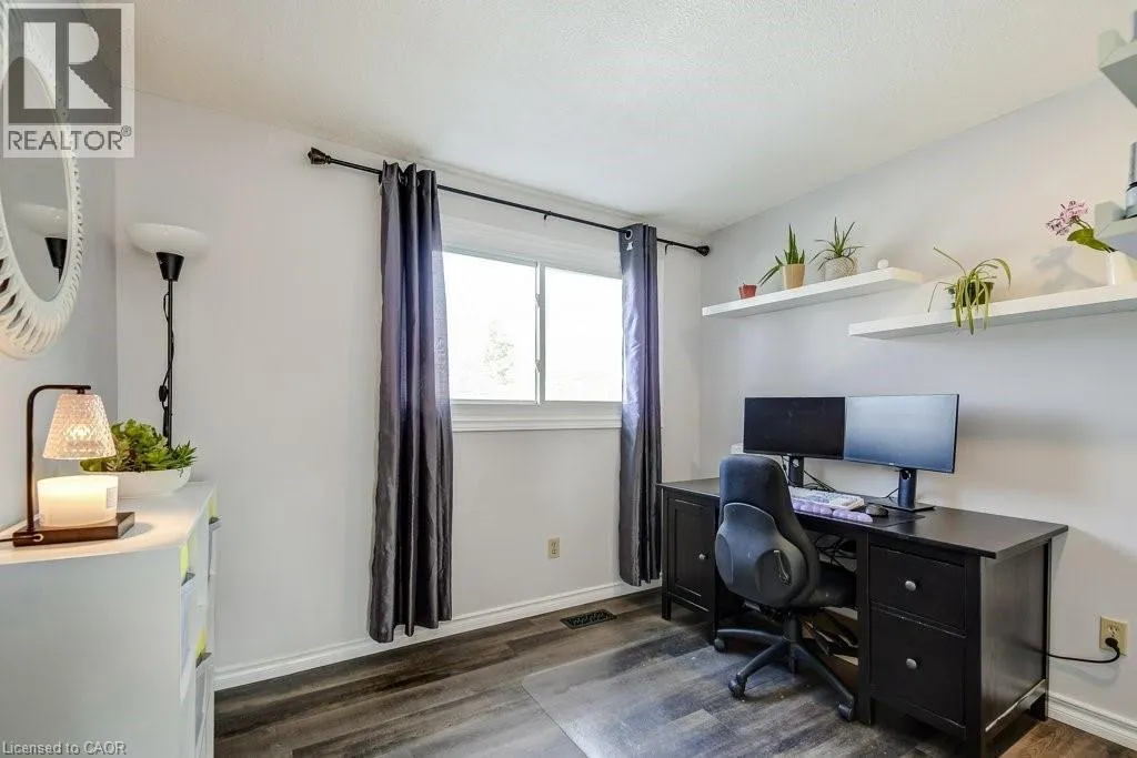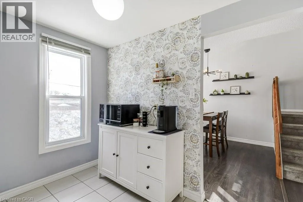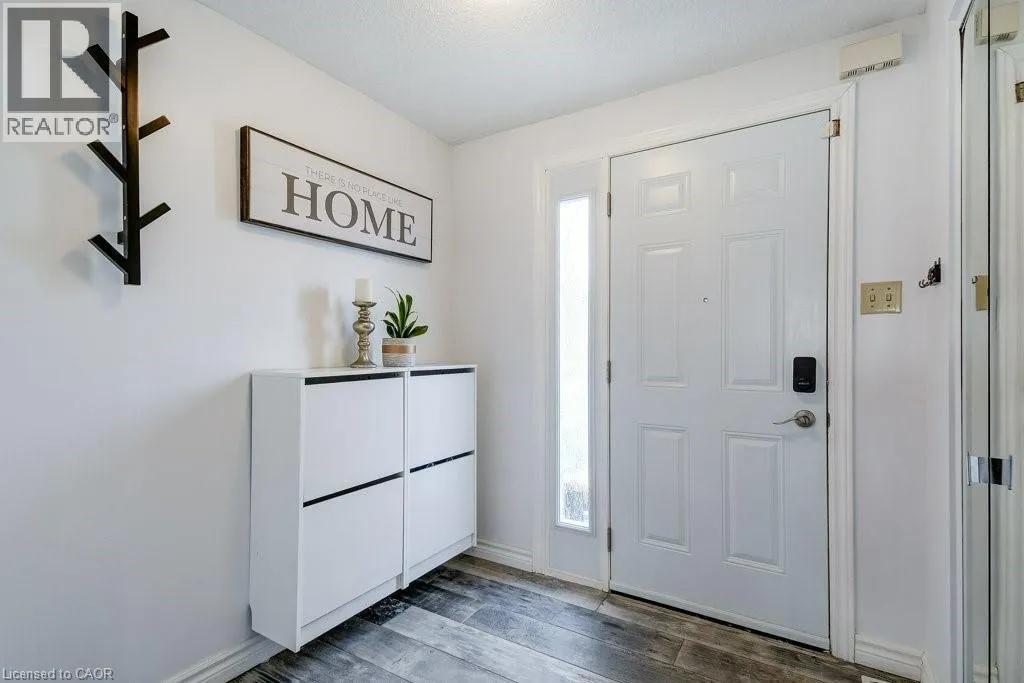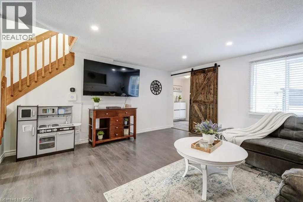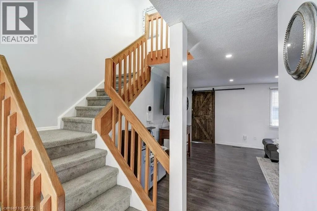 Northview Heights Drive to Frobisher Court Opportunity is knocking with no condo fees! This bright and inviting freehold townhome offers a spacious layout and vibrant interior - perfect for entertaining family and friends. You'll love the easy flow of the main level which comes complete with a generous living room as well as a dining area with a vaulted ceiling and stylish light fixture. The fully remodeled kitchen with crisp white cabinetry, additional pantry and stainless steel appliances make it both stylish and functional. Upstairs, youâll find three good-sized bedrooms and an updated 4-piece bathroom. This home has been freshly painted throughout and features brand new vinyl flooring and plush carpeting on the stairs. A large unfinished walk-out basement offers an ideal blank canvas for future living space and includes a rough-in for a second bathroom. Step outside to a large partially fenced backyard perfect for kids to play or simply just relaxing in the sun. Two new sheds provide outside storage space. A beautifully stamped concrete front patio and a freshly paved driveway (2022) with carport accommodates up to three vehicles. Enjoy peace of mind with several recent upgrades, including a newer furnace, humidifier, and smart thermostat (2021), all with transferable warranties. Additionally, the home comes equipped with a Ring security system which will be staying with the house. Ideally located in a family friendly neighbourhood close to parks, shopping, schools, and is just minutes from Highway 401. This property is a fantastic opportunity you wonât want to miss. Book your showing today! (id:27476)