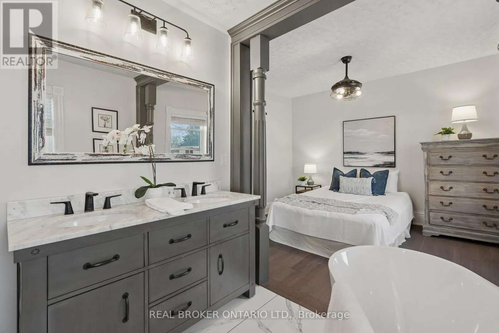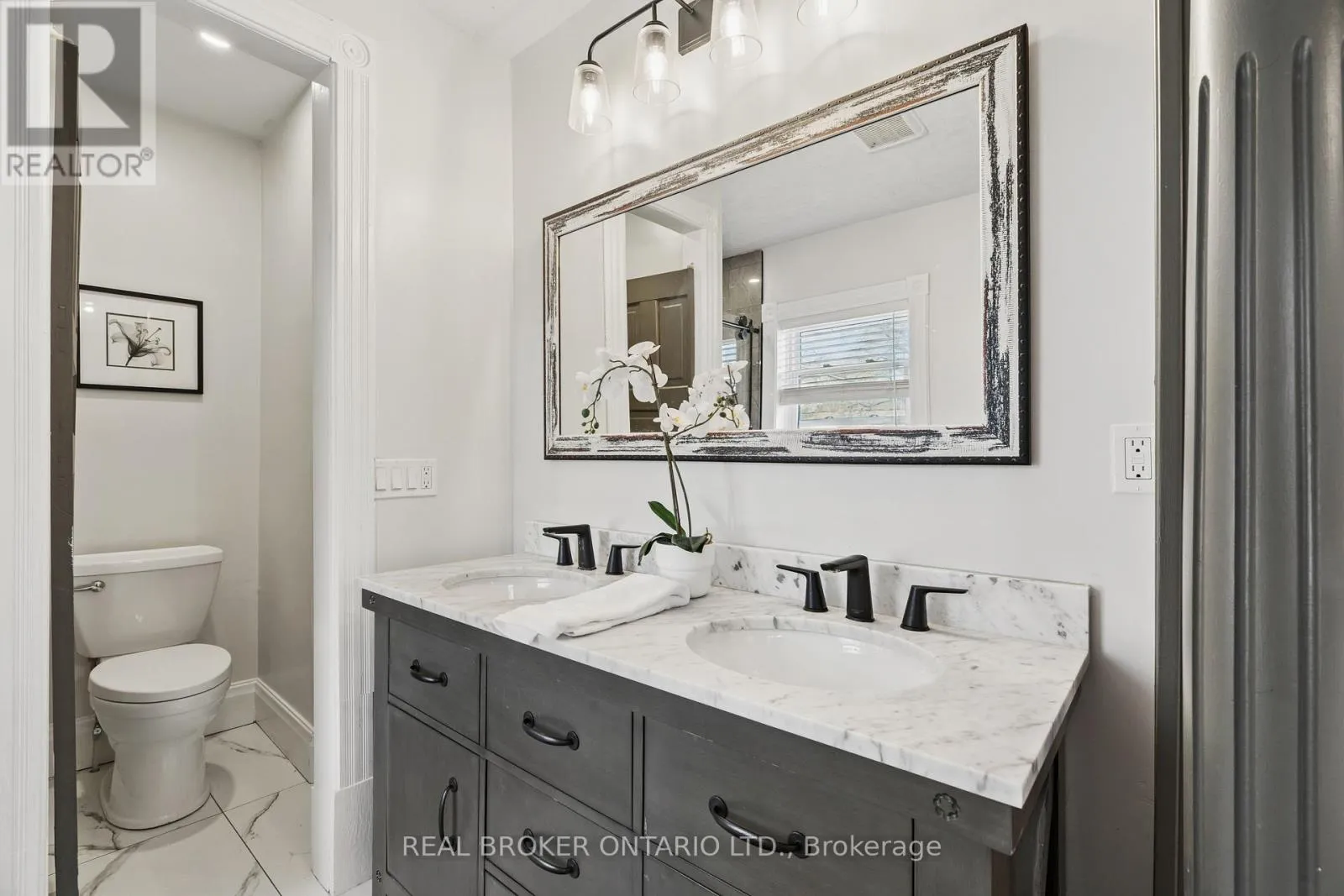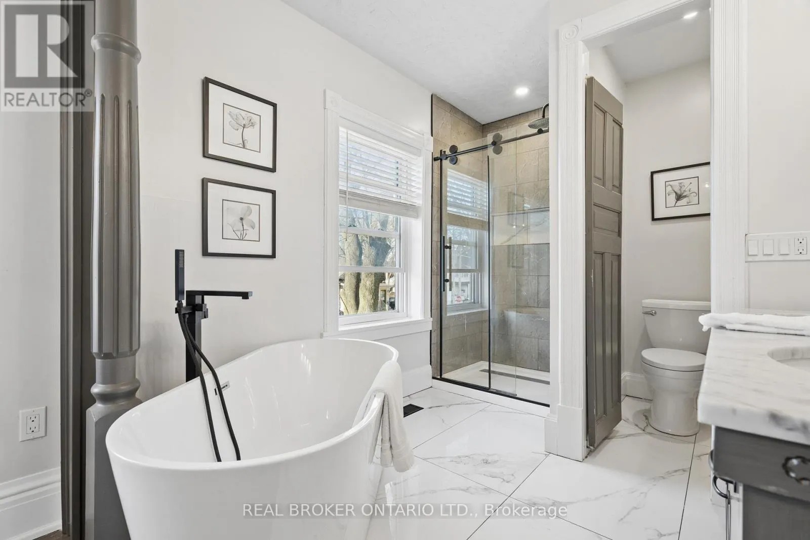 Cross Streets: King St E & Lowther St S. ** Directions: King St E to Lowther St S to Hamilton St. Welcome to 855 Hamilton Street in Cambridge's historic Preston neighbourhood, where timeless character meets modern family living. This beautifully updated 1,300 sq ft detached century home sits on a generous 55 x 110 ft lot, offering the perfect balance of charm, comfort, and space for everyday living and entertaining. The main floor features engineered hardwood flooring, pot lights, and a warm, inviting living room centered around a cozy wood-burning fireplace. The renovated open-concept kitchen is the heart of the home, showcasing a massive quartz island with built-in gas range and statement hood vent, stainless steel appliances, pendant lighting, and plenty of space for family gatherings. The dining area flows seamlessly from the kitchen, creating an ideal layout for hosting and everyday meals. A 2-piece bathroom and walkout to the backyard complete the main level. Upstairs you'll find three bedrooms with engineered hardwood throughout. The spacious primary suite features a walk-in closet and an open-concept 5-piece ensuite, while the additional bedrooms share a 5-piece semi-ensuite, providing convenience for family living. The backyard is designed for relaxing and entertaining, featuring a covered patio with electricity, hot tub, and built-in stone fireplace, creating the perfect setting for evenings with family and friends. A rare highlight is the detached three-car garage, currently set up with one bay as a games room or gym, along with parking for three vehicles in the driveway. Major updates completed between 2018-2019 include new wiring, plumbing, kitchen, bathrooms, and flooring, providing modern comfort while maintaining the charm of this beautiful century home. Located close to parks, schools, and amenities in the desirable Preston community, this home offers a fantastic opportunity for families looking for character, space, and thoughtful updates. (id:27476)