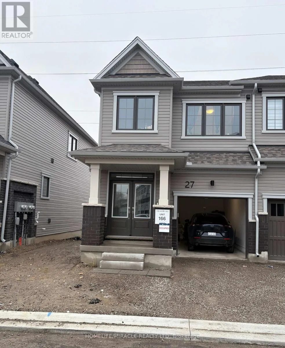 Dundas St. and Vanier Dr. Welcome to 27 Radium Common-a gorgeous end-unit townhome (like a semi) in Treasure Hill'snewest Cambridge community. This 3-bed, 3-bath home offers bright open-concept living, a modernkitchen with balcony walkout, and direct garage access. Upstairs features a primary suite withensuite and walk-in closet, two additional bedrooms, a flex space, and upper-level laundry. Theunfinished basement provides large windows and great storage or workout potential. Excellentlocation near schools, parks, shopping, restaurants, and major highways-perfect blend of style,comfort, and convenience! Free high speed Internet until August 2026. (id:27476)