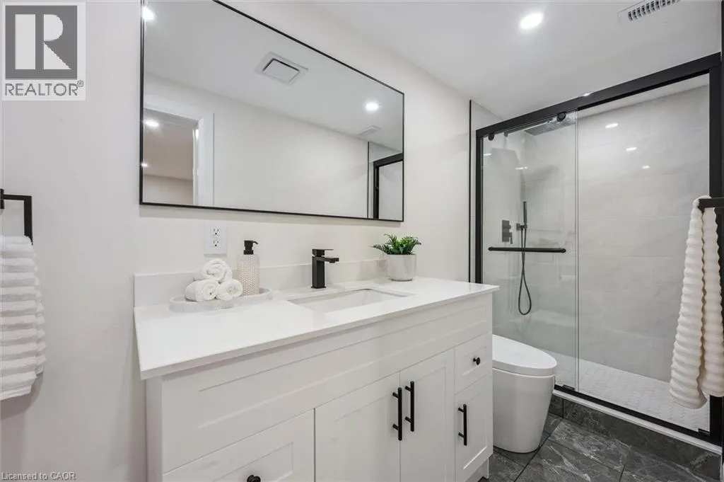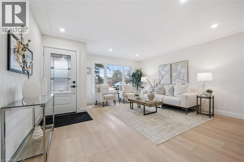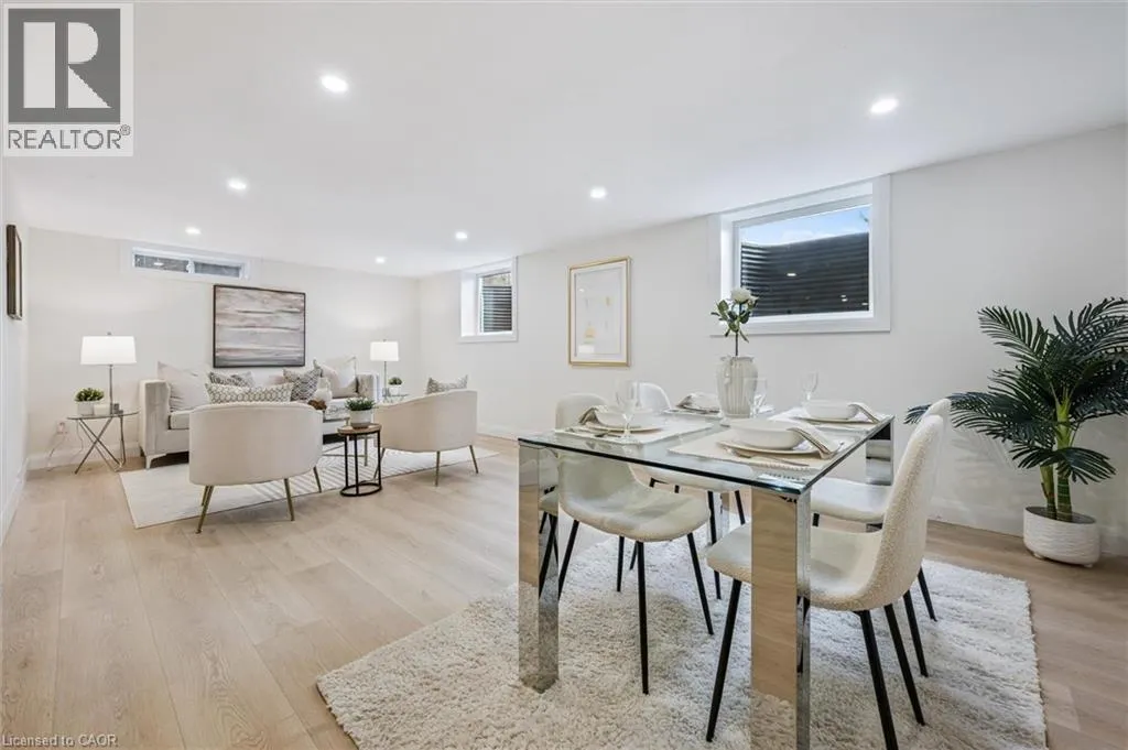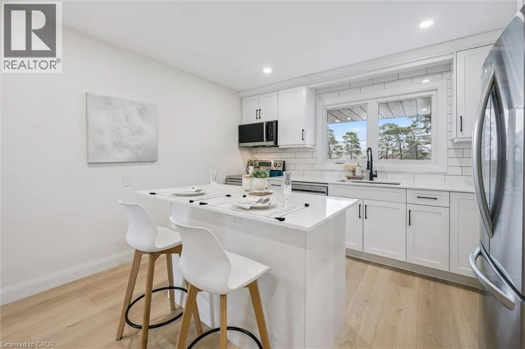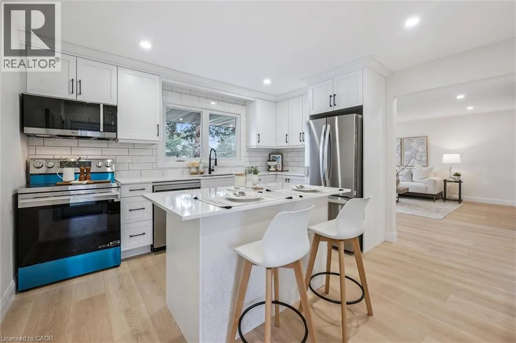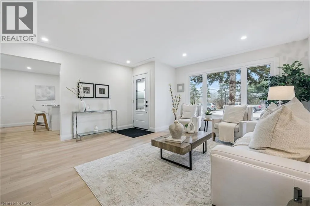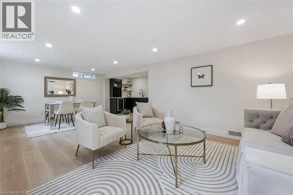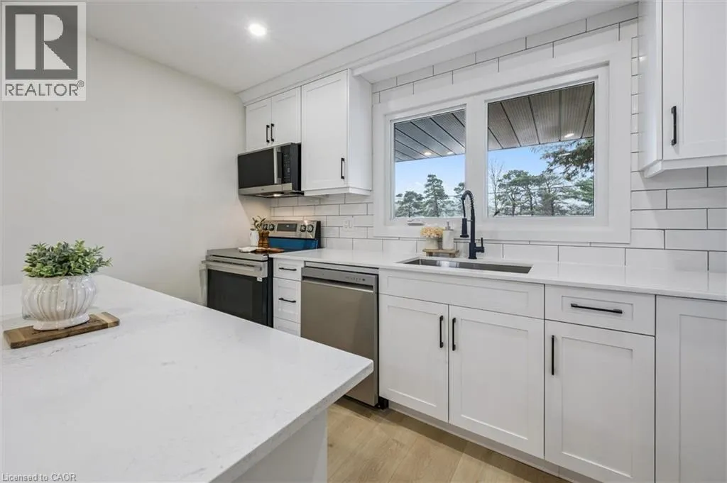 HWY 24 to Dunbar Rd **STYLISH. RENOVATED. READY TO IMPRESS.** Welcome to 881 Dunbar Road, Cambridge â a beautifully updated bungalow offering thoughtfully designed living space with modern finishes and exceptional functionality. The main floor features three spacious bedrooms, a bright and inviting family room, and a contemporary kitchen enhanced by **brand-new appliances throughout the home**, delivering both style and everyday convenience. Quality craftsmanship is evident in every detail, from luxury vinyl plank flooring and upgraded stone features to custom millwork that elevate the overall aesthetic. The fully finished basement provides outstanding versatility with a one-bedroom layout, full bathroom, expansive recreation room, and wet bar â ideal for extended family, guests, or additional living and entertaining space. Large basement windows allow for abundant natural light, creating a warm and welcoming lower level. Step outside to discover a **large, untouched backyard offering endless possibilities for outdoor living, future landscaping, entertaining, or expansion.** Perfectly positioned **directly across from a conservation area**, this home combines privacy and natural surroundings with the convenience of city living. Situated in a desirable, established neighbourhood close to schools, parks, shopping, and major commuter routes, this move-in-ready property delivers exceptional comfort, modern design, and long-term value â a rare opportunity for families, investors, or anyone seeking a turnkey home in a prime Cambridge location. (id:27476)