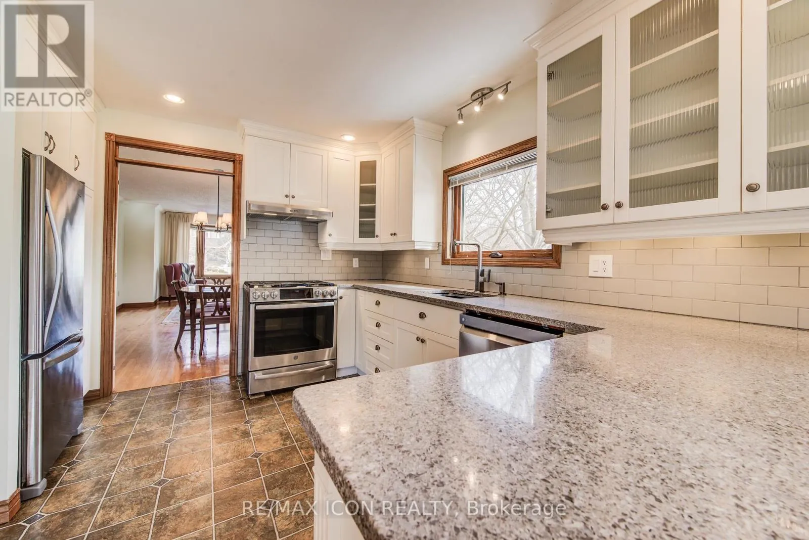 Cross Streets: Cooper St. ** Directions: Cooper St to Winston Blvd. Welcome to 458 Winston Blvd. This Executive-style Hespeler bungalow offers over 3,000 sq ft of finished living space, set on a large private lot and featuring a double car garage. From the moment you enter, you're welcomed by wide hallways finished with engineered hardwood, creating an immediate sense of space and quality. The main floor features a spacious separate living room and a dedicated formal dining room, along with 3 generously sized bedrooms and 2 full bathrooms, including a generous primary suite with its own ensuite. Bright, oversized rooms and large windows throughout provide an abundance of natural light. The fully renovated kitchen showcases custom cabinetry and stainless steel appliances, quartz countertop and includes a bright kitchen dinette with views of the rear yard. The kitchen opens into a welcoming living room with a cozy gas fireplace and large bay windows-perfect for everyday living and entertaining. The finished basement adds exceptional versatility with a dedicated office space, a full spa-style bathroom with sauna, and plenty of additional living area. Step outside to enjoy the expansive yard complete with a deck featuring a durable vinyl surface, a separate shed, and ample space for a workshop. Triple-pane, top-of-the-line windows throughout the home add comfort and efficiency. Additional features include a secondary electrical panel and central vacuum, Windows 2014, 35 year shingled roof 2005, Furnace and A/C 2014. A rare opportunity to own a spacious, well-appointed bungalow with premium features inside and out. (id:27476)