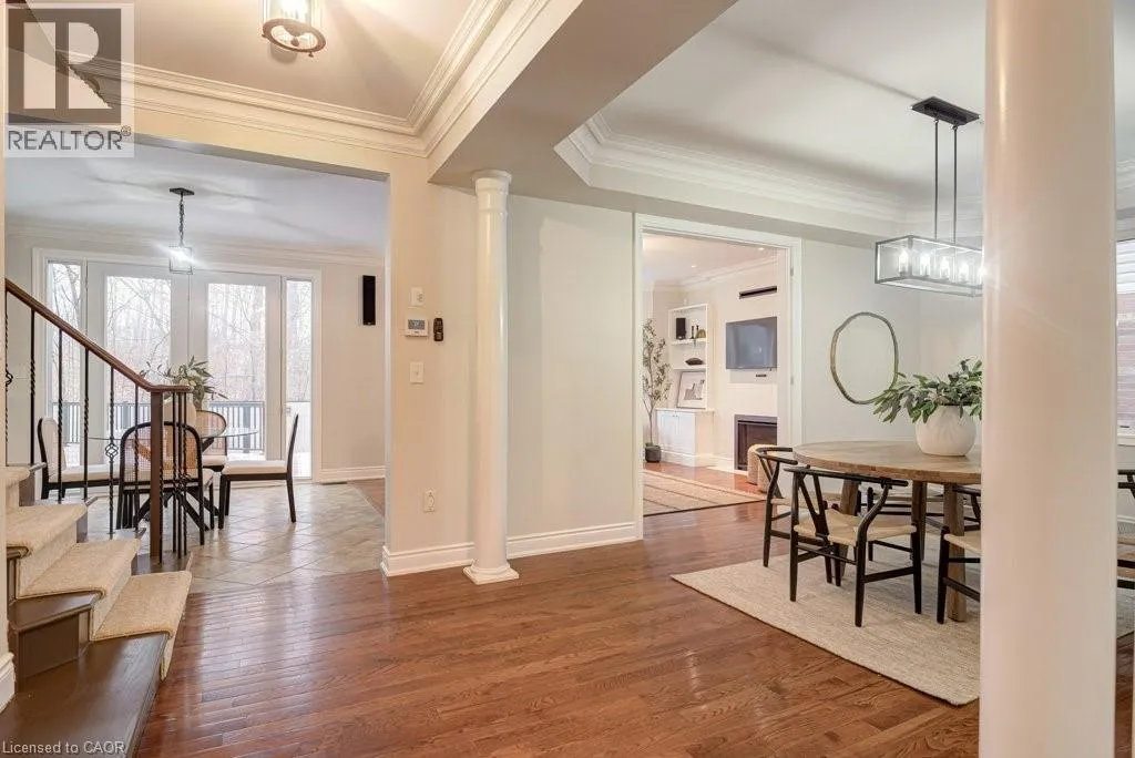 Welcome to 111 Glazebrook Crescent in Cambridge. Backing onto peaceful greenspace, this spacious detached two-storey home offers over 4,400 sq ft of finished living space with high ceilings and beautiful architectural details throughout. Featuring a double car garage, four generous bedrooms, three full bathrooms, and a main floor powder room, the layout is both functional and inviting. A bright front sitting room welcomes you in and flows into a formal dining area, while the main floor family room provides a warm, relaxed space to gather. The kitchen connects seamlessly to the living areas with views of the backyard and surrounding greenery, creating a natural extension of the home. Upstairs, the primary suite is a true retreat with oversized windows, two walk-in closets, and a spacious ensuite complete with a soaker tub and walk-in shower. The fully finished basement adds even more versatility, featuring a dedicated theatre room and additional space for recreation, fitness, or guests. Set on a premium lot backing onto greenspace, this home offers privacy, space, and a setting thatâs hard to find while still being close to everything Cambridge has to offer. (id:27476)