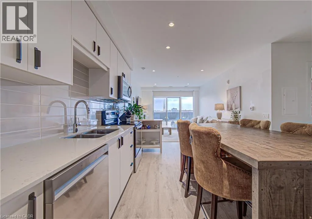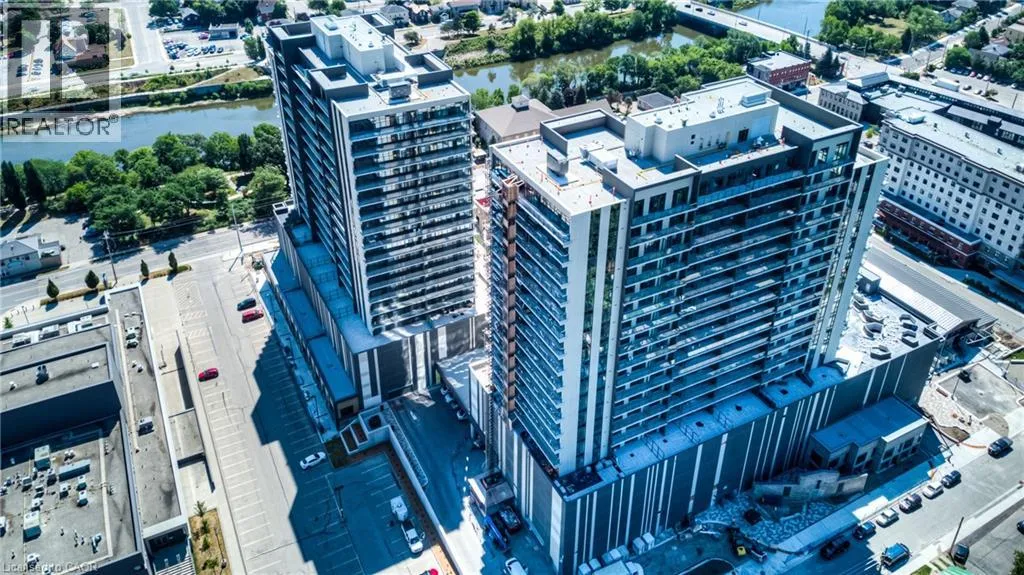 Grand Ave S and St Andrews St. Rare 2-bedroom, 2-bathroom condo at Gaslight with 2 parking spaces, a storage locker, and a large private terrace with beautiful city and Grand River views. The open-concept layout connects the living, dining, and kitchen areas, creating a bright, functional space that works well for both everyday living and entertaining. Residents enjoy access to excellent building amenities in both towers, including an exercise room, yoga room, two hosting spaces, study room, bike storage, games room, and two outdoor BBQ and patio areas. Located in the heart of the Gaslight District, youâre steps from entertainment, restaurants, a brewery, trails, parks, and the downtown core which offer many amenities all within walking distance. A great opportunity to enjoy comfortable urban living in one of Cambridgeâs most sought-after buildings. (id:27476)
