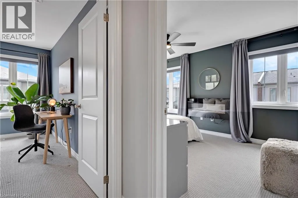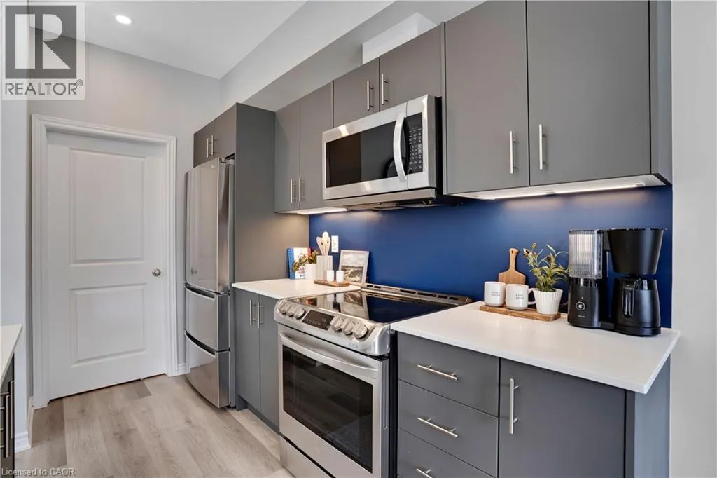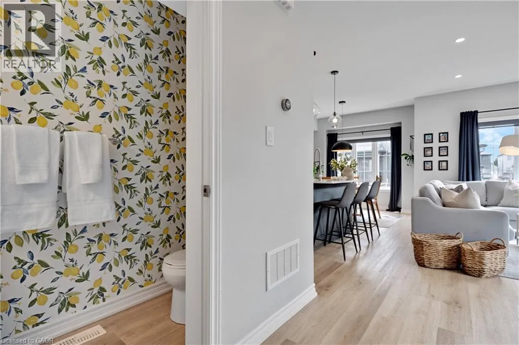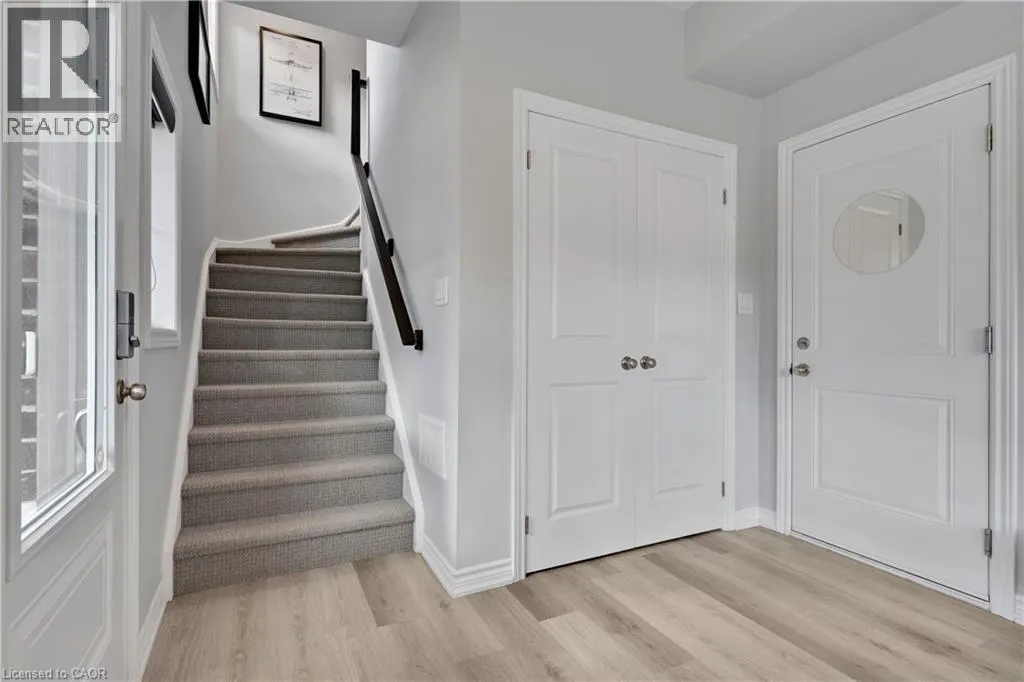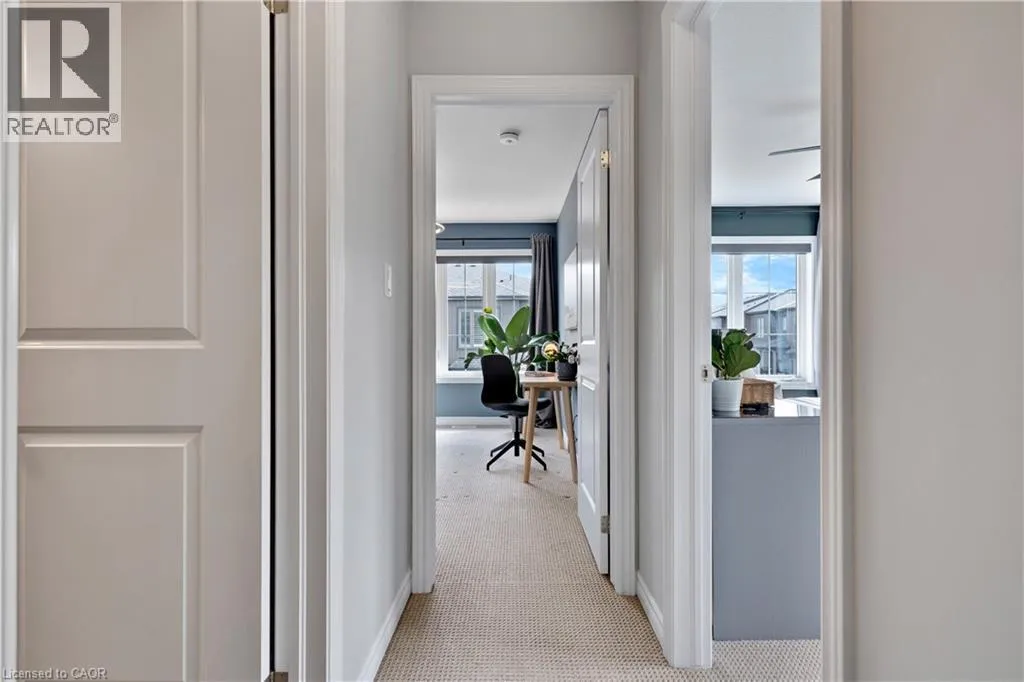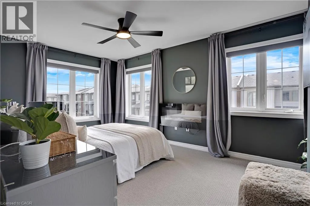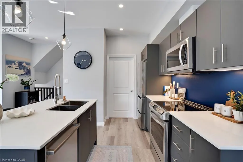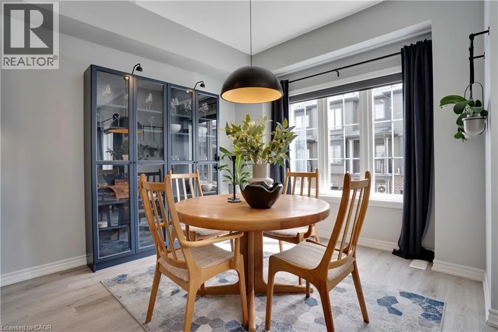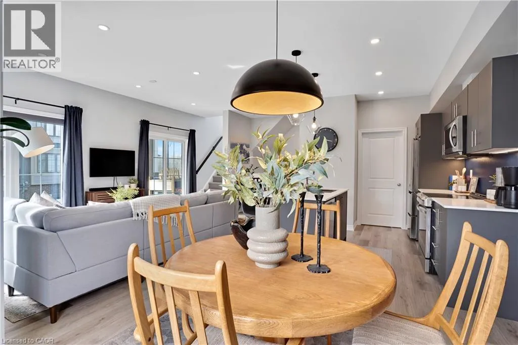 Maple Grove Rd to Compass Trail Welcome to this well-kept end-unit, three-level townhouse offering a bright, practical layout and plenty of natural light throughout. As you walk in, youâll find a flexible bonus space on the bottom level that can easily be used as a second living area, home office, or mudroom, with convenient access to the garage. The second floor is where youâll spend most of your time, with an open-concept layout that feels both comfortable and inviting. The kitchen features quartz countertops, a large island, and a walk-in pantry, with plenty of room for cooking and gathering. The dining area flows naturally into the living room, where oversized windows bring in lots of light and create a warm, easy going atmosphere. Youâll also find a powder room and in-suite laundry on this level for added convenience. Upstairs, the third level includes a spacious primary bedroom along with a second generously sized bedroom, making it a great setup for a small family, professionals, or anyone needing a bit of extra space. The large windows continue throughout, giving the home a bright and airy feel from top to bottom. Being an end unit, youâll enjoy additional privacy and extra windows that really make a difference in how the space feels. Located just steps from public transit and only minutes to Highway 401, Kitchener, Waterloo, parks, shopping, and everyday amenities, this is a great opportunity to own a comfortable, well-located home in a growing community. (id:27476)