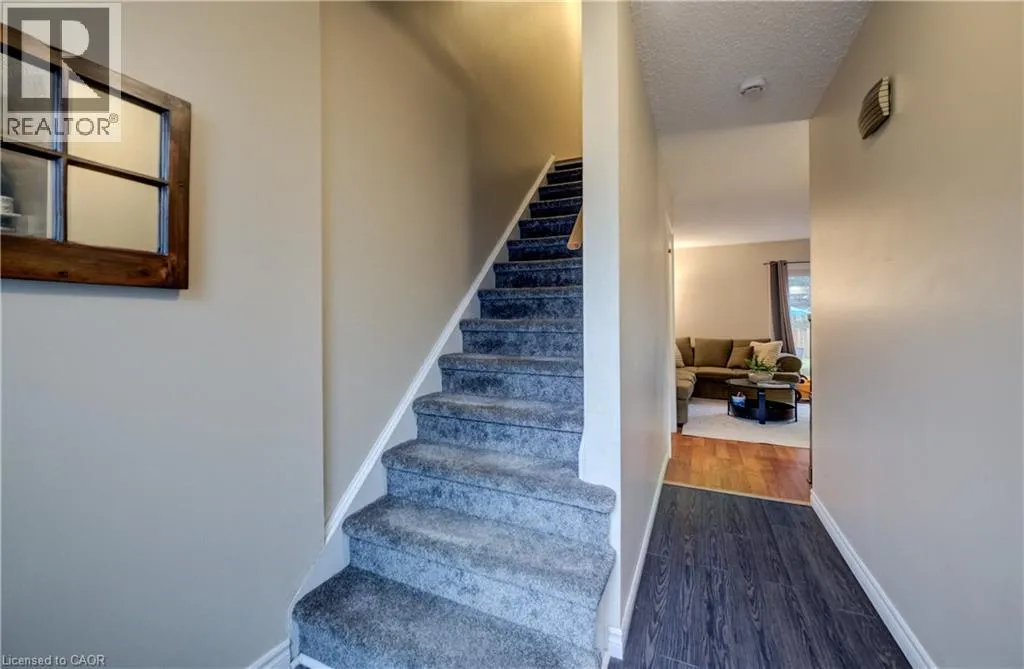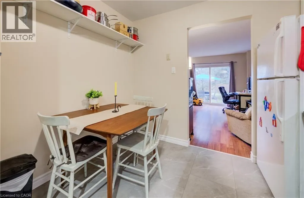 Welcome to Unit 57â135 Chalmers Street S, a well-maintained and affordable 2-storey townhouse in a convenient Cambridge location. Offering over 1,100 sq. ft. of above-grade living space, this 2-bedroom, 1-bath home is perfect for first-time buyers, downsizers, or investors. The updated kitchen (2020) features refaced cabinetry, new hardware, sink and faucet, along with brand new flooring (2026). Sliding glass doors in the living room lead to a private patio that backs onto a greenspace â which allows for an open backyard feeling. Upstairs, youâll find two spacious bedrooms with updated vinyl flooring and a beautifully refreshed 4-piece bathroom professionally completed by Bath Fitters (2023). The partially finished basement provides a versatile living space for a rec room, office, or home gym, plus ample storage. Recent exterior updates include new siding, windows, front door, and fencing. Major mechanicals are taken care of with a new furnace (2025) and A/C (2022). Enjoy low condo fees of $327/month, which include water, roof, common area maintenance, and property management fee adding excellent value and peace of mind, plus parking for two vehicles including a covered carport. Ideally located close to parks, schools, transit and all East Galt amenities, this move-in ready home is a fantastic opportunity in todayâs market. (id:27476)