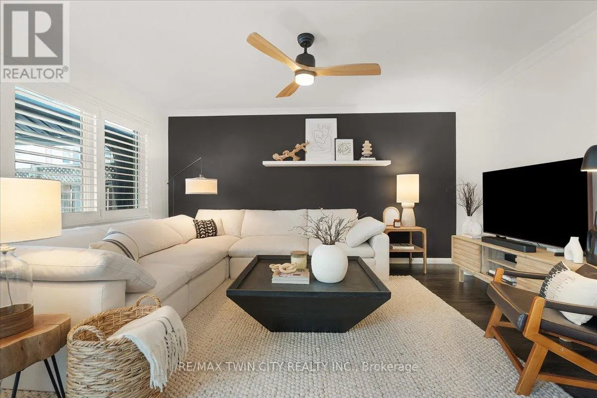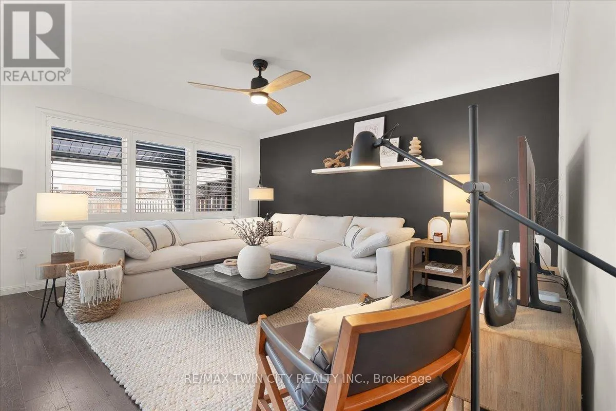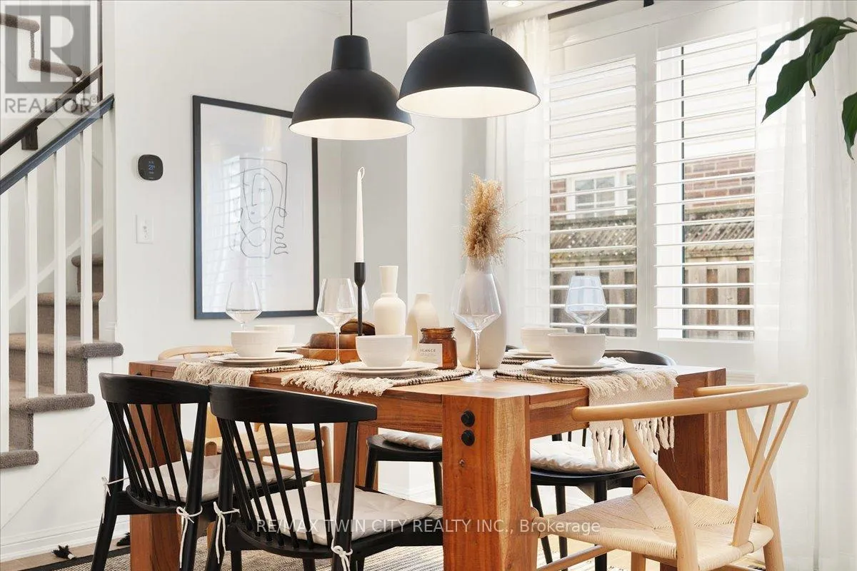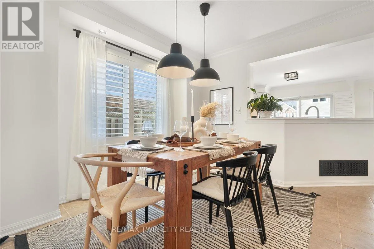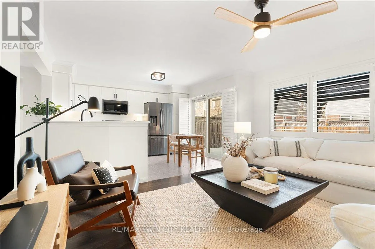 Cross Streets: Hwy 25/Guelph Ave. ** Directions: East. Welcome to this beautifully maintained 3-bedroom, 2.5-bath end-unit townhouse located in the heart of Cambridge. Offering exceptional space, comfort, and style, this move-in-ready home showcases numerous upgrades and refined finishes throughout. The bright open-concept main floor is ideal for both everyday living and entertaining, featuring upgraded laminate flooring throughout all levels, spacious living and dining areas enhanced with elegant crown moulding, and timeless California shutters on mainfloor. The upgraded kitchen is both stylish and functional, complete with quality countertops, ample cabinetry, a classic subway-tiled backsplash, and upgraded black stainless steel appliances. Upstairs, you'll find three generously sized bedrooms, including a spacious primary retreat with a private en-suite bath and walk-in closet. The fully finished basement provides valuable additional living space, perfect for a recreation room, home office, gym, or media area, all finished with upgraded laminate flooring for a seamless, modern look. Step outside to your private backyard oasis featuring a beautiful deck and gazebo, ideal for summer gatherings or relaxing evenings outdoors. Additional highlights include a single-car garage with private driveway parking. Conveniently located close to schools, parks, shopping, Highway 401 and major commuter routes, this exceptional home truly checks all the boxes. (id:27476)