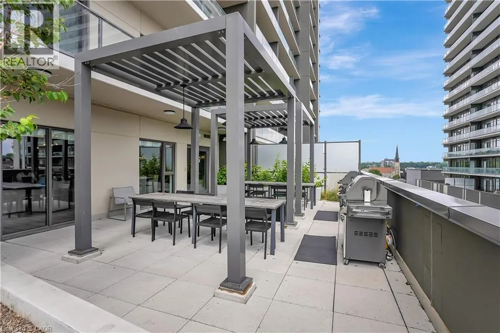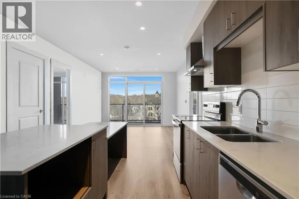 Grand St S to Glebe St Welcome to 710 - 15 Glebe St, located in the highly desirable Gaslight District of Cambridge. This 2-bedroom, 2-bathroom unit offers a perfect blend of comfort and style. The open-concept kitchen and living room create a spacious and inviting atmosphere, enhanced by large windows that flood the space with natural light. The kitchen features stainless steel appliances, ample counter space, and an island with seating - perfect for meal prep or casual dining. Both bedrooms are generously sized, each offering plenty of closet space for your convenience. As a resident, you'll enjoy access to fantastic building amenities, including an exercise room, games room, study/library, and a large outdoor terrace. The terrace boasts pergolas, fire pits, and BBQ areas, providing the ideal spot to relax and entertain while overlooking the vibrant Gaslight Square. This unit offers everything you need for a contemporary and convenient lifestyle in one of Cambridge's most sought-after neighborhoods! (id:27476)