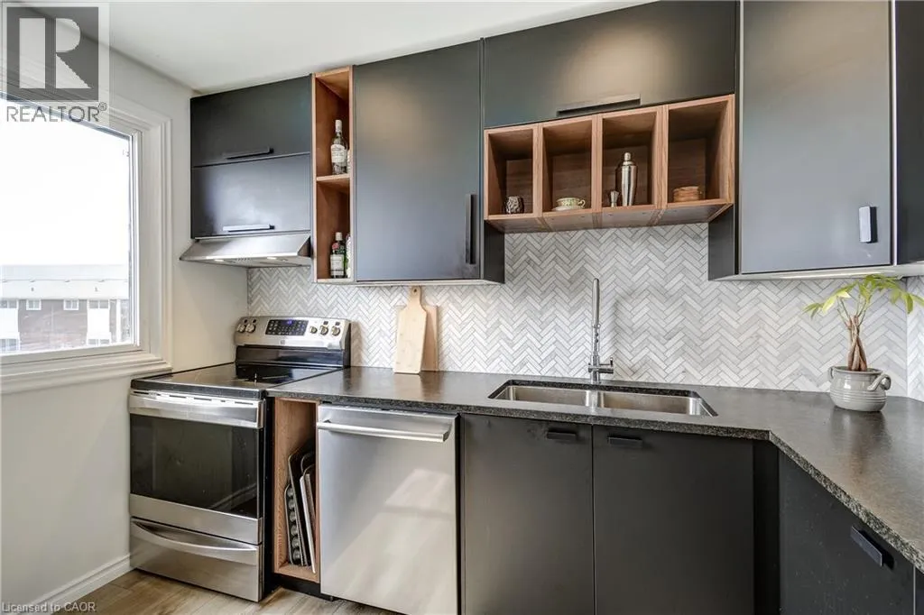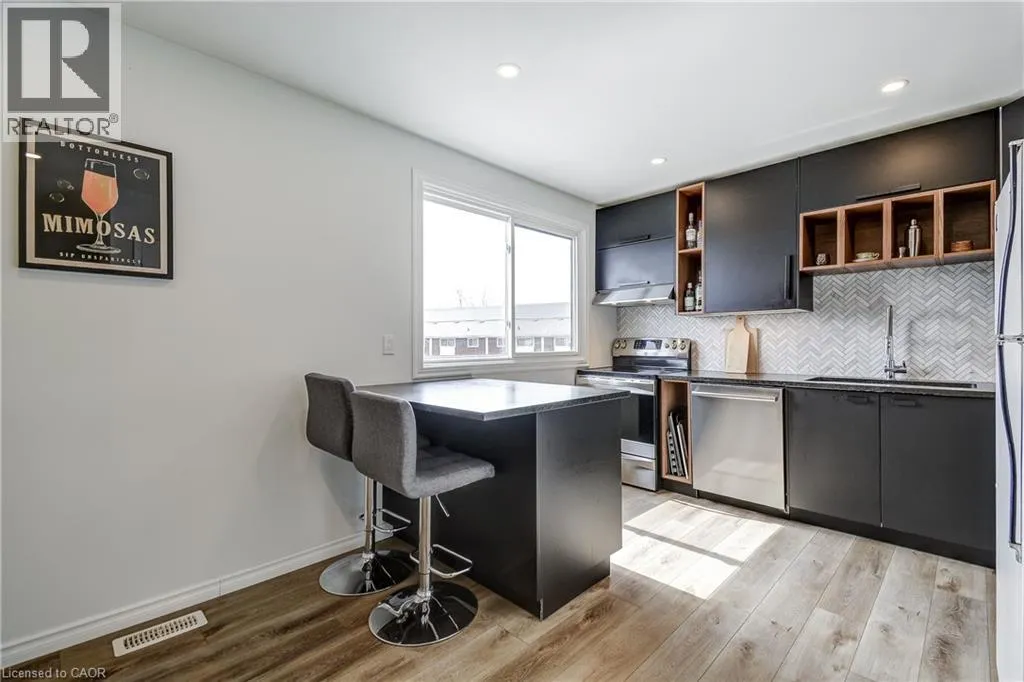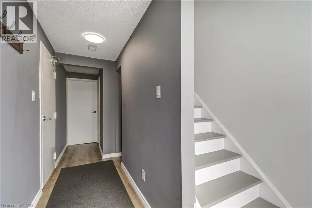 Champlain Blvd. to Chalmers St. S. Open House this Sunday 2- 4 pm. Completely refinished top to bottom, this chic, modern 3-bedroom traditional townhouse with attached garage offers exceptional value for buyers seeking cost-effective living without compromise. Backing onto woods and a quiet church parking lot, you will enjoy rare privacy and a peaceful setting with no direct rear neighbours. Inside, the bright open-concept layout is clean, stylish, and move-in ready, highlighted by fresh finishes throughout and an abundance of natural light. The upper level features three good-sized bedrooms, including an oversized primary with a huge sun-filled window that floods the space with natural light. Located in a family-friendly East Galt neighbourhood close to schools, parks, walking trails, shopping, and transit, this home delivers the perfect blend of convenience and affordability. With low condo fees, low taxes, attached garage, and private outdoor setting, this is an ideal opportunity for first-time buyers, young families, or smart downsizers looking to enter the market with confidence. Affordable. Updated. Private. Move-in ready. This is smart, low-cost living in one of Cambridgeâs most convenient communities. (id:27476)