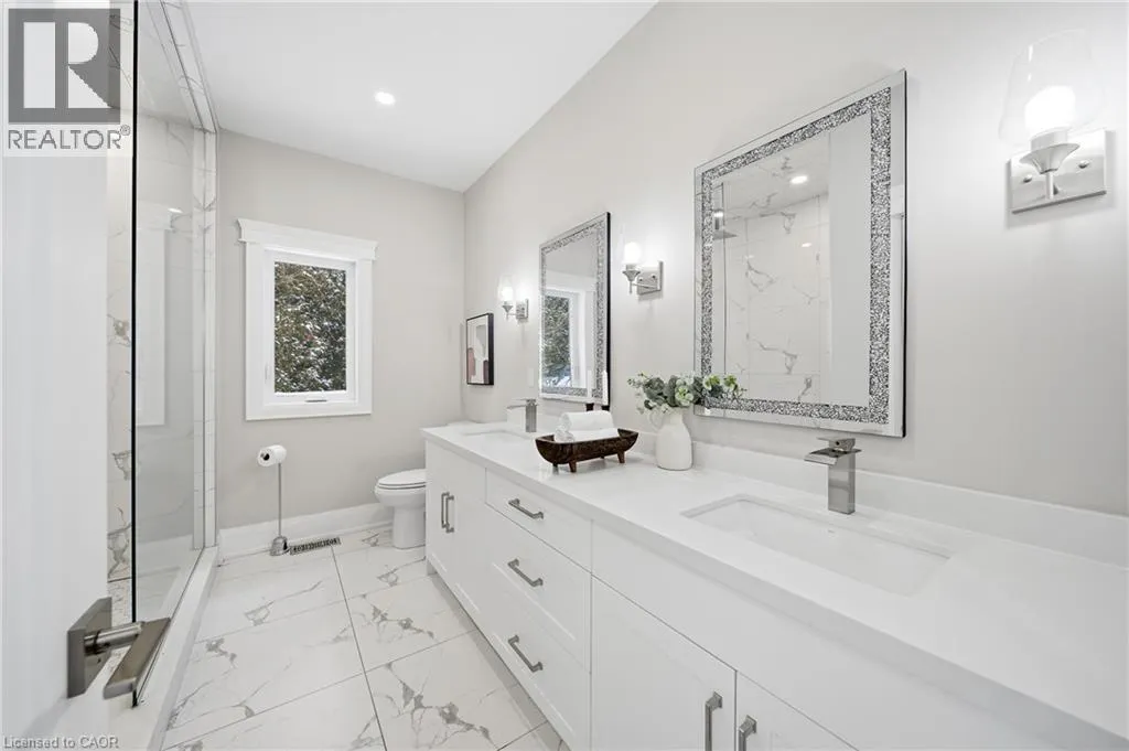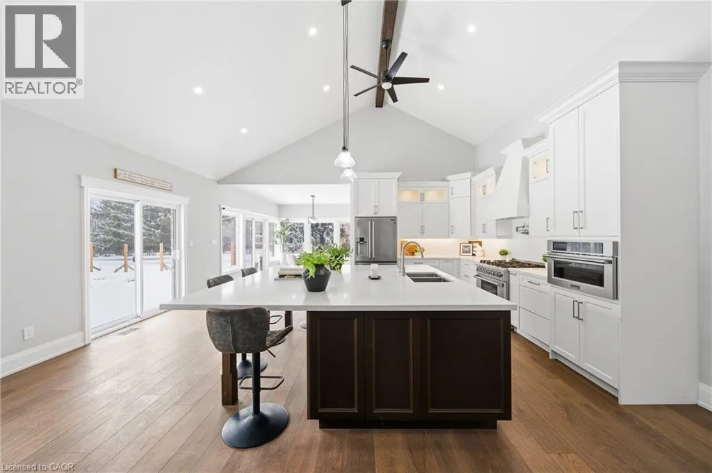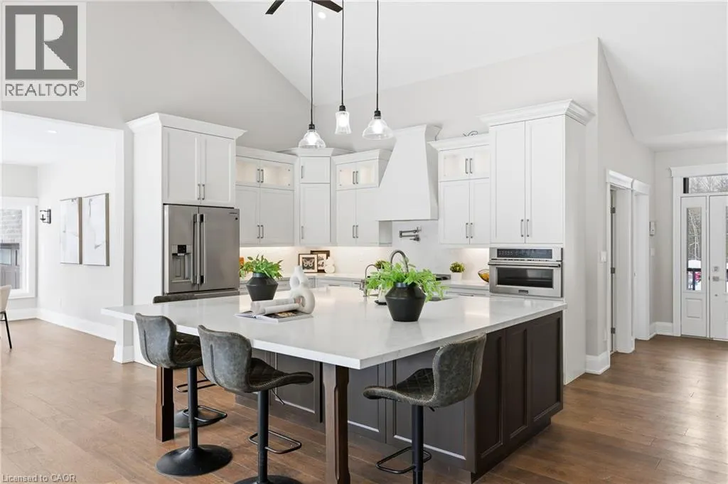 Main Street to Robinson Road Two Homes. Endless Possibilities. Set on a sprawling one-acre lot, 75 Robinson Road delivers a rare 2-for-1 opportunity-a stunning newly built stone bungalow plus a second residence with an attached shop (28' x 26'). Whether you're planning for multi-generational living, in-laws, a home-based business, or a serious workshop setup, this property is built to flex with your lifestyle. The main home is a showstopper. A custom stone bungalow featuring 3 bedrooms and 2.5 bathrooms showcasing exceptional craftsmanship throughout. Vaulted ceilings soar above the open-concept living, dining, and kitchen spaces, while oversized windows flood the home with natural light. Engineered hardwood flooring and striking wood beam details add warmth and architectural edge. The kitchen is pure entertainer energy-anchored by a spacious eat-in island, accented with under-cabinet lighting, ample custom cabinetry, and seamless access to the backyard through elegant glass doors. Tucked into its own private wing, the luxurious primary suite is a true retreat, complete with backyard access, a walk-in closet, and a beautifully finished ensuite. Two additional generously sized bedrooms, a full bath, powder room, and a large laundry room with direct garage access complete the main level. Downstairs, the unfinished basement spans an impressive 2,000sqft, offering a blank canvas to dramatically expand your living space-think home theatre, gym, additional bedrooms, or a full secondary suite. The spacious oversized double car garage (29' x 27') offers convenient drive-through access, and plenty of additional storage. Outside, you get the best of both worlds: peaceful country living with wide open space, while remaining minutes from local amenities, conveniences, and attractions. (id:27476)