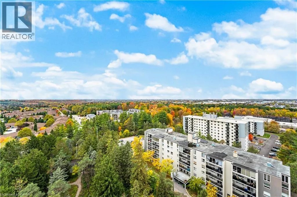 Isherwood Avenue/Hespeler Road Welcome to Unit 1602 at 190 Hespeler Road â a stunning 2-bedroom, 2-bath suite in the highly sought-after Black Forest Condominiums. Offering approximately 1,440 sqft of bright, open living space, this beautiful home blends comfort, convenience, and style in one of Cambridgeâs most desirable communities. Step inside to find gleaming hardwood floors (2019) that flow seamlessly throughout the main living areas. The spacious layout features a welcoming living and dining area bathed in natural light from large European windows, designed to minimize outside noise while maximizing the incredible views from the 16th floor. The sunroom provides the perfect spot to unwind, read, or enjoy your morning coffee while taking in the skyline. The kitchen is well-equipped with stainless steel appliances, generous counter space, and ample storage â ideal for both everyday living and entertaining. A separate in-suite laundry room, large front hall closet, and additional storage locker offer exceptional practicality. Both bedrooms are generously sized, with the primary featuring its own walk-in closet and 4-pc ensuite bath for added privacy. This unit also includes one underground parking space for your convenience. Residents of the Black Forest enjoy an impressive array of amenities: indoor pool, tennis/pickleball court, exercise room, his and hers saunas, library, workshop, BBQ patio, billiards room, hospitality suite, and guest accommodations for visitors. Perfect for those looking to downsize without compromise, this unit offers the space, storage, and great amenitiesâ all within a vibrant, well-managed community. Ideally located just steps from the Cambridge Centre Mall and YMCA, and only minutes to restaurants, shopping, and Highway 401, this condo offers the perfect blend of urban accessibility and peaceful living. Unit 1602 is more than a home, itâs a lifestyle defined by comfort, community, and convenience in the heart of Cambridge. NO PET BUILDING. (id:27476)